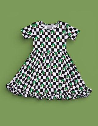 MIDNIGHT CHECKERS DREAM RUFFLE DRESS