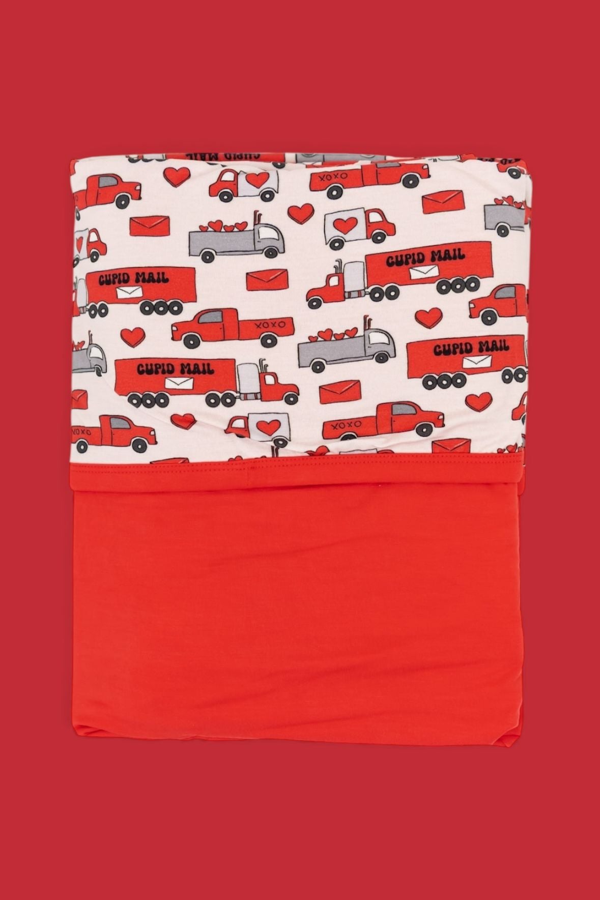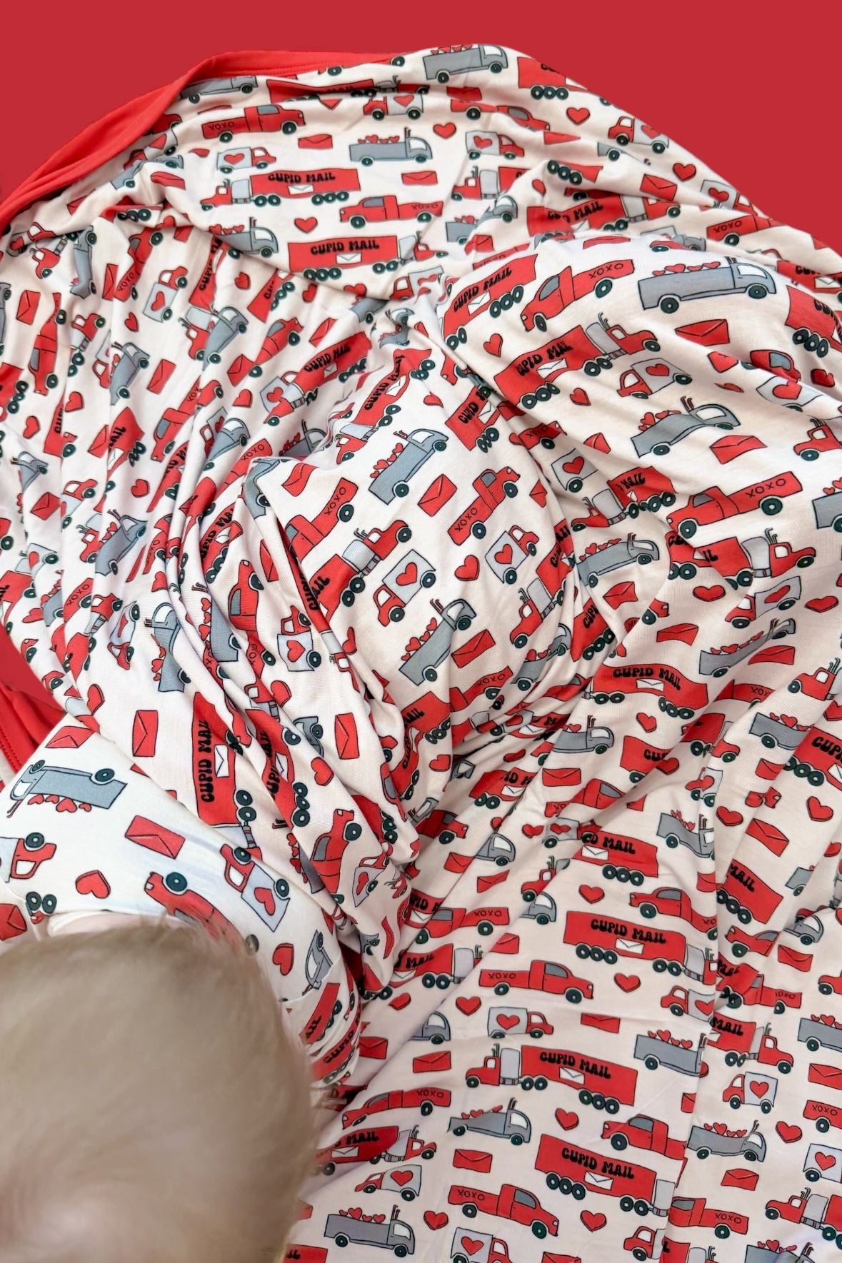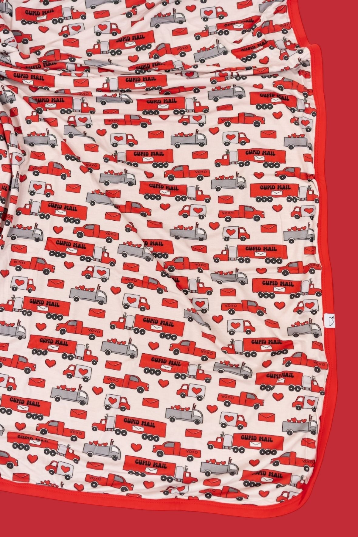 Wrap your little one in love on the go! The Haulin’ Hearts Dream Blanket is crafted from our signature buttery-soft bamboo fabric and features a cheerful print of trucks, hearts, and letters delivering “Cupid Mail.” Oversized, breathable, and ultra-soft, it’s perfect for stroller rides, nap time, or cuddles anytime.