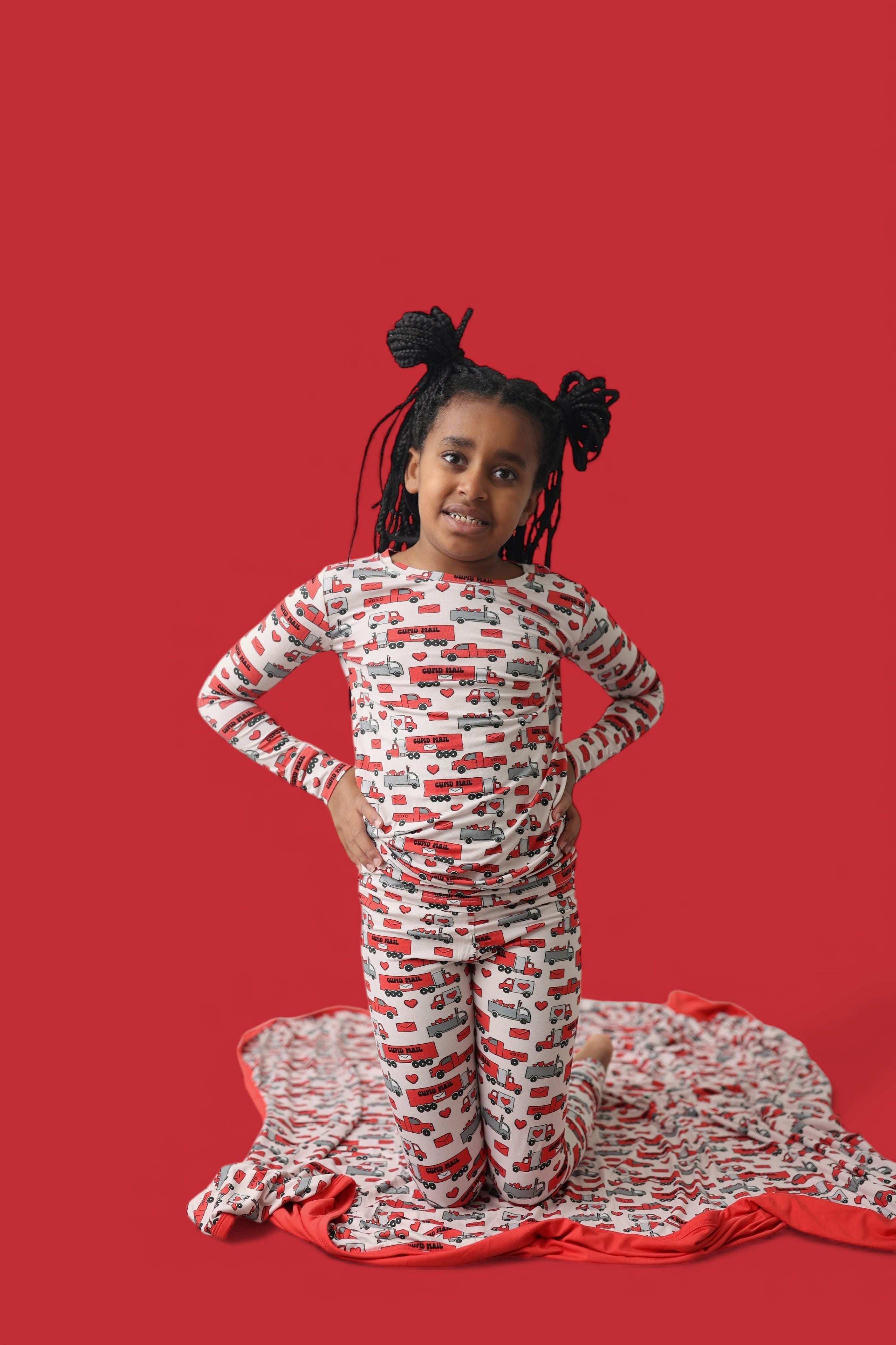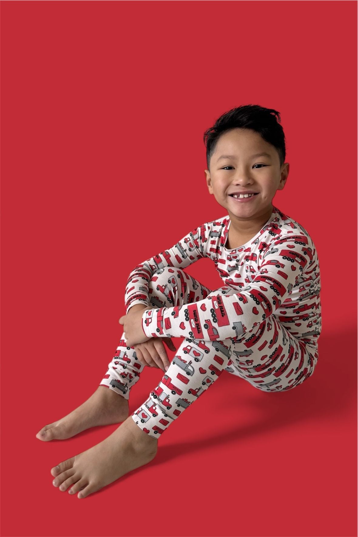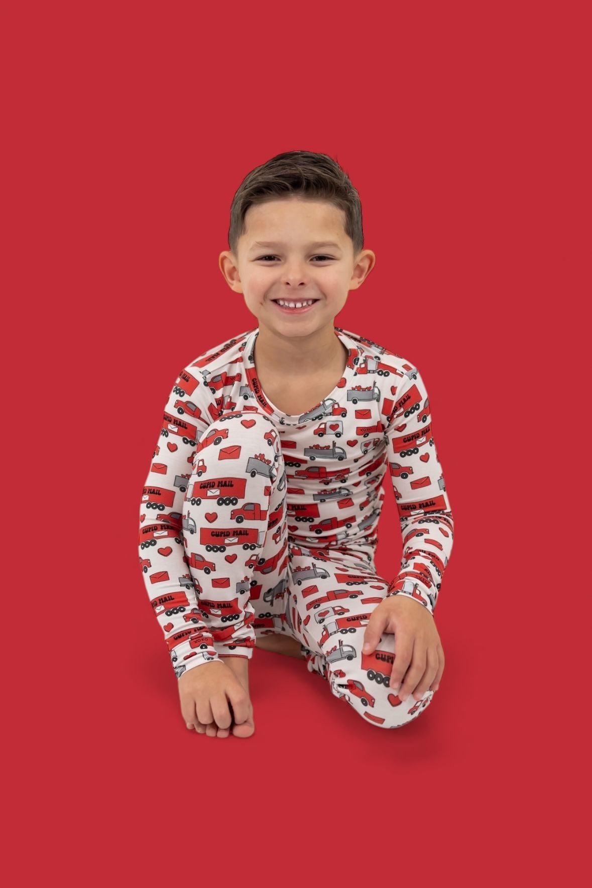 Love on the go, now in a two-piece! The Haulin’ Hearts Dream Set features a long sleeve top and matching pants with a cheerful print of red + gray trucks, letters, and hearts delivering “Cupid Mail.” Crafted from our signature buttery-soft bamboo fabric, this set is breathable, stretchy, and perfect for snuggles, playtime, or drifting into heart-filled dreams.