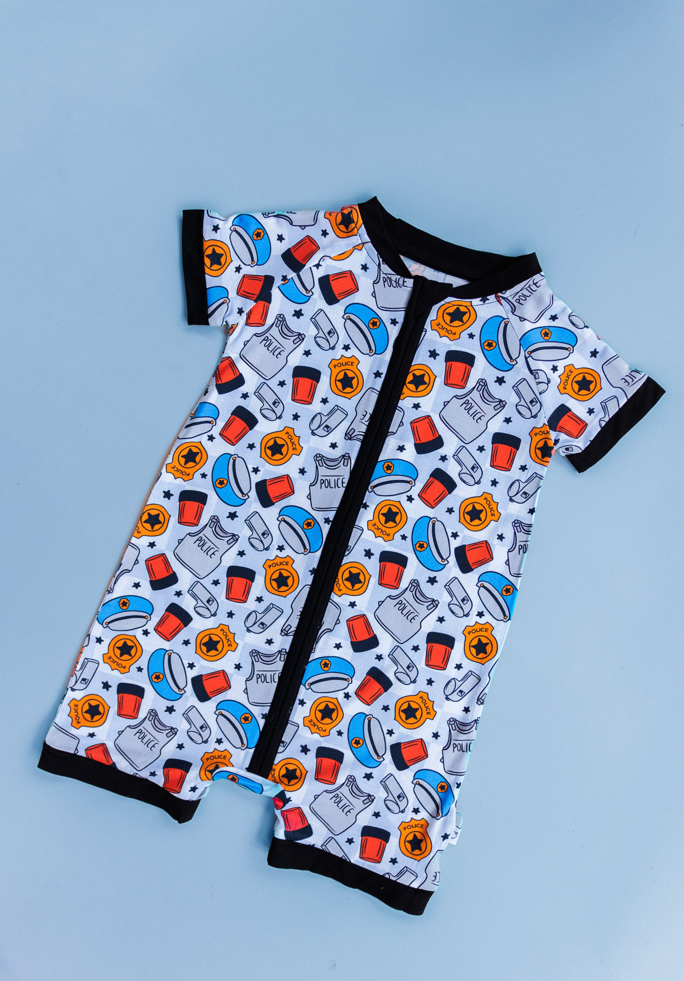 Prepare your little officer for a night on "patrol" with our On DutyZzz Dream Shortie! Featuring a playful police theme, this short-style romper is crafted from silky-soft bamboo viscose, offering the ultimate in comfort and breathability. Perfect for bedtime or a day of play, this romper is designed for little ones who are always "on duty" when it comes to fun and adventure.