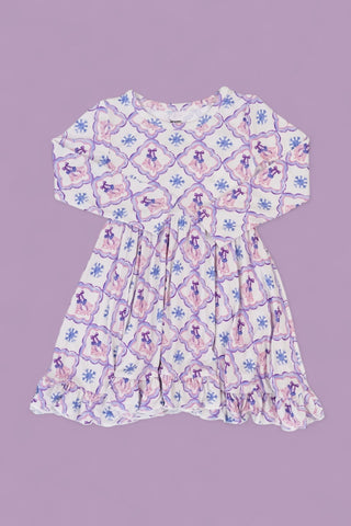 ICY WONDERLAND LONG SLEEVE DREAM RUFFLE DRESS