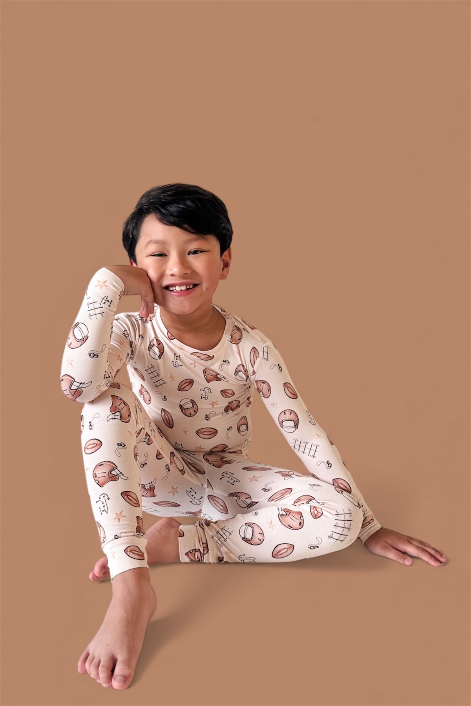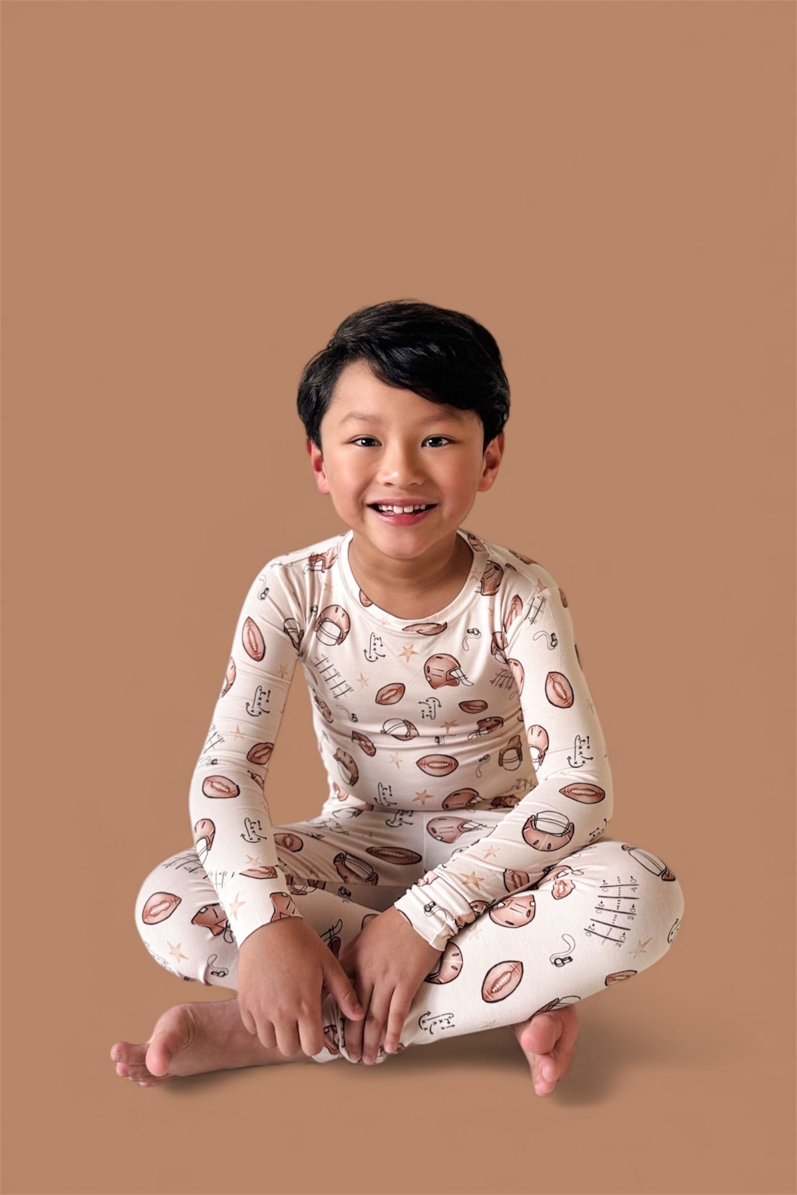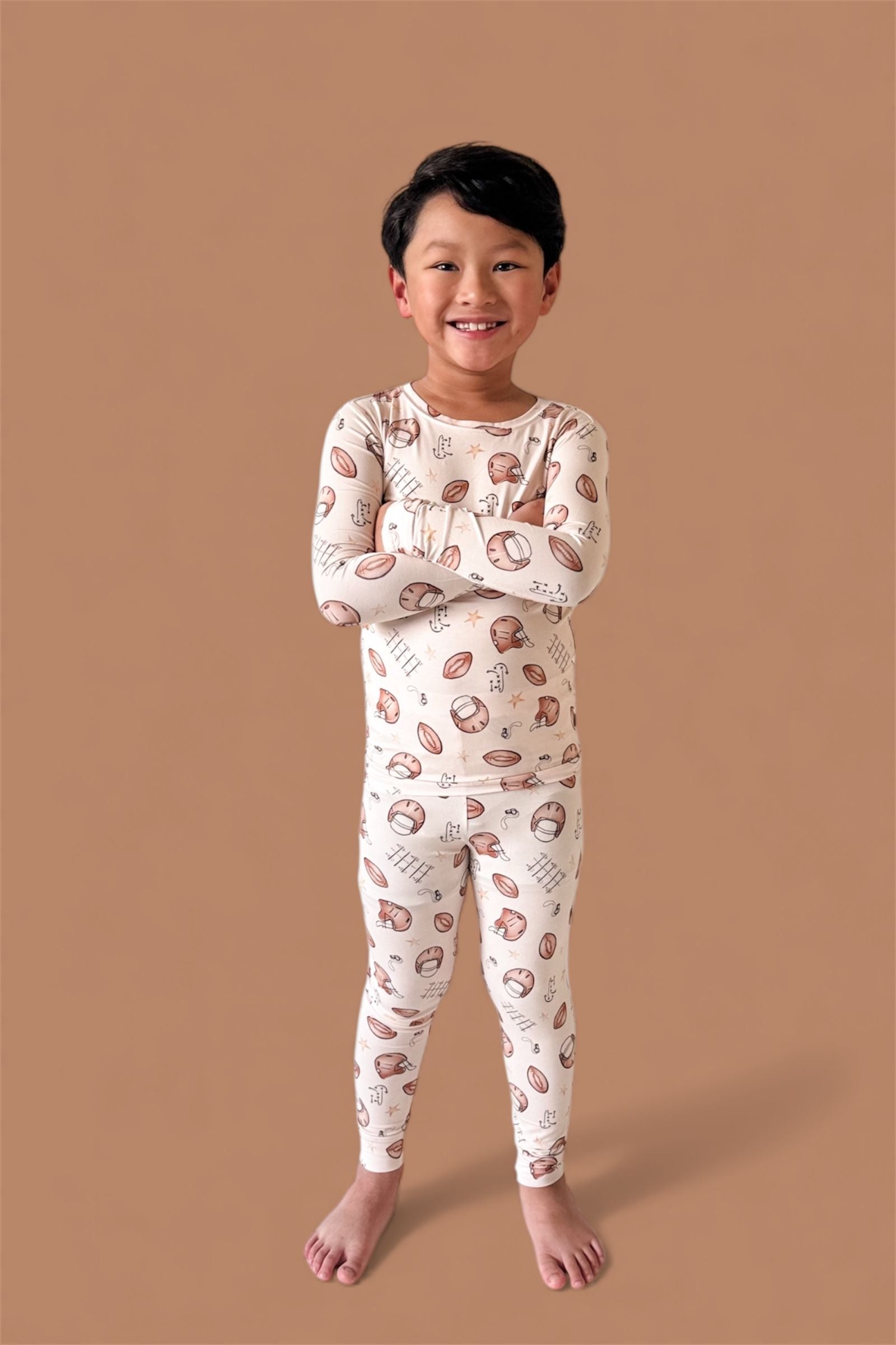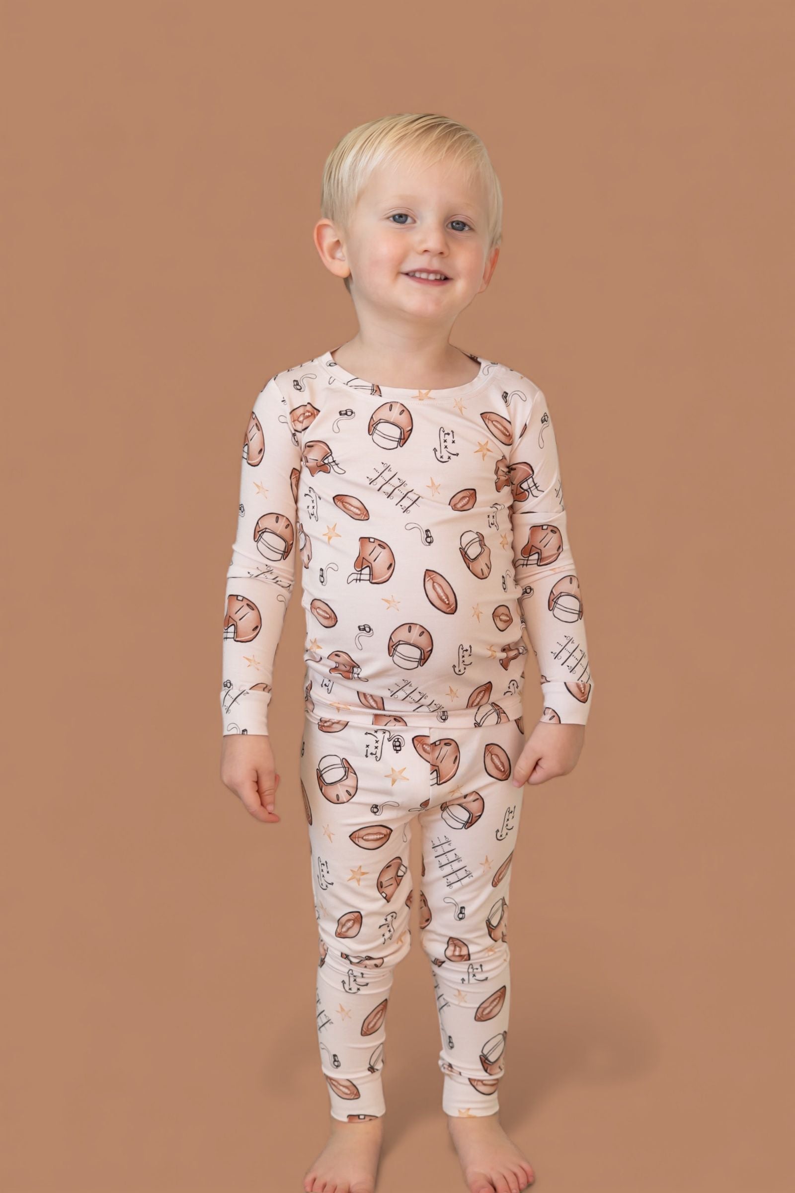 Big style for your little MVP! The Tiny Touchdown Dream Set is made from our signature buttery-soft bamboo fabric and features an all-over football helmet + star print for the ultimate game day look. With a long sleeve top and matching pants, this set is cozy, stretchy, and perfect for lounging, playing, or cheering on your favorite team.