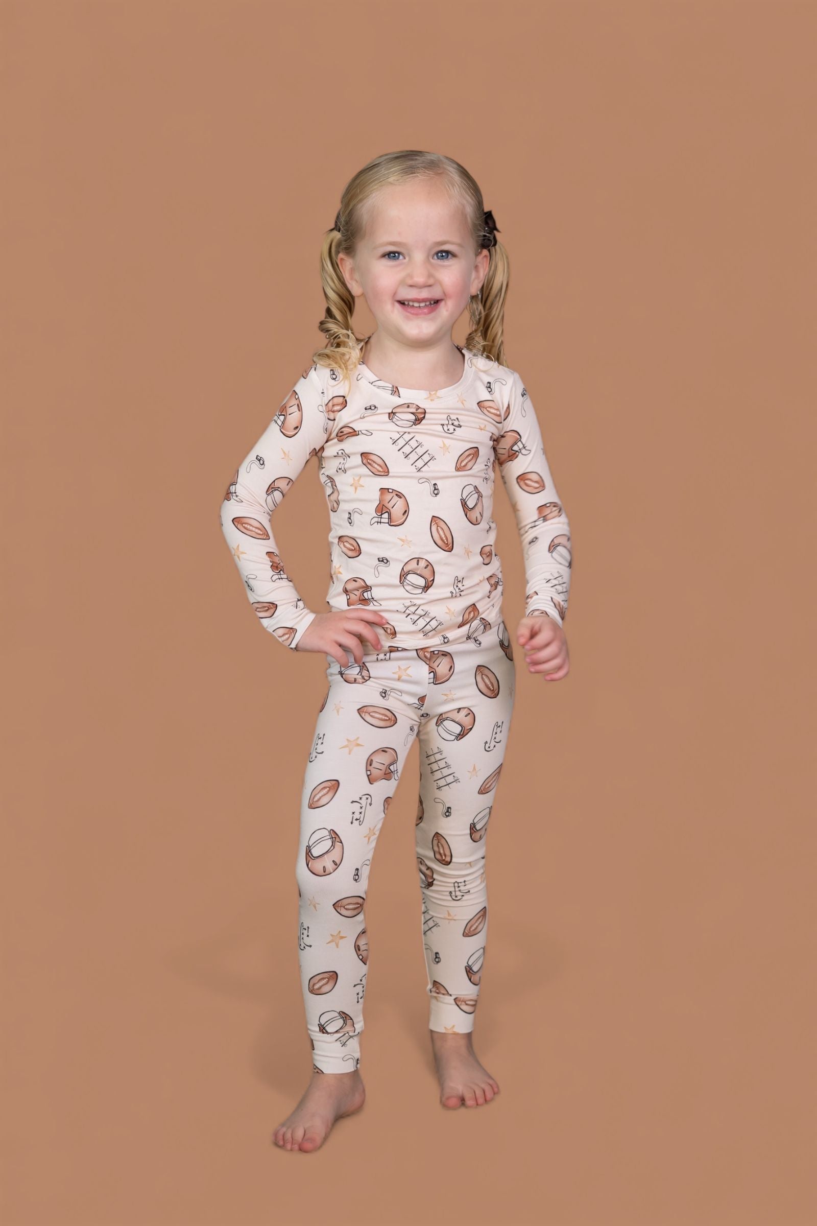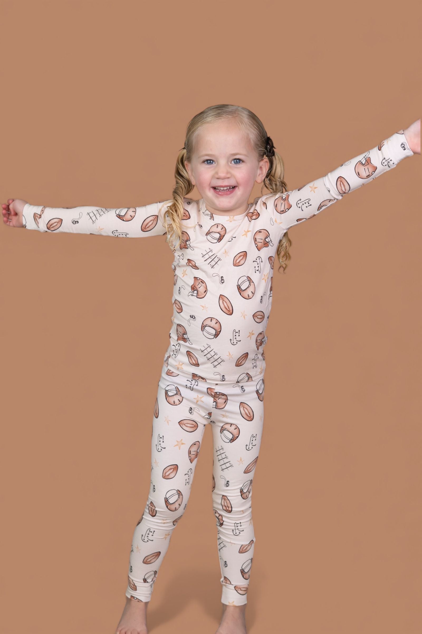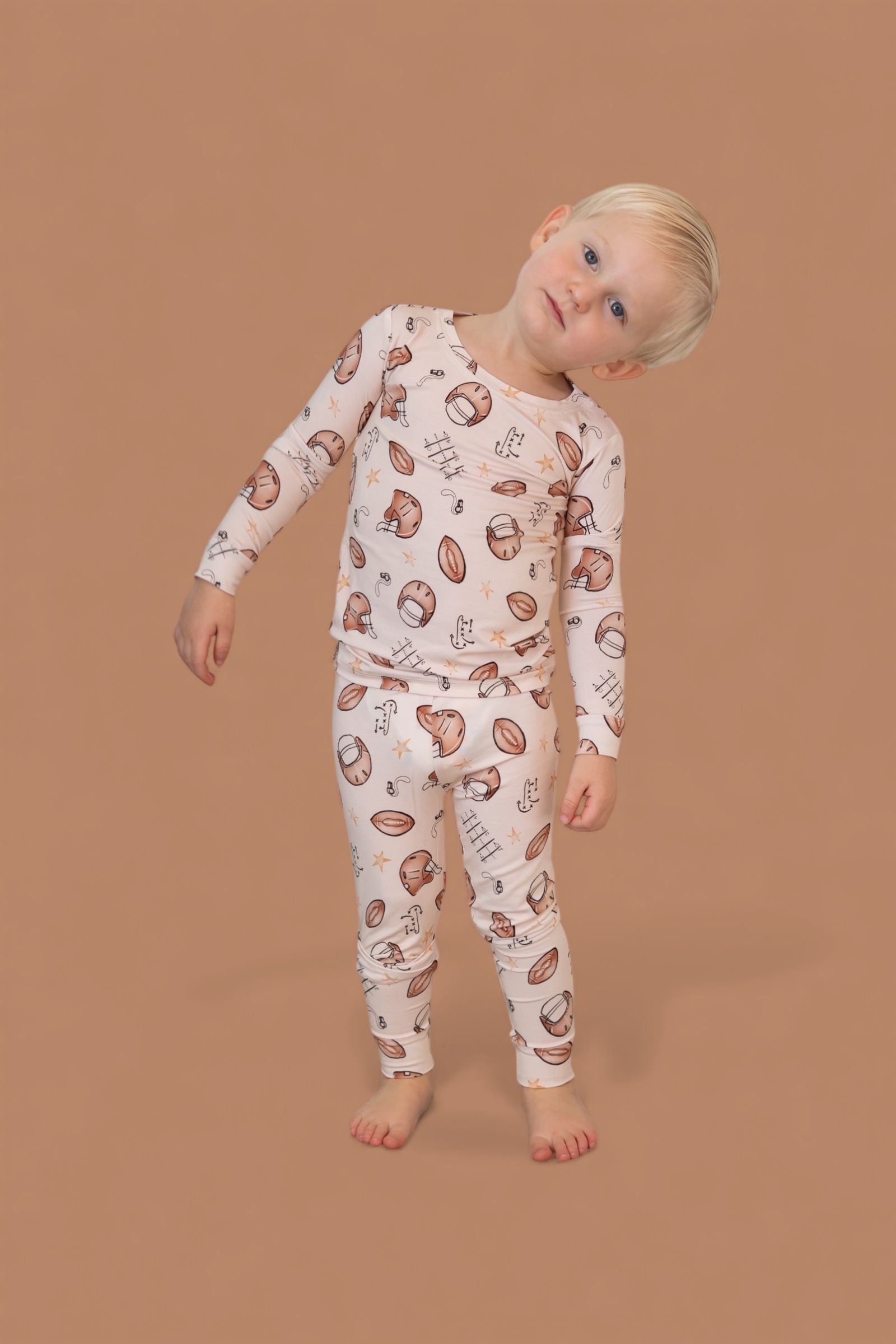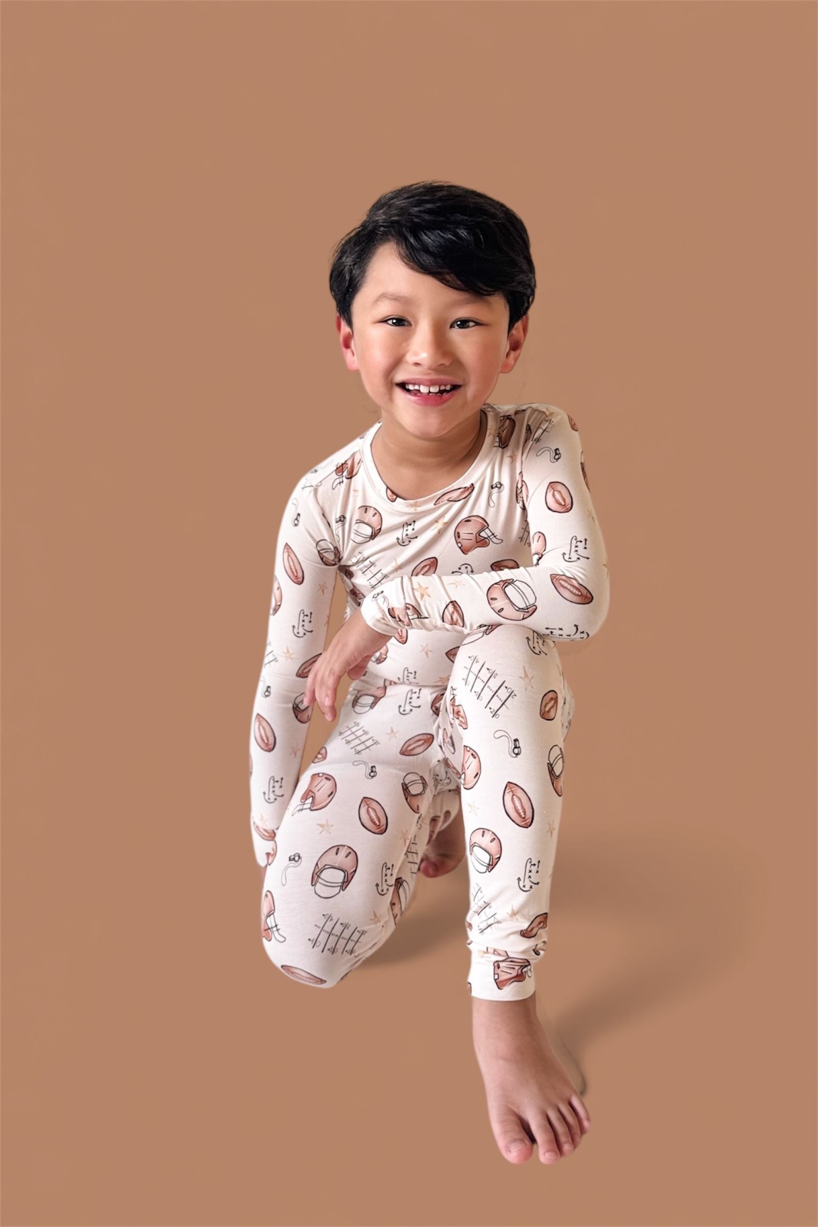 Big style for your little MVP! The Tiny Touchdown Dream Set is made from our signature buttery-soft bamboo fabric and features an all-over football helmet + star print for the ultimate game day look. With a long sleeve top and matching pants, this set is cozy, stretchy, and perfect for lounging, playing, or cheering on your favorite team.