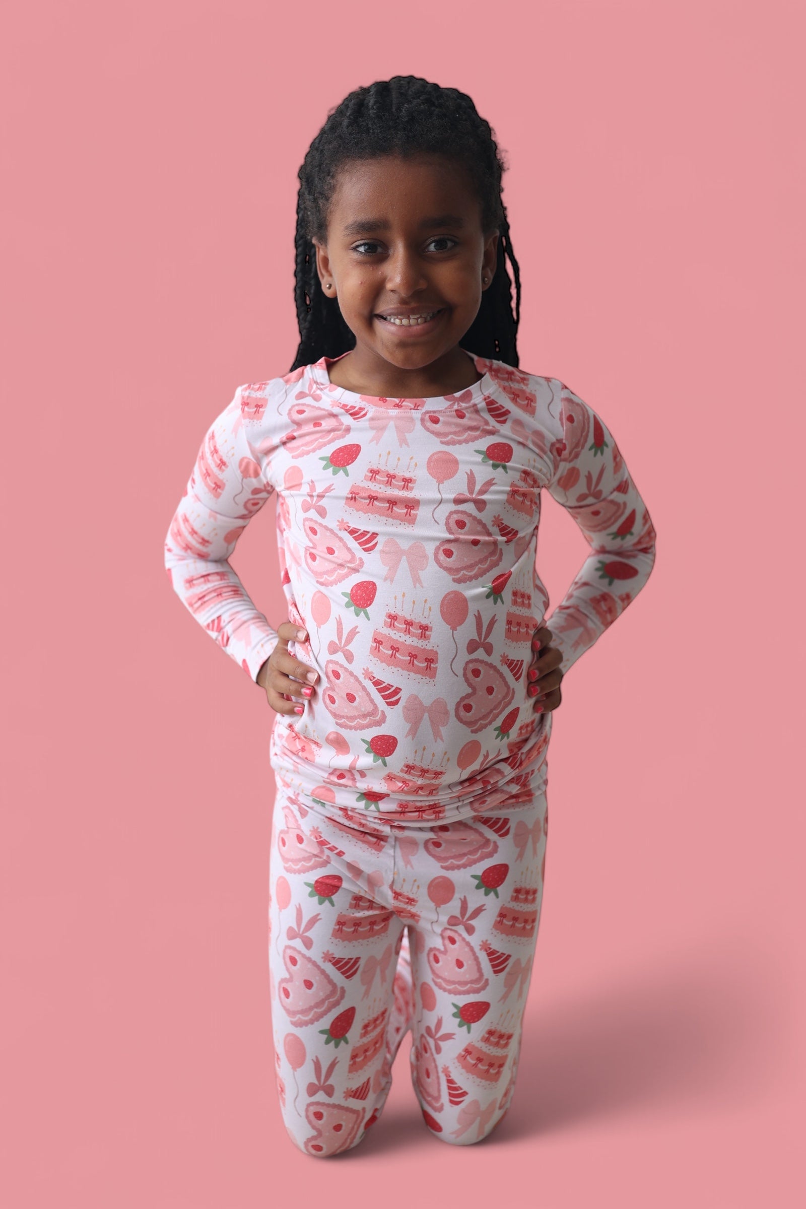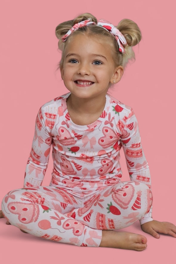Our Berry Sweet Birthday Dream Set is the perfect mix of cozy and cute for your little one’s special day—or any day that needs a sprinkle of sweetness! 🍓🎀 Adorned with heart-shaped cakes, strawberries, bows, and balloons in soft pink hues, this charming print brings a party vibe straight to bedtime. Made from super-soft, breathable fabric, this set keeps your birthday babe comfy all night long. Because every night should feel like a celebration! 🎈💖