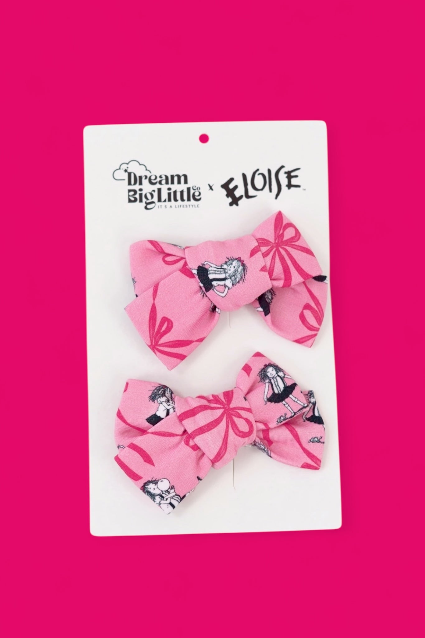 👑 Set of 2 clips with Eloise + royal pink bow details
