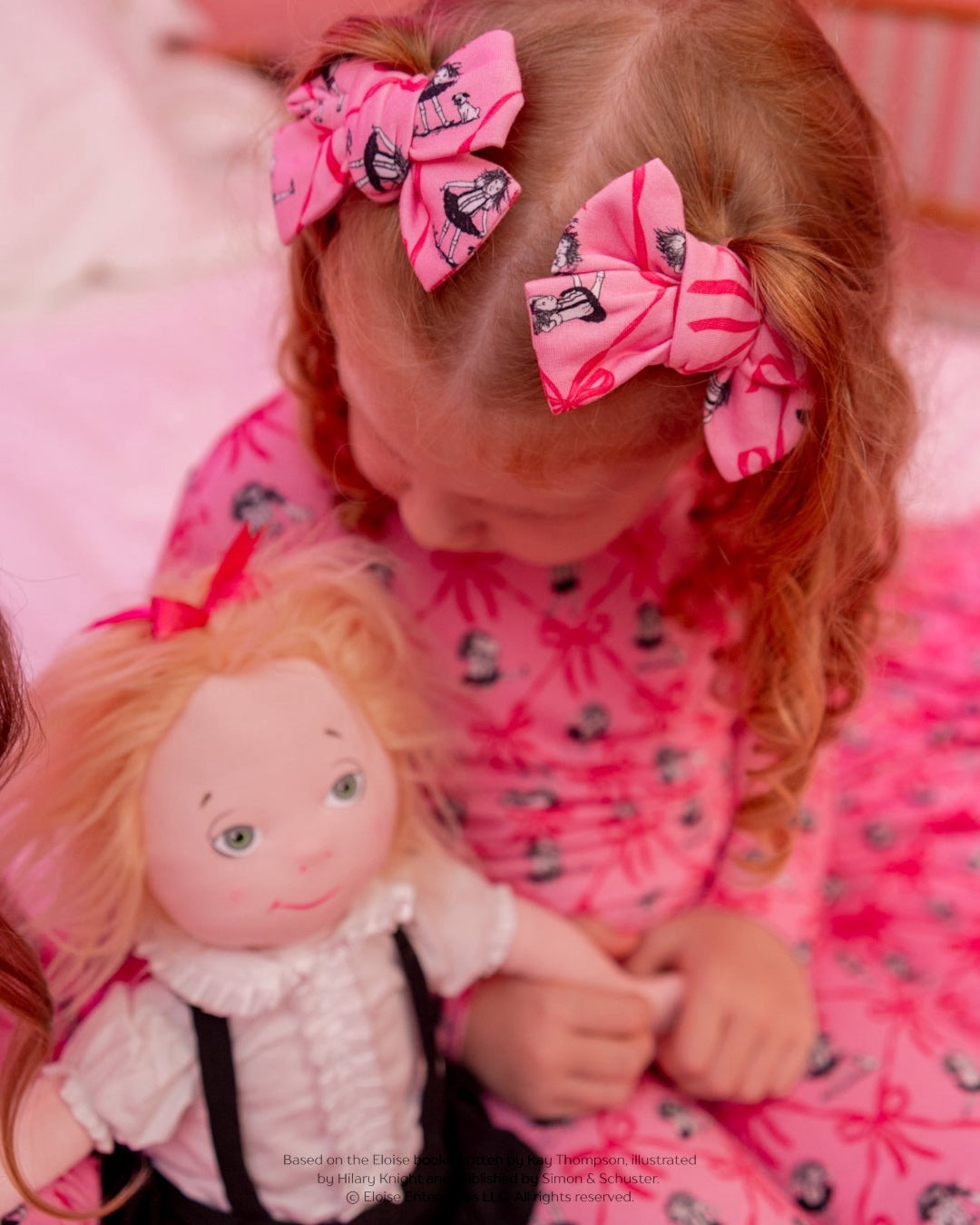 Top off her look with a touch of Eloise-approved charm! The Eloise Royal Ribbons Dream Bow Hair Clips feature our signature print with playful poses of Eloise and oversized pink bows, all wrapped up into the perfect little accessory. Whether for school days, parties, or Plaza-worthy adventures, this set of two clips adds instant style and sass.