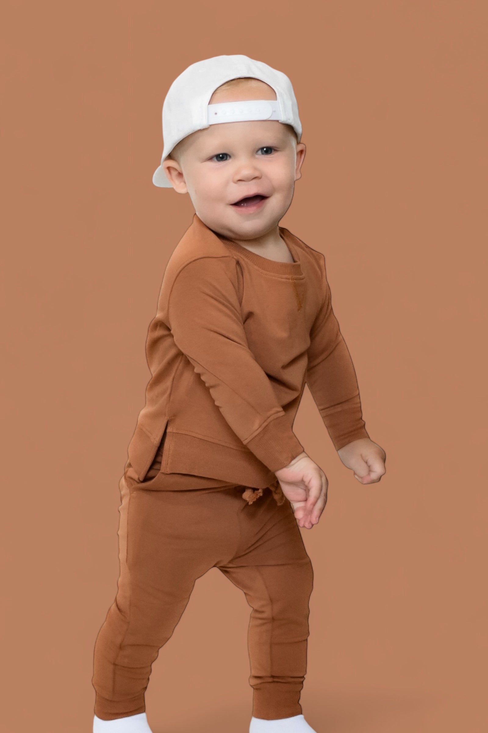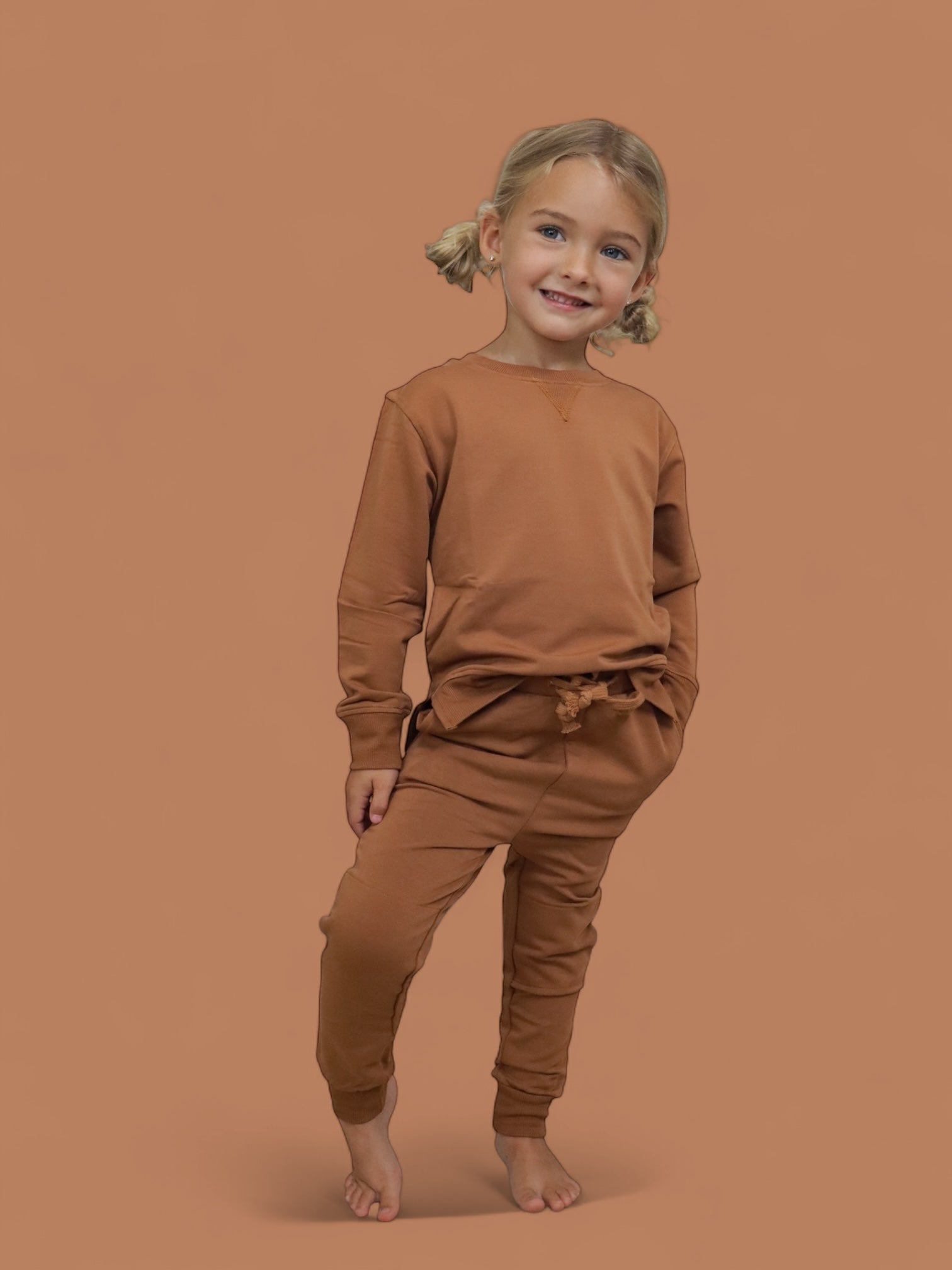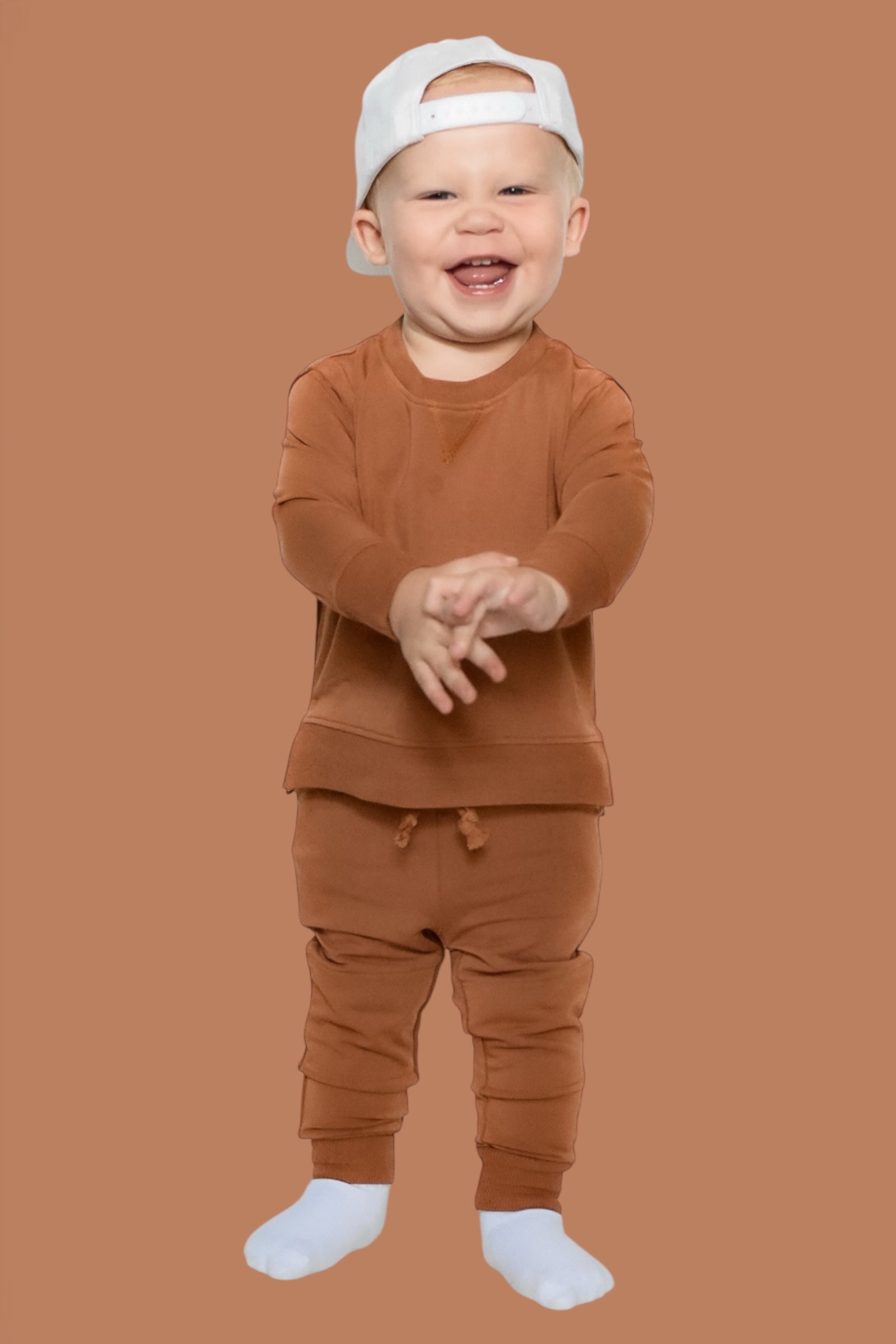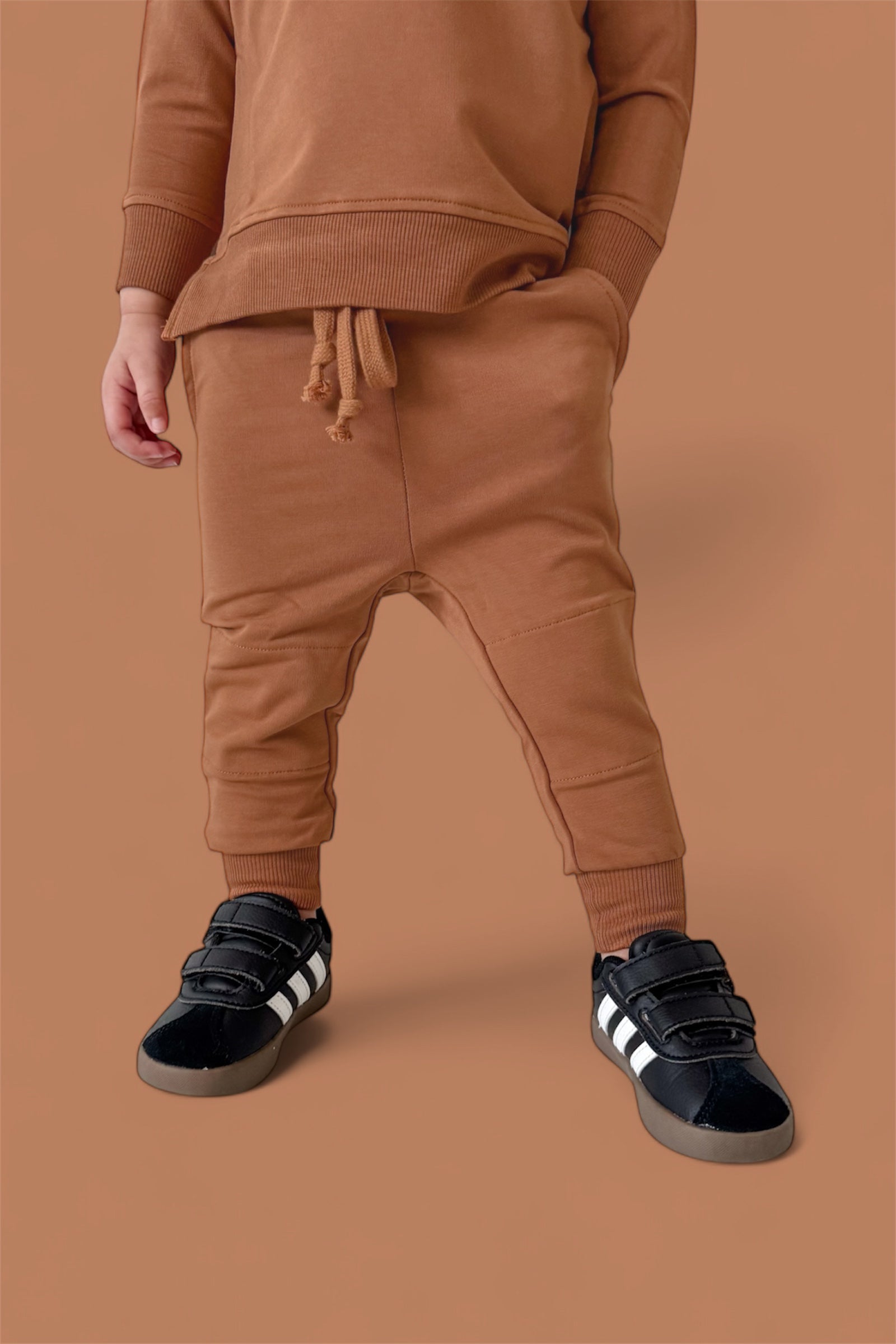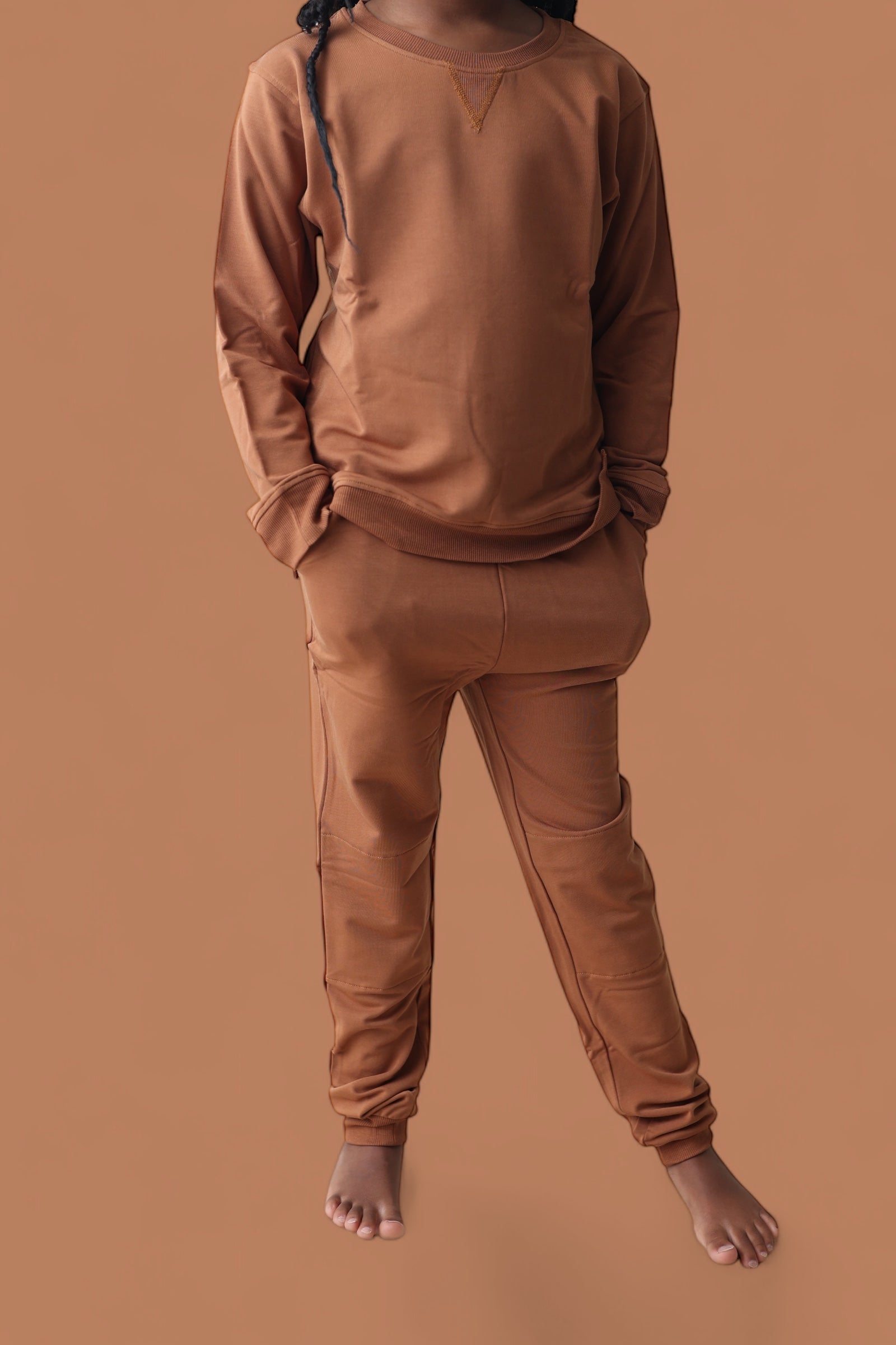 Comfy just got a whole lot cooler! The Espresso Dream Jogger for kids features a rich chocolatey hue and ultra-soft fabric that's perfect for playtime, nap time, and everything in between. With a stretchy waistband, cuffed ankles, and roomy pockets, these joggers are made for little movers and match perfectly with the whole fam for cozy days in or out.