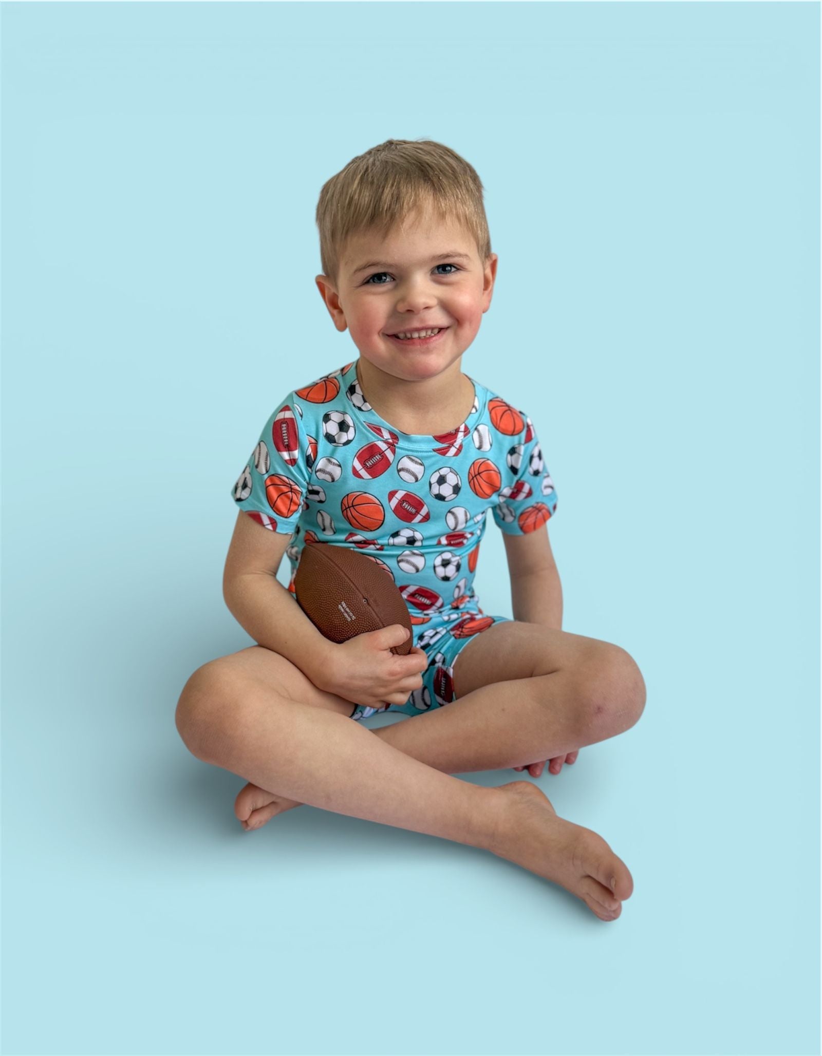 The Game On Dream Short Set is a win for little sports fans who love comfort as much as fun. Featuring a playful all-over sports ball print, this easy two-piece set is made from our signature buttery-soft bamboo fabric for a lightweight, breathable feel that keeps them cool and comfy from morning play to bedtime wind-down.
