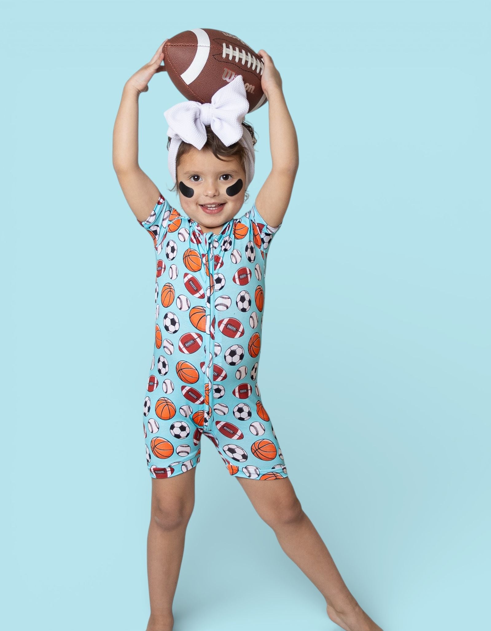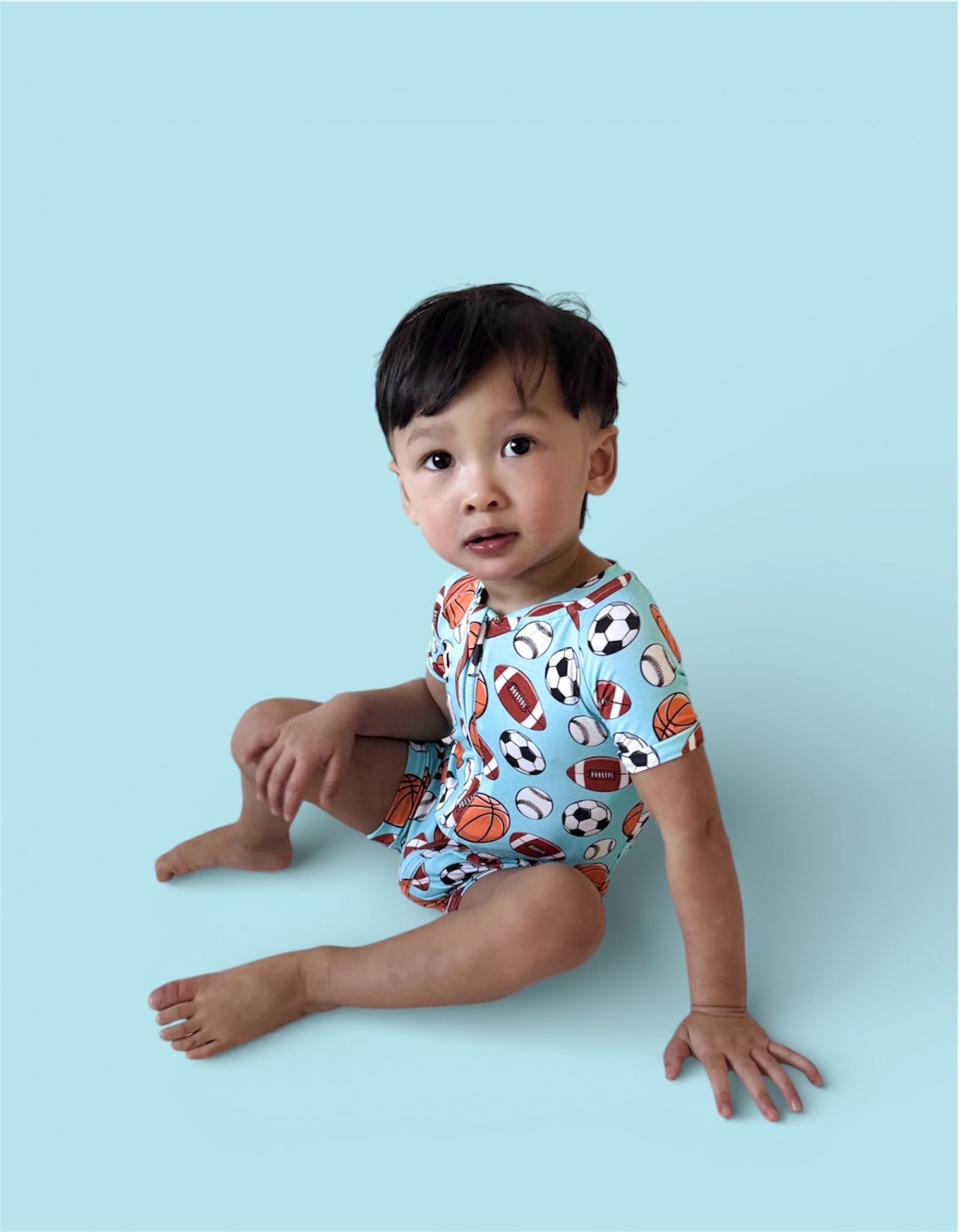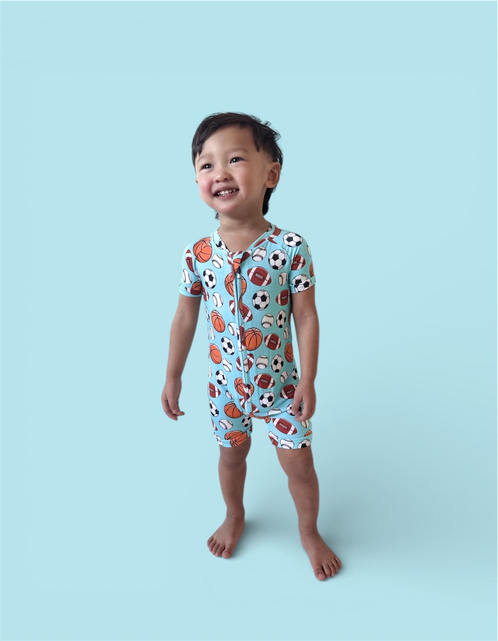 The Game On Dream Shortie is made for nonstop play and all-day comfort. Featuring a fun all-over sports ball print, this one-piece shortie is crafted from our signature buttery-soft bamboo fabric to keep little ones cool, comfy, and ready for every adventure—on and off the court.