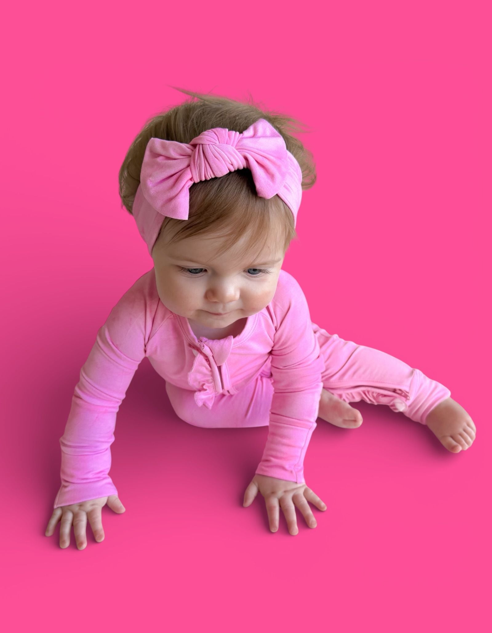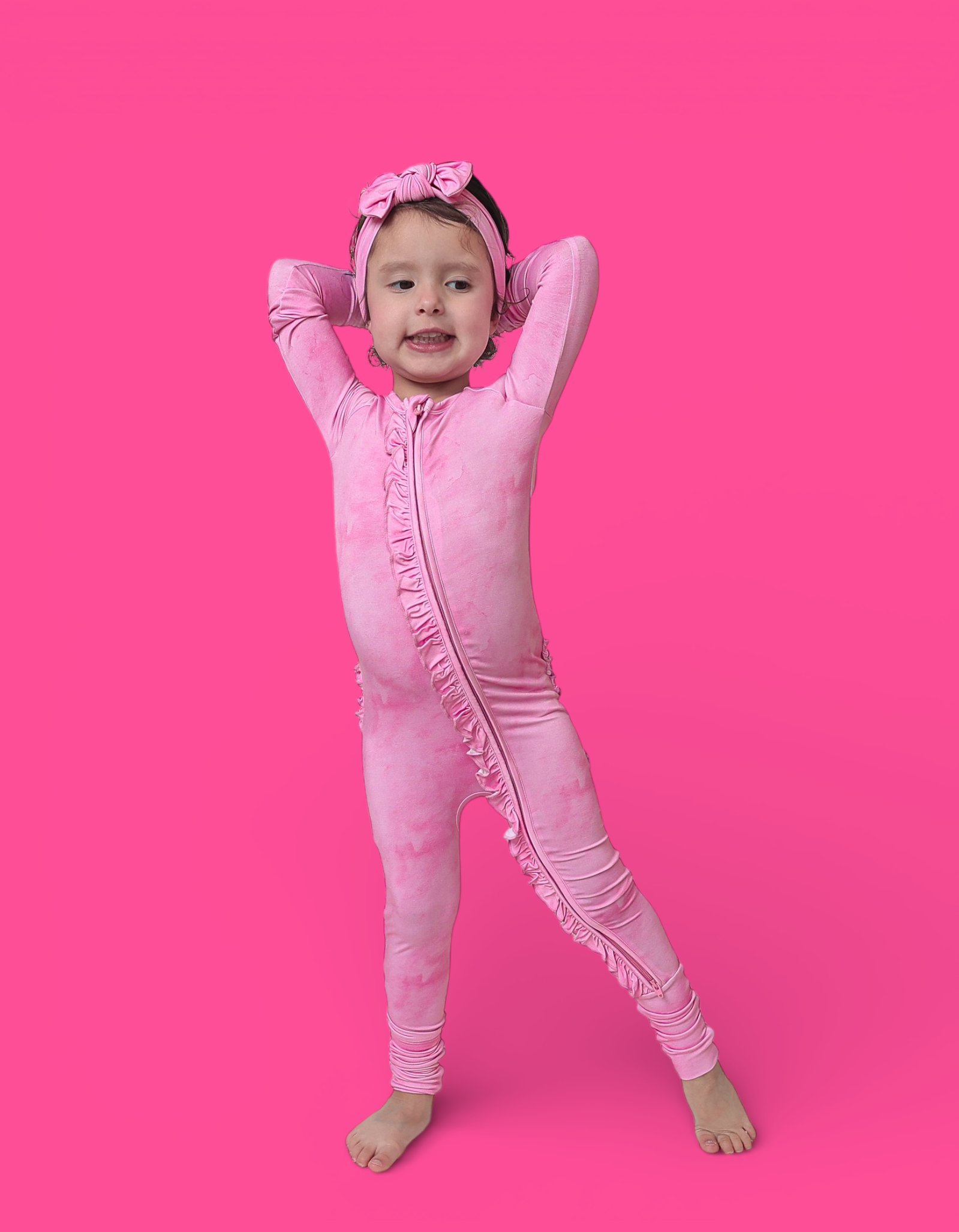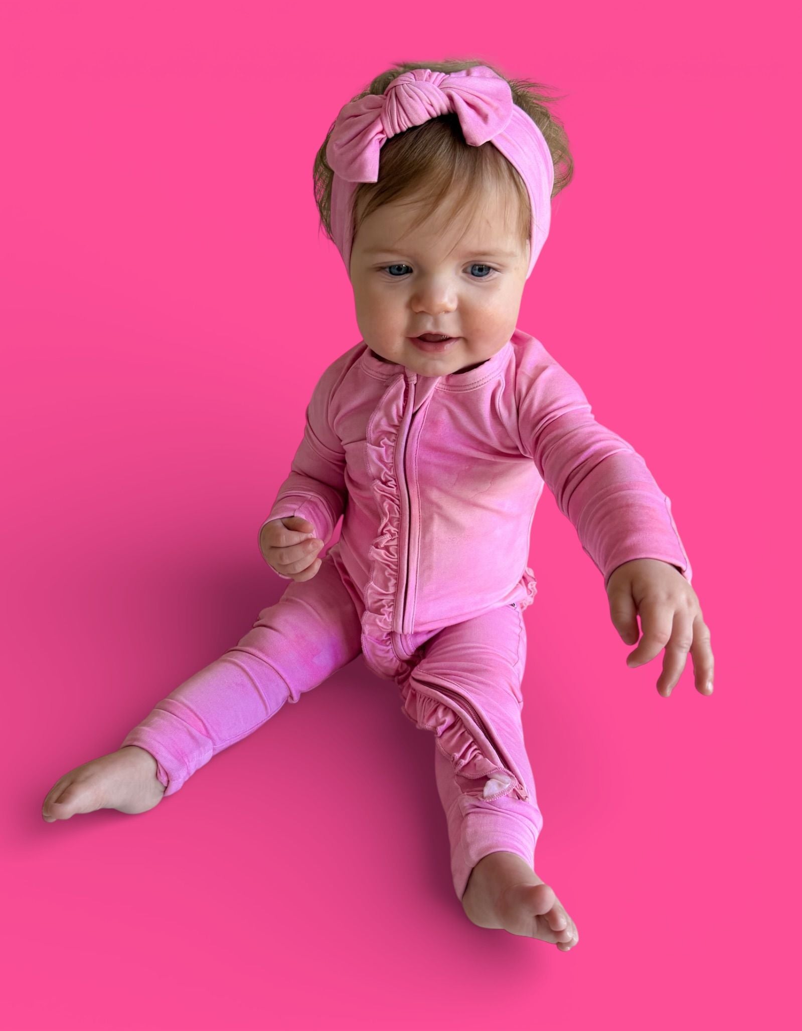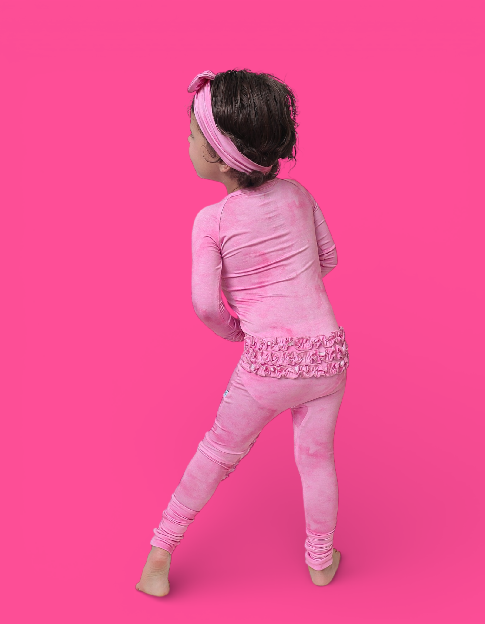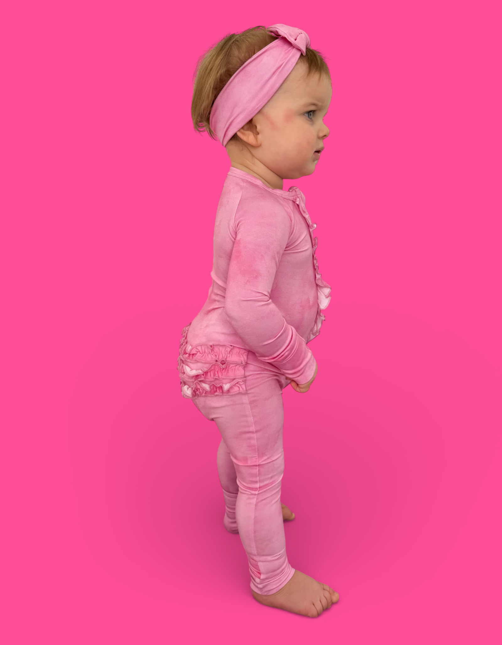 The Pink Daydream Dream Ruffle Romper is the perfect blend of cozy comfort and darling details. Featuring a soft pink watercolor-inspired hue with delicate ruffle accents, this romper is made from our signature buttery-soft bamboo fabric for a breathable, gentle feel your little one will love day and night.
