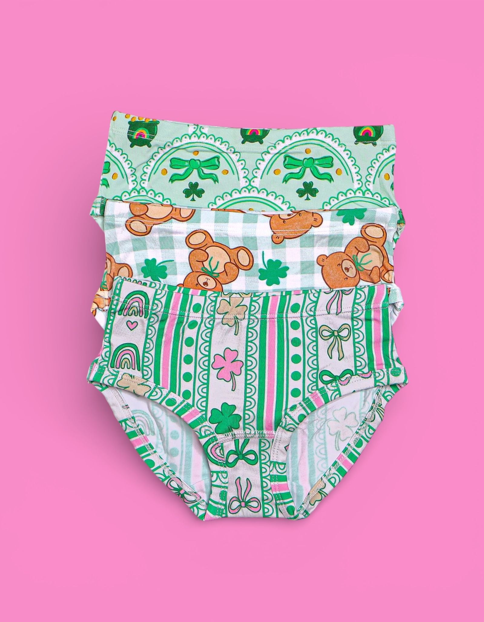 • Cute variety of rainbow, bow, teddy + shamrock prints 🌈🎀🐻☘️