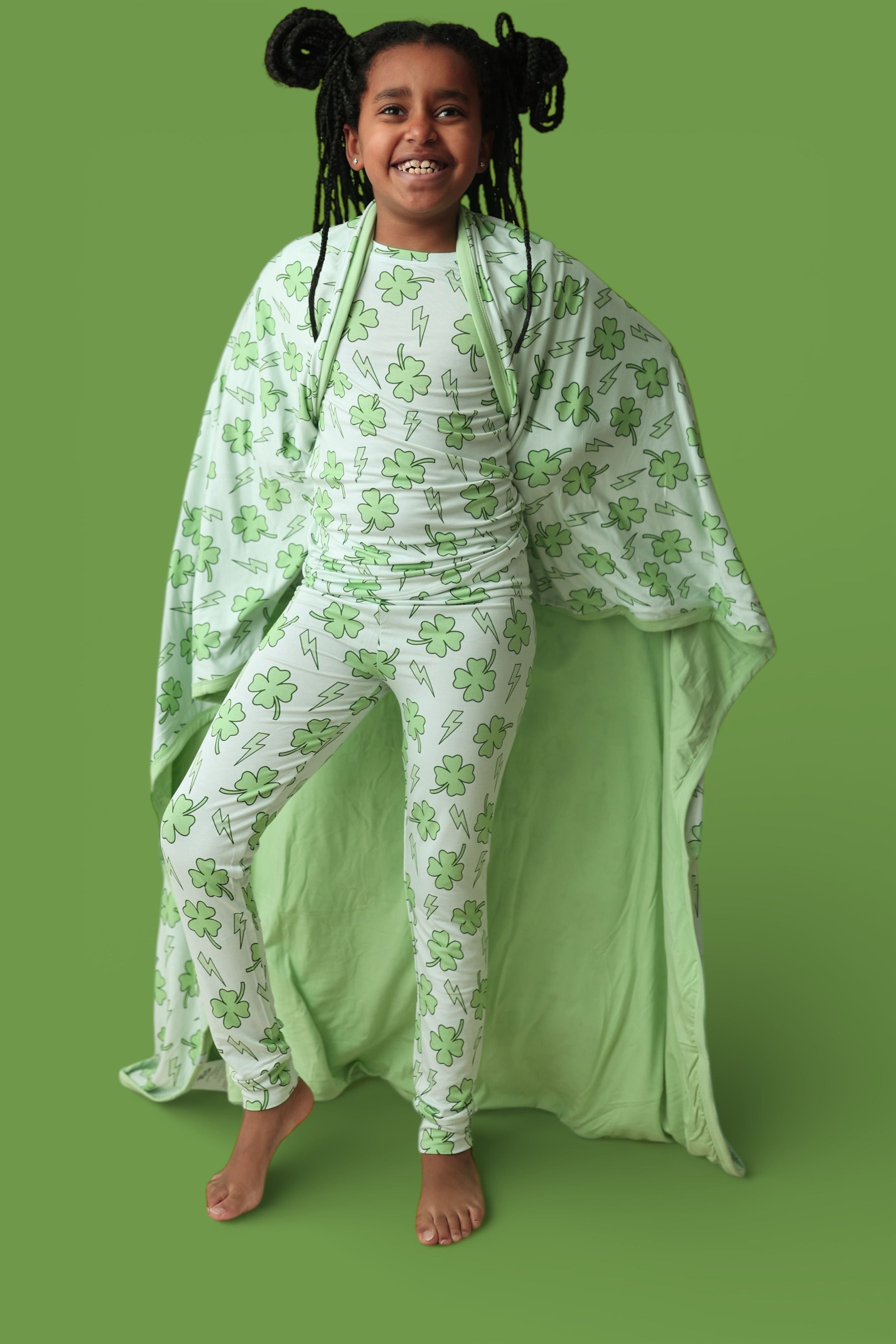 Cozy, lucky, and full of bright energy! The Shamrock Shock Dream Blanket features an all-over shamrock and lightning bolt print, creating the perfect snuggly layer for naps, bedtime, stroller rides, and comfy cuddles. A fun, festive must-have for St. Patrick’s Day and every cozy moment after. 💚