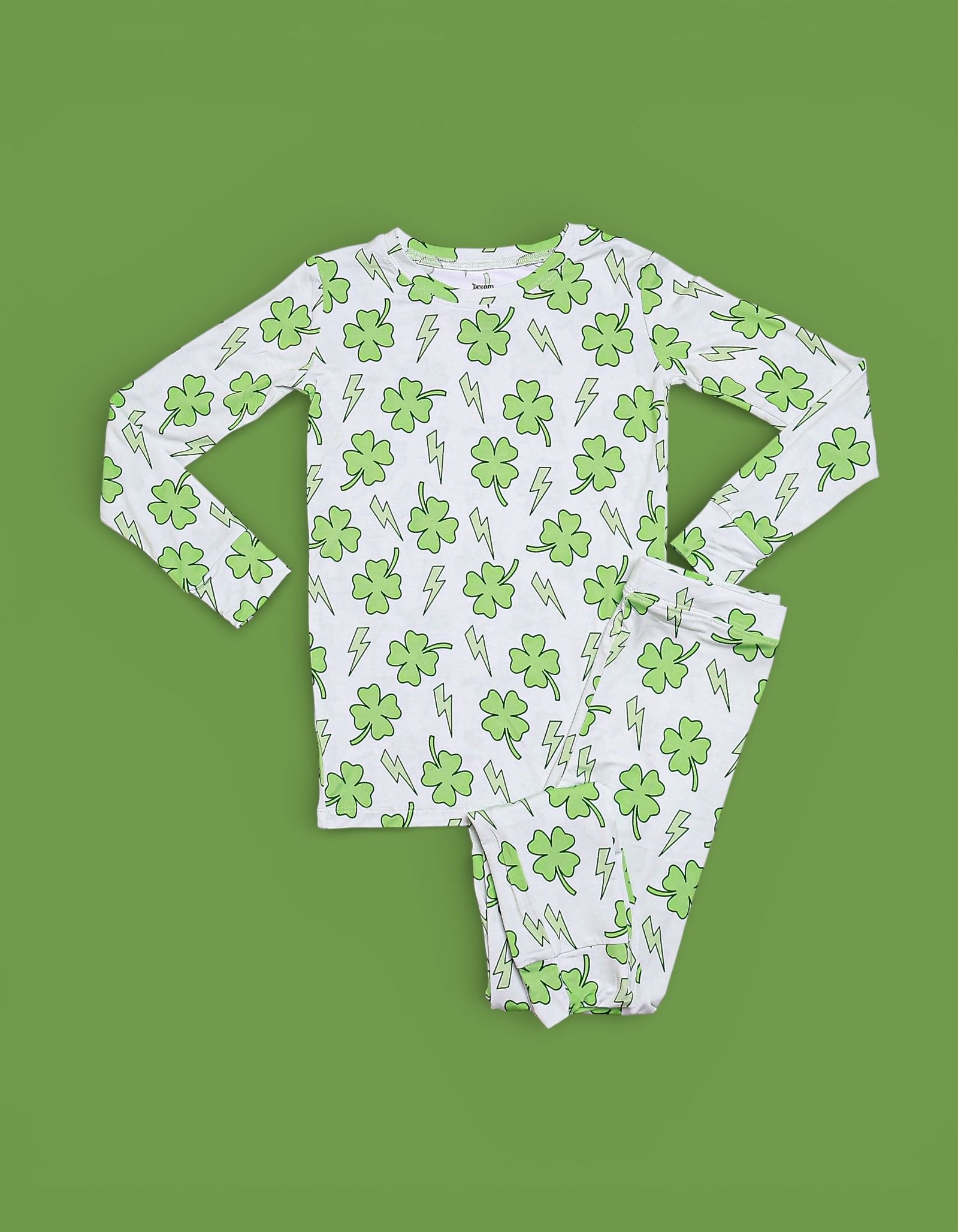 Full of luck and a little spark! The Shamrock Shock Dream Set features matching top-and-bottom pieces covered in bold shamrocks and lightning bolts, creating the perfect festive look for St. Patrick’s Day and fun everyday wear. Soft, stretchy, and comfy for play, sleep, and everything in between, this set brings all the bright, energetic vibes. 💚