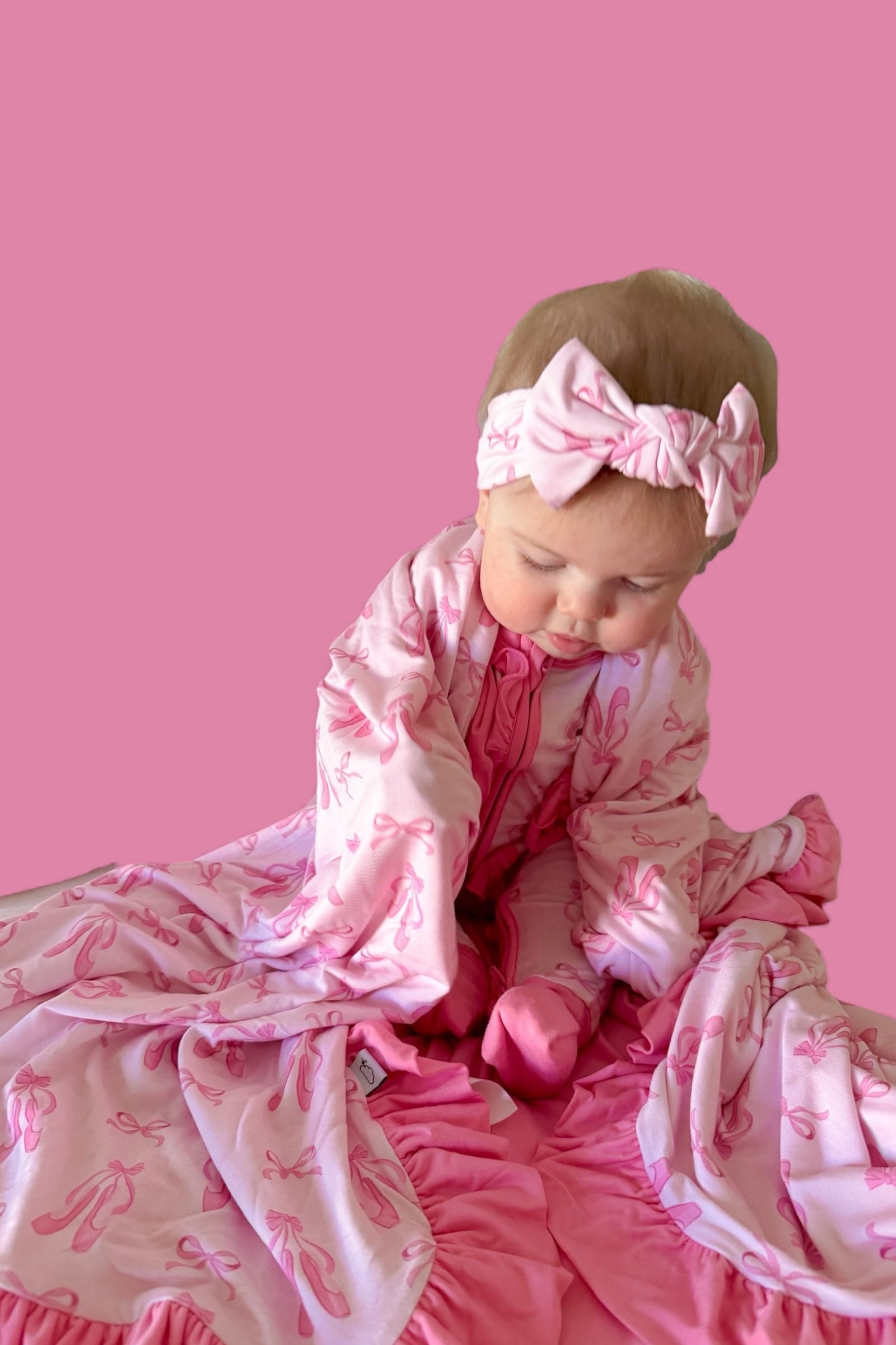 The perfect finishing touch for every little ballerina’s look! The Ballet Bow Bliss Dream Bow features our darling ballet slipper + bow print on buttery-soft bamboo fabric. Designed with a comfy headband, it’s soft, secure, and oh-so sweet for everyday wear or dress-up moments.