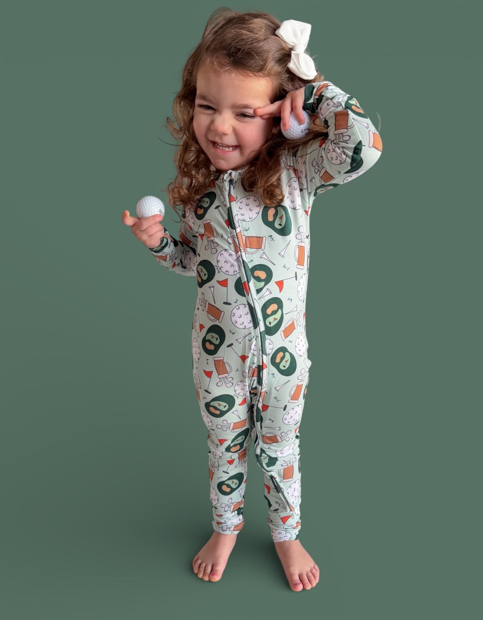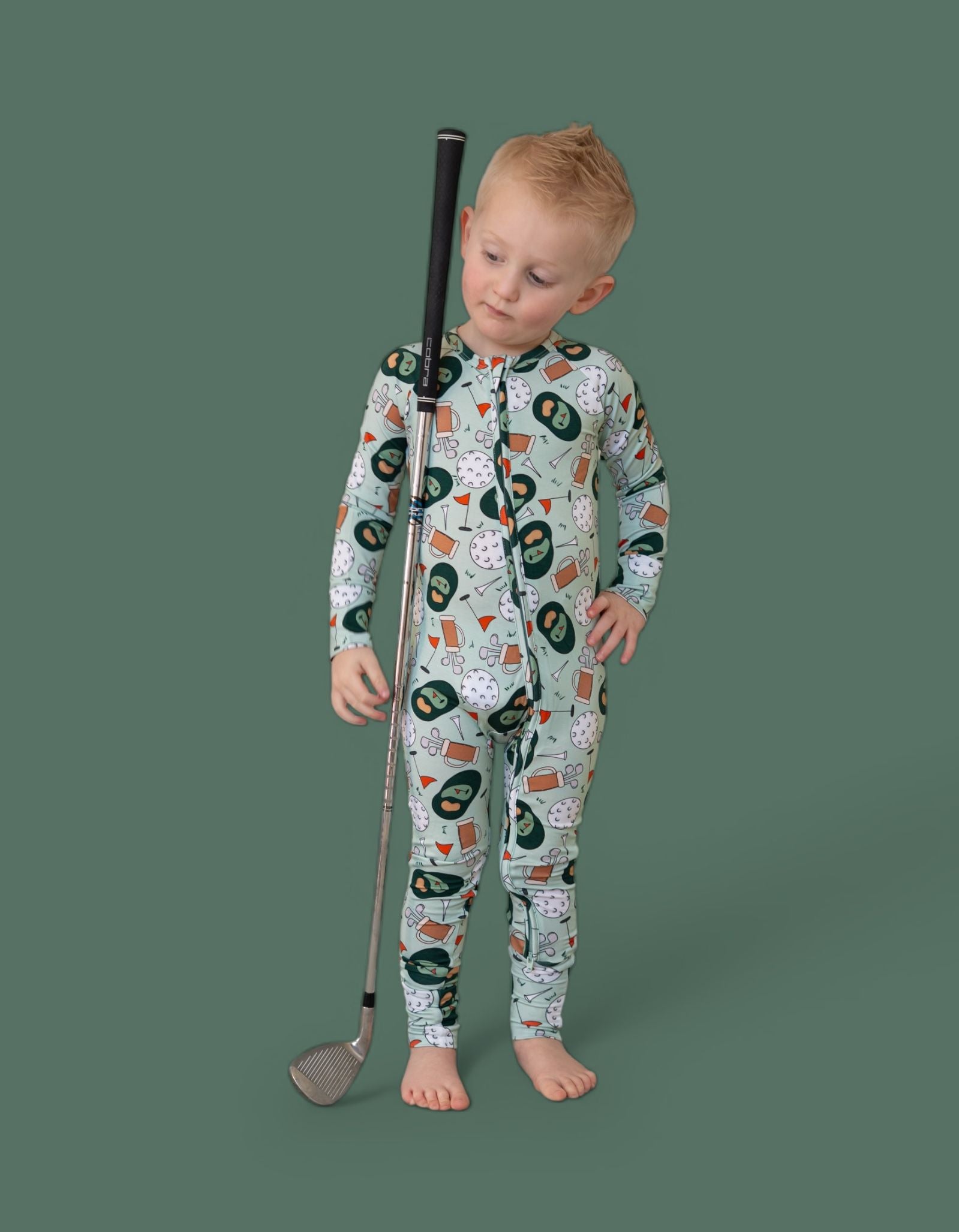 The Birdie & Bogeys Dream Romper is a hole-in-one for cozy days and cute moments. Featuring a playful golf-inspired print with clubs, balls, and course-ready details, this one-piece romper is made from our signature buttery-soft bamboo fabric for a breathable, gentle feel all day (and night) long. Designed for easy wear and maximum comfort, it’s perfect for little ones who love to move, snuggle, and play.