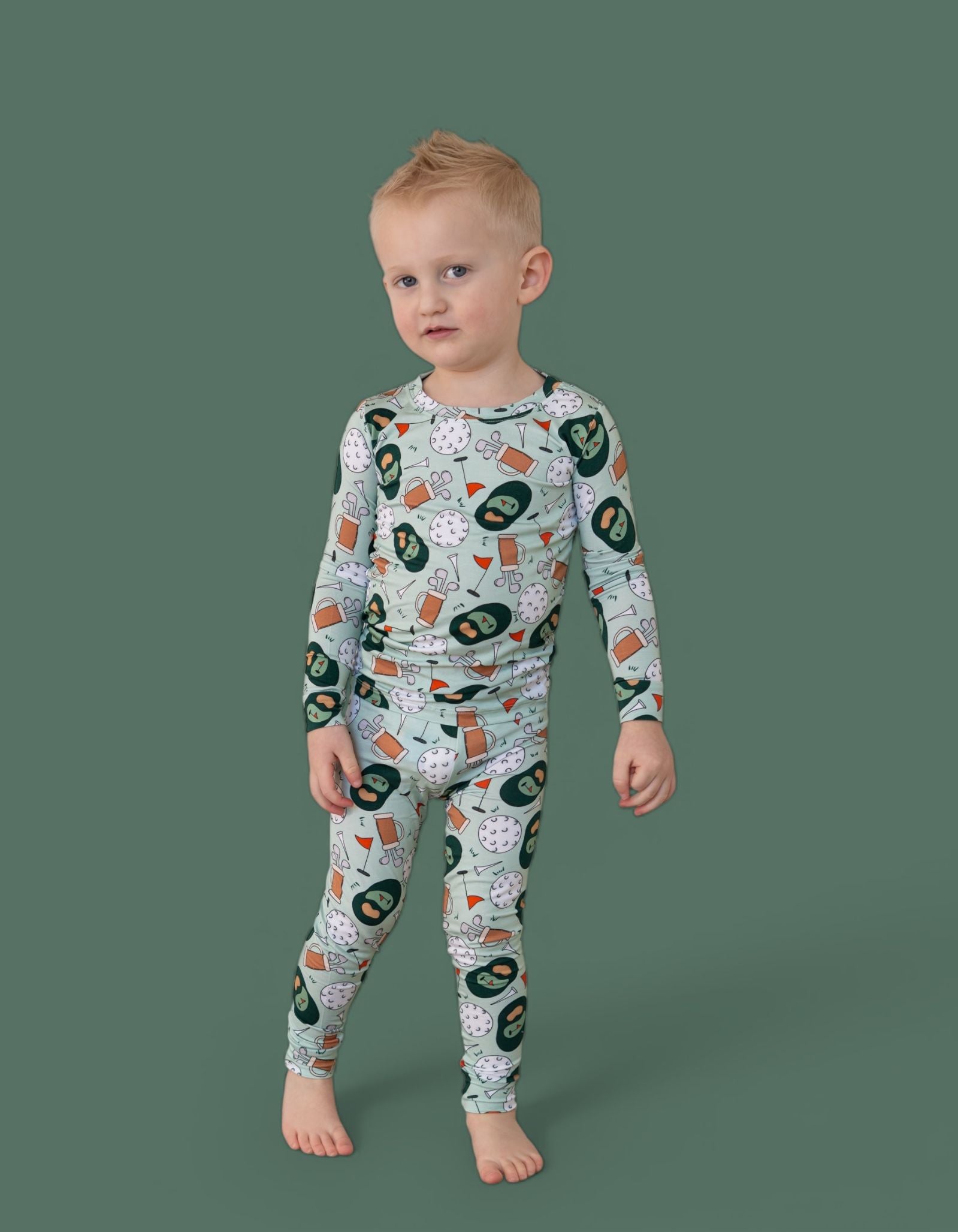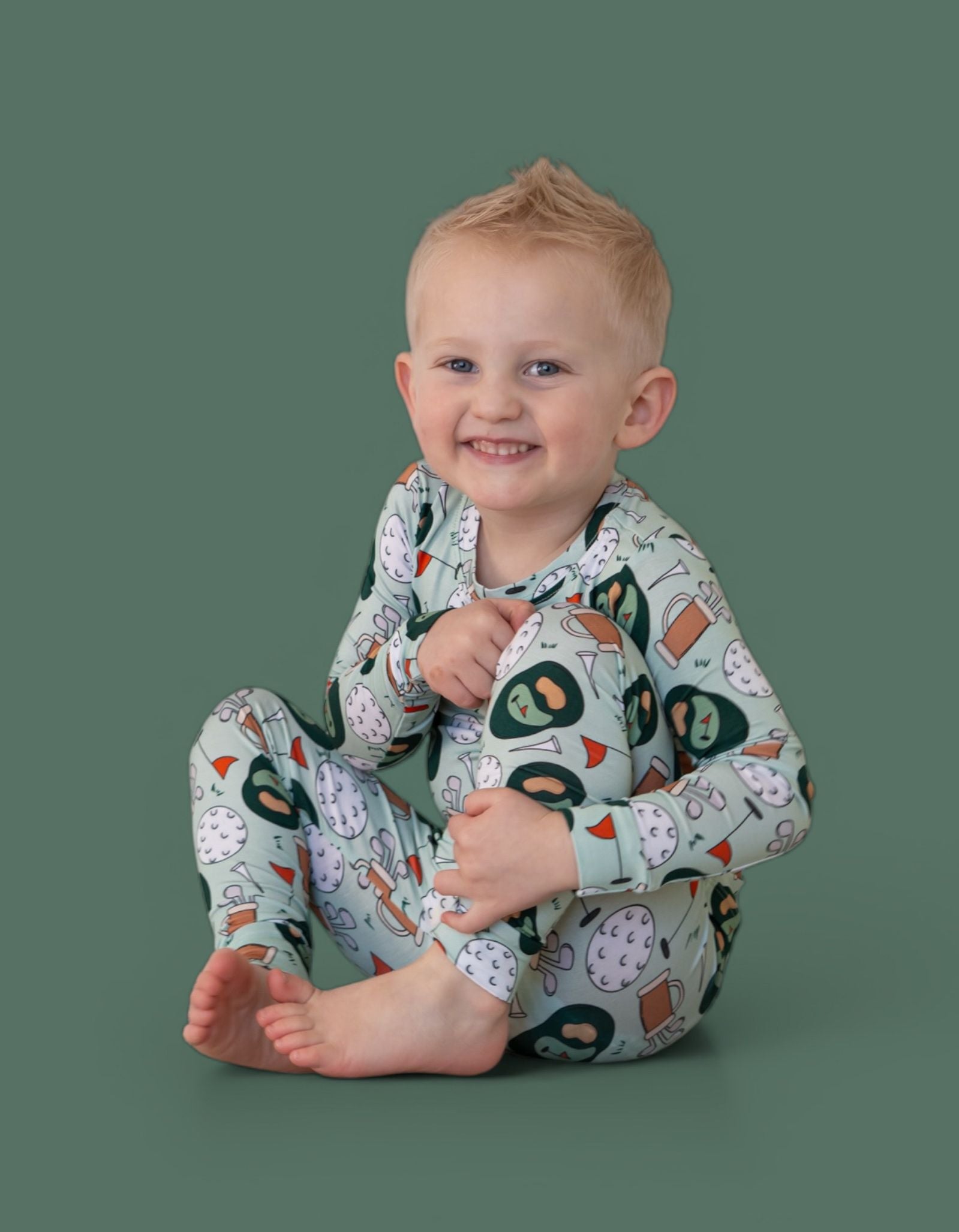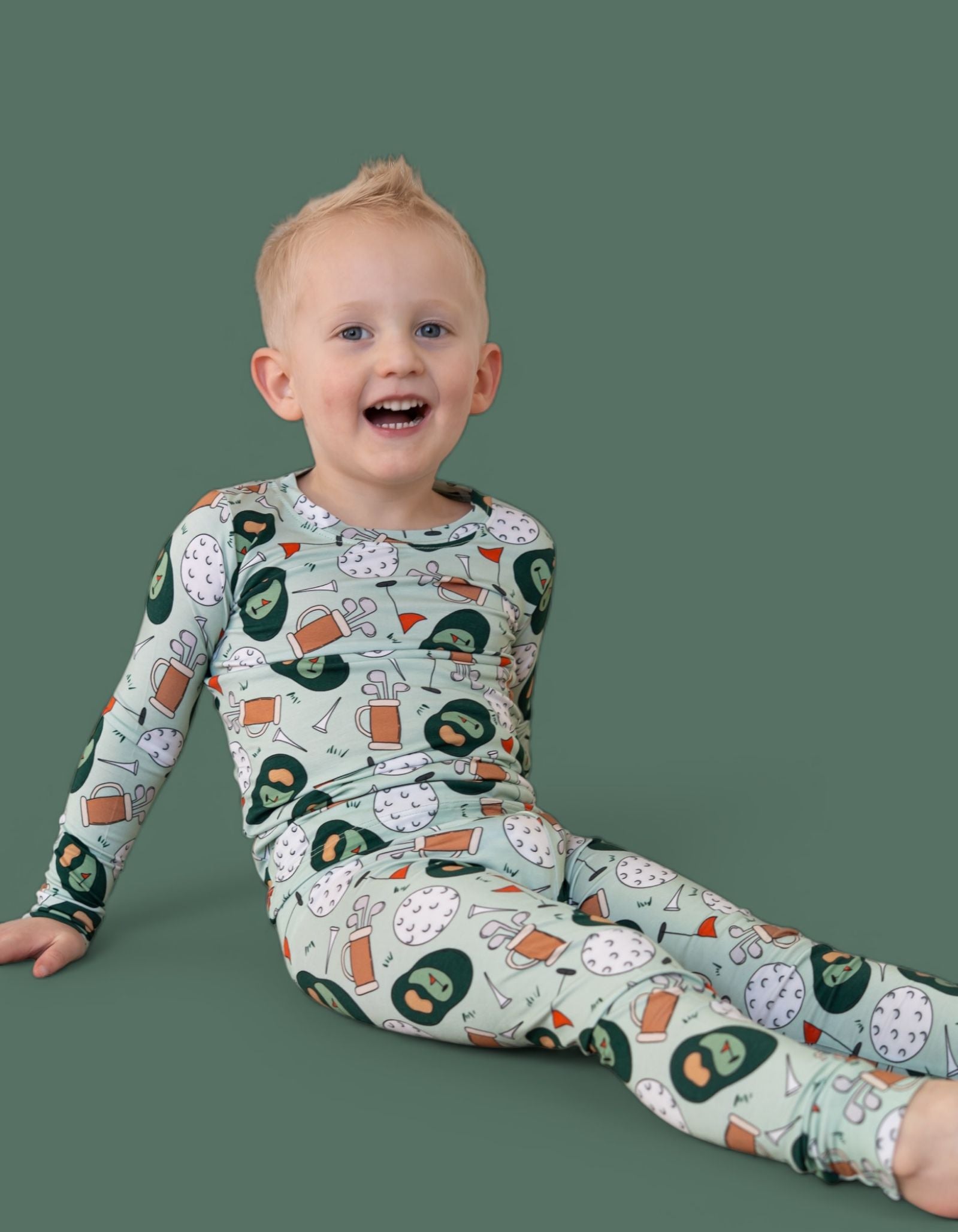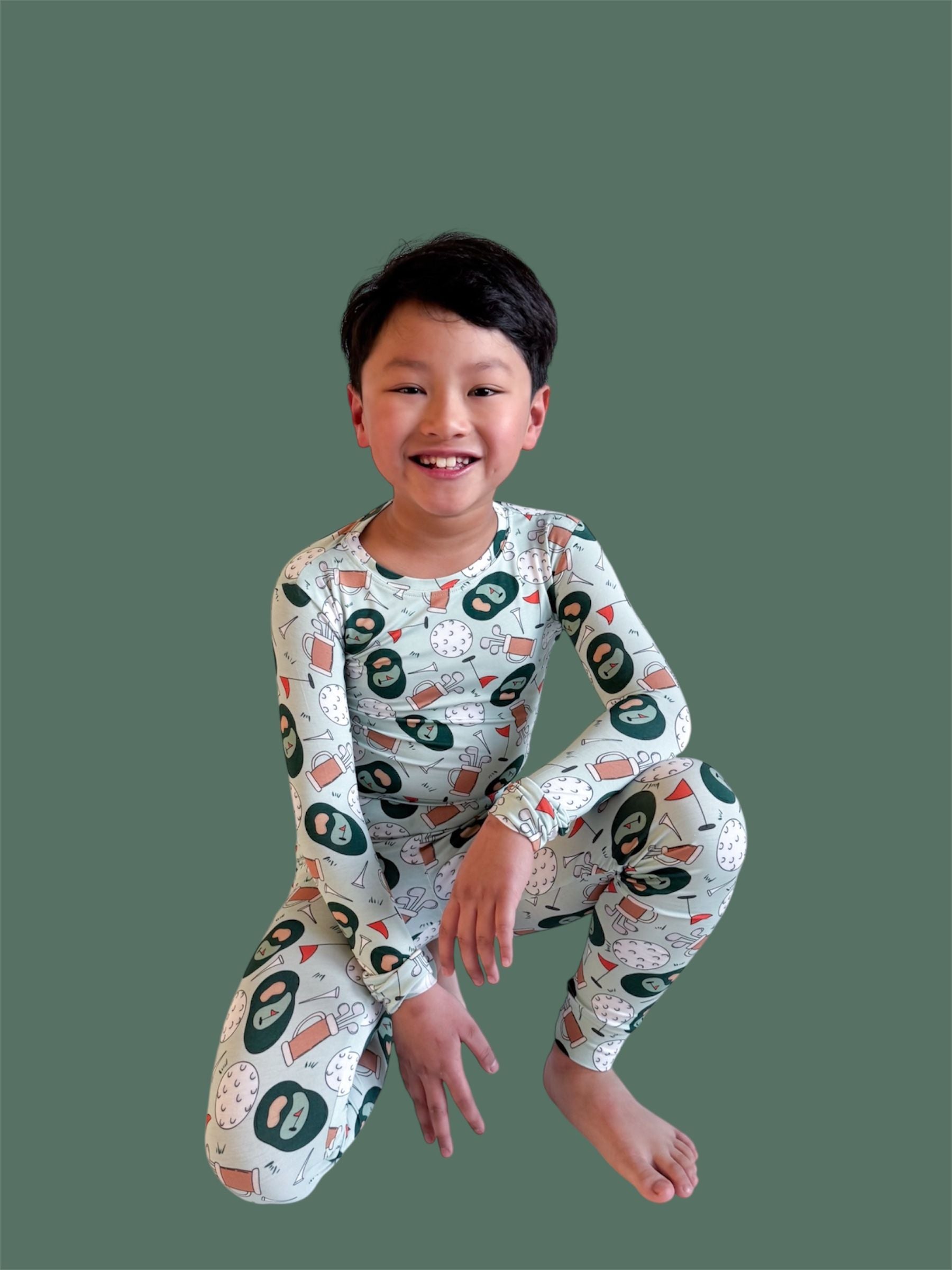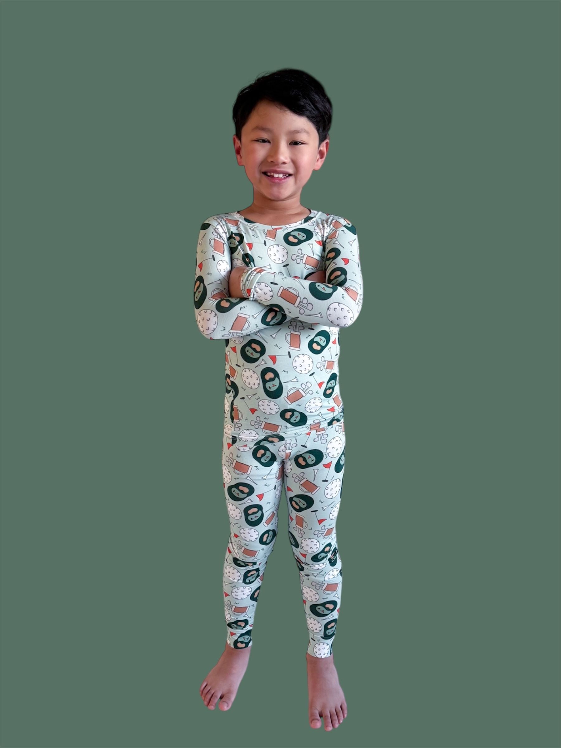 The Birdie & Bogeys Dream Set is a playful, comfy favorite for little ones who love sporty fun with a cozy twist. Featuring an adorable golf-inspired print with clubs, balls, and course-ready details, this two-piece set is made from our signature buttery-soft bamboo fabric for a breathable, gentle feel all day (and night) long. Perfect for lounging, playtime, and sweet matching moments.