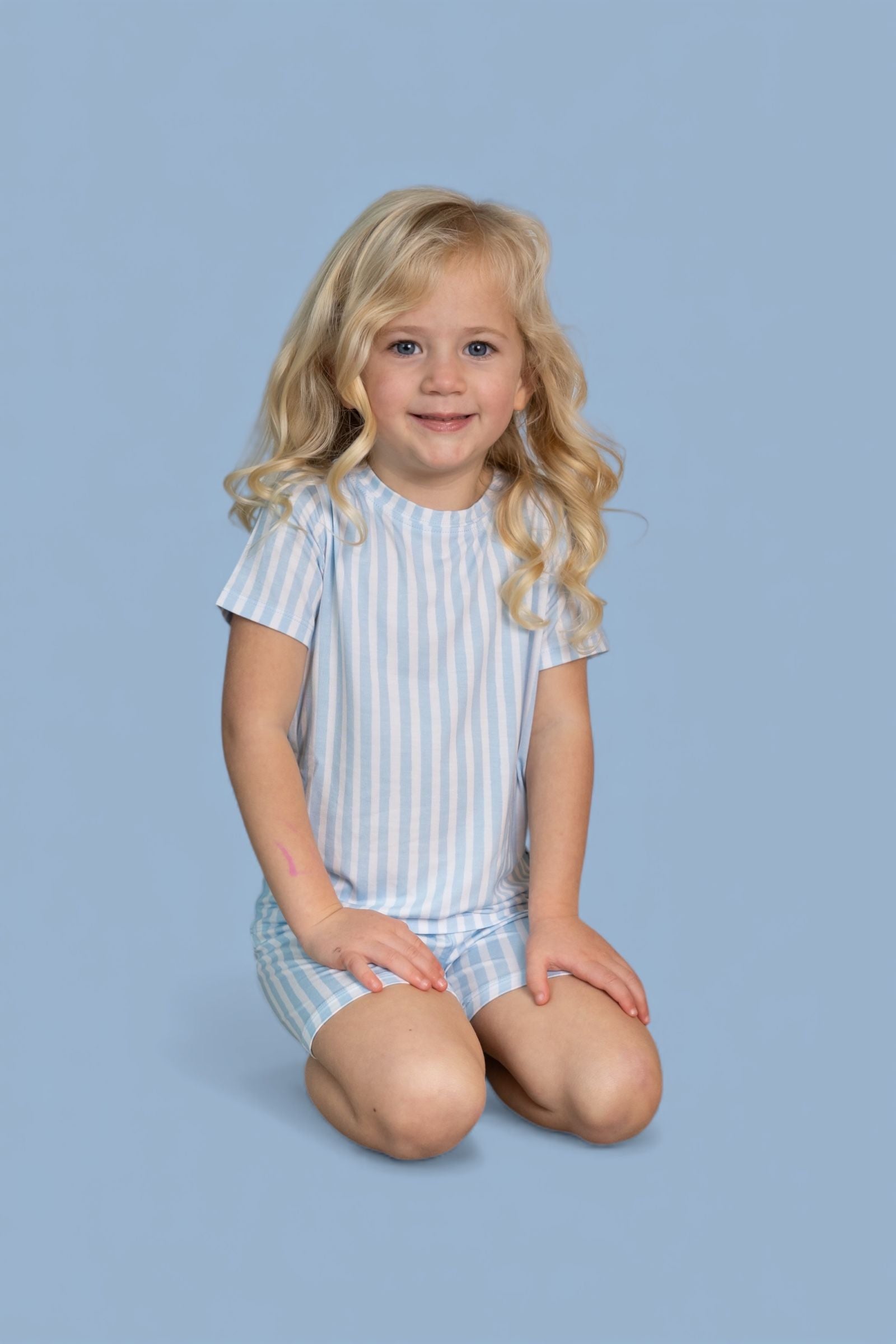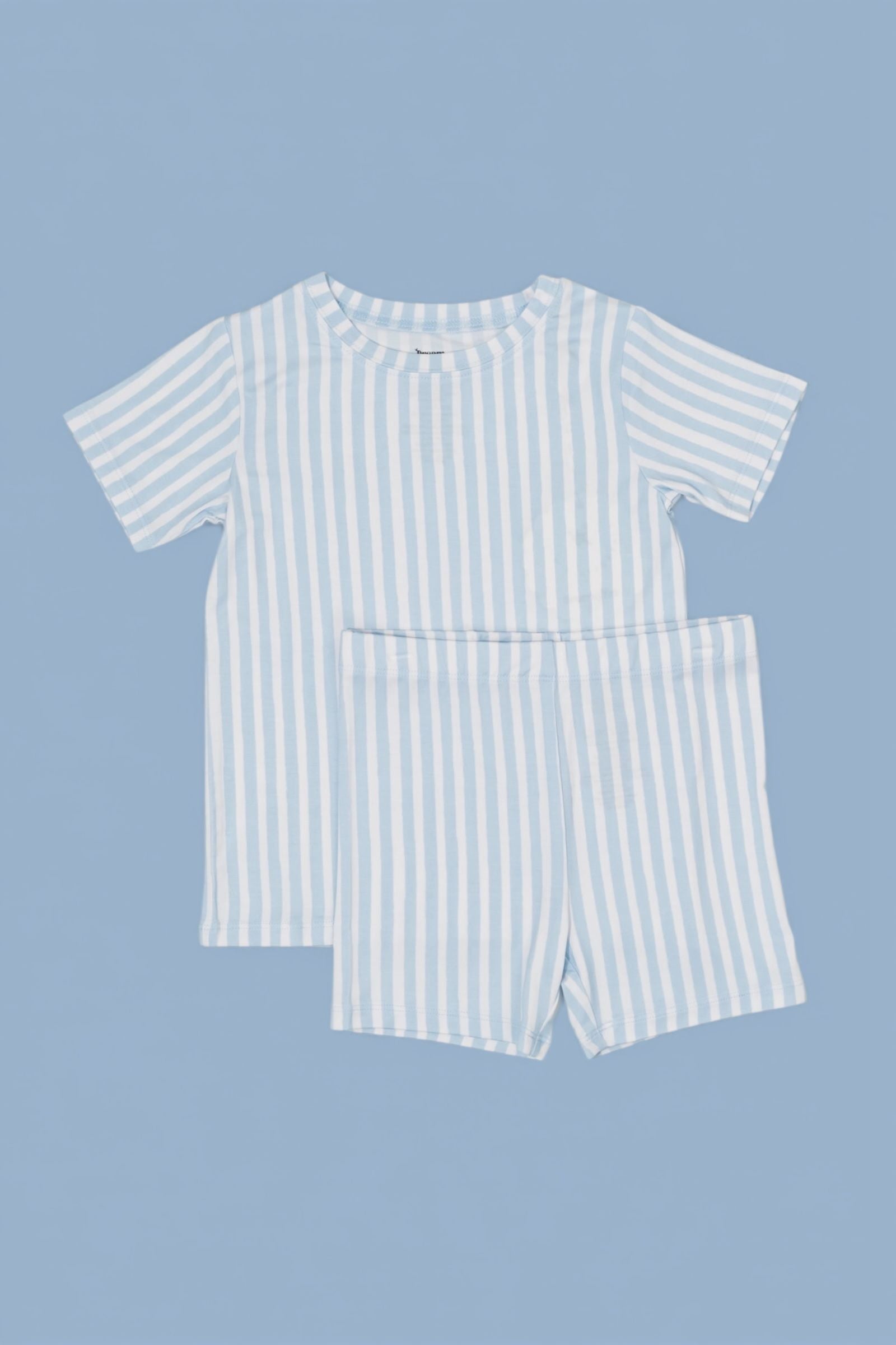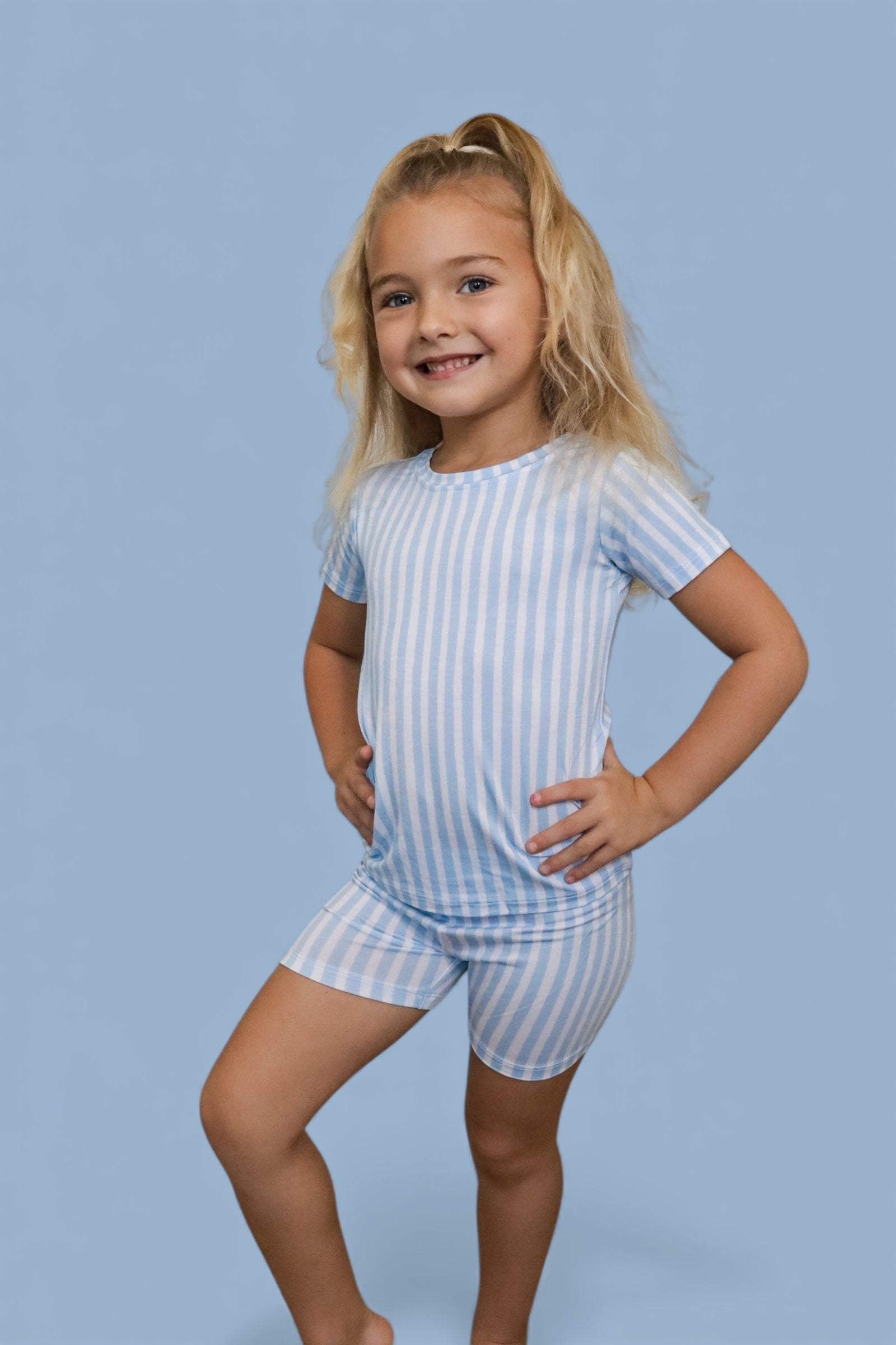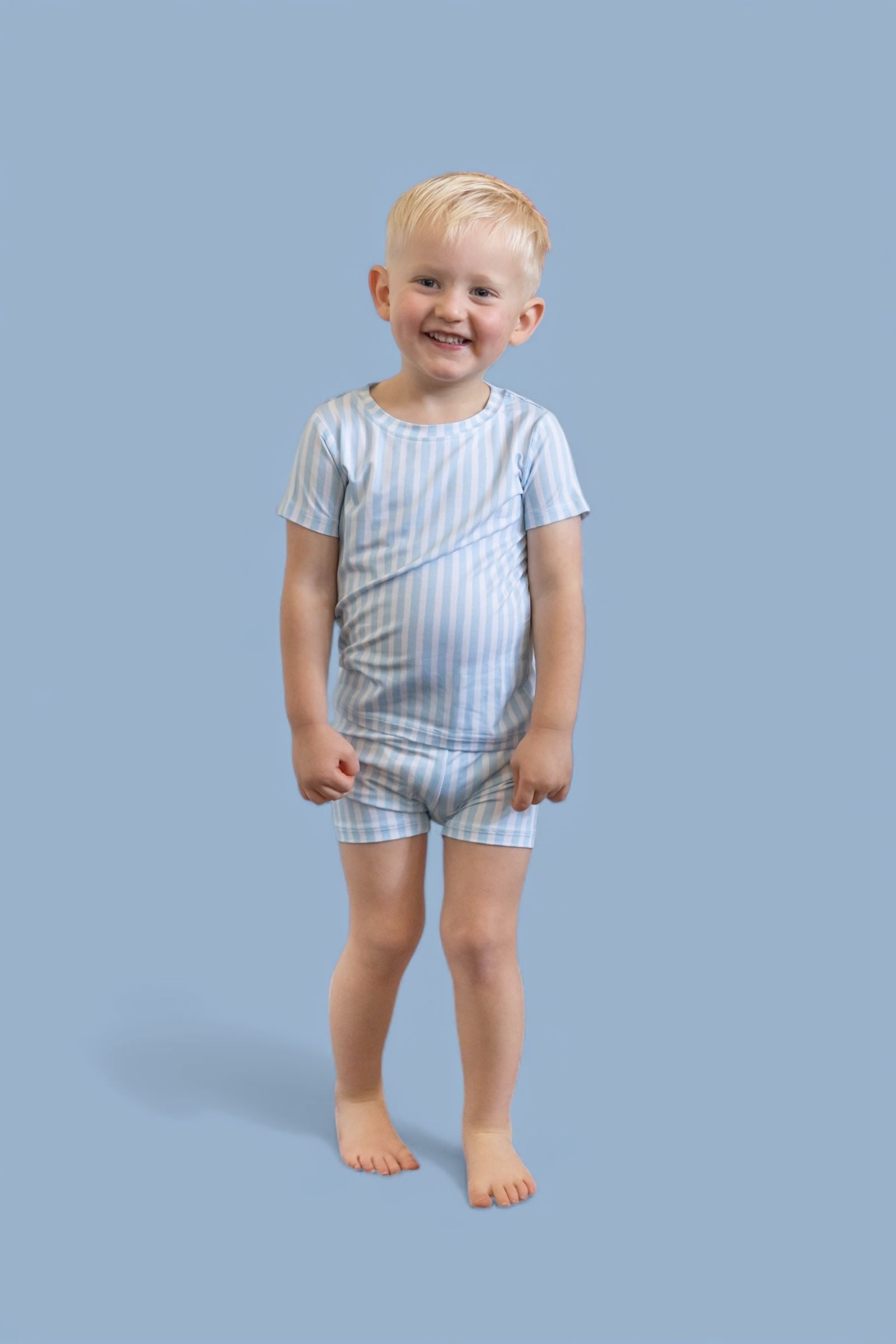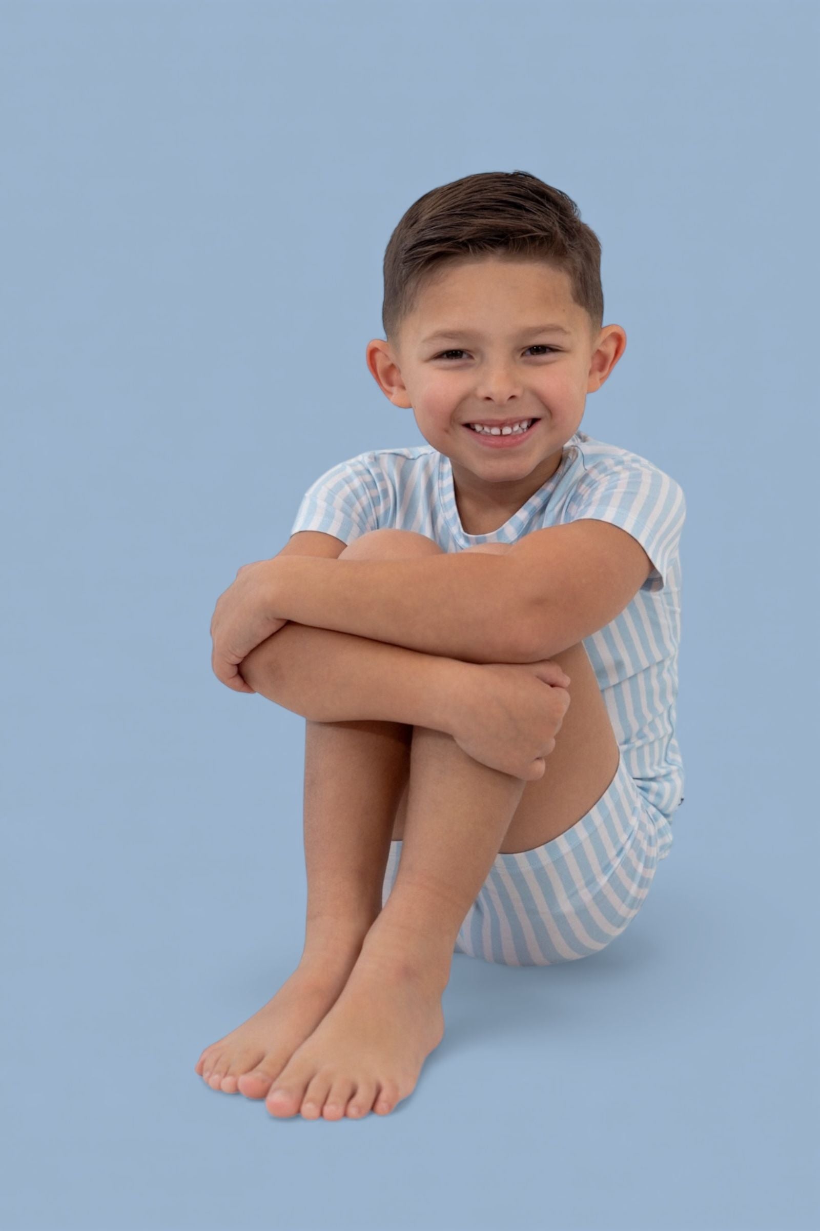 Classic, comfy, and perfect for warm days! The Seaside Stripe Dream Short Set features timeless blue-and-white stripes on our signature buttery-soft bamboo fabric. With a short-sleeve top and matching shorts, this set is breathable, stretchy, and made for seaside play or cozy lounging.