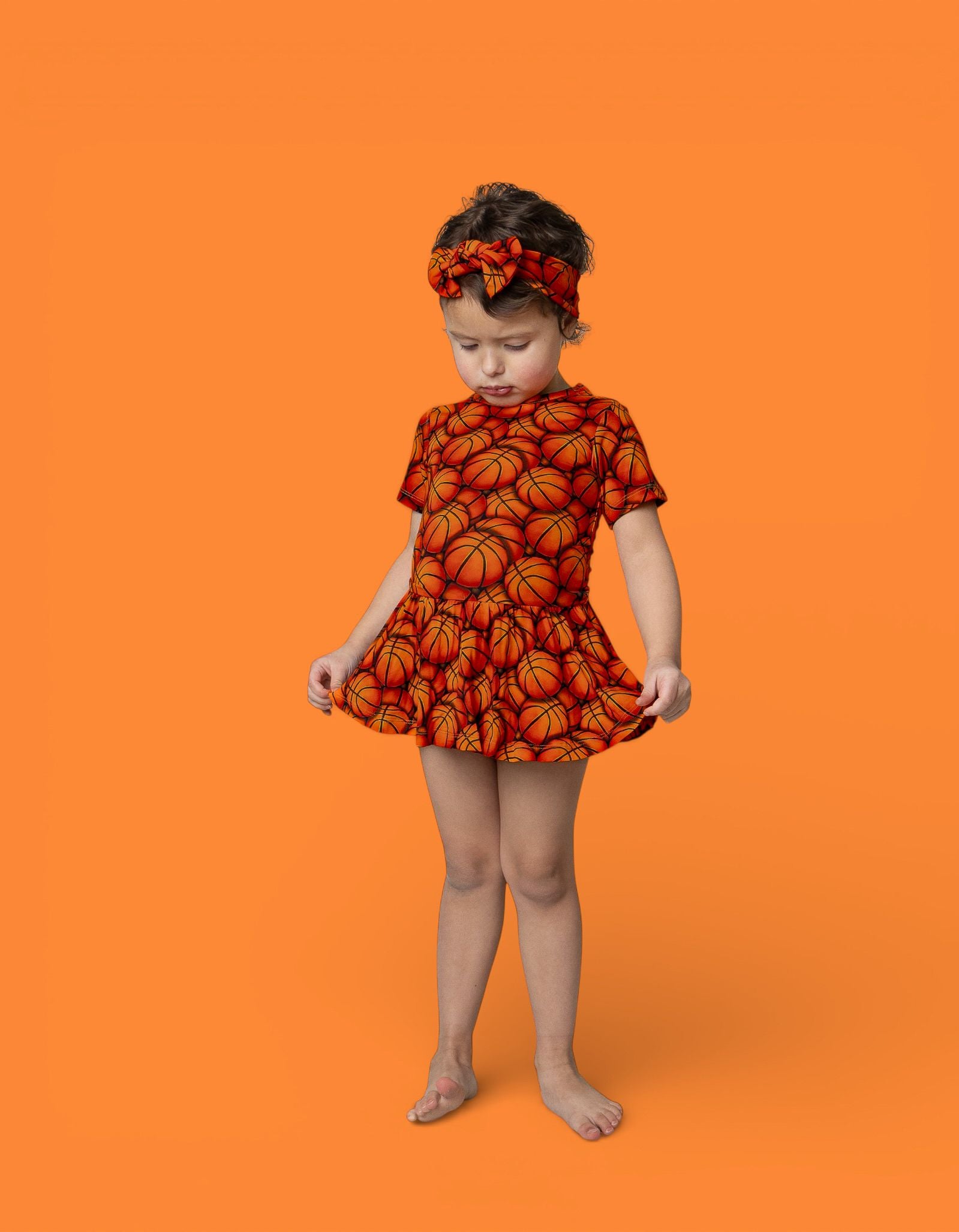 The Slam Dunk Squad Dream Bodysuit Dress combines game-day fun with everyday comfort. Featuring a bold basketball print and an easy bodysuit base with a dress-style skirt, this one-piece is made from our signature buttery-soft bamboo fabric for a breathable, gentle feel that keeps little ones comfy from playtime to picture time.
