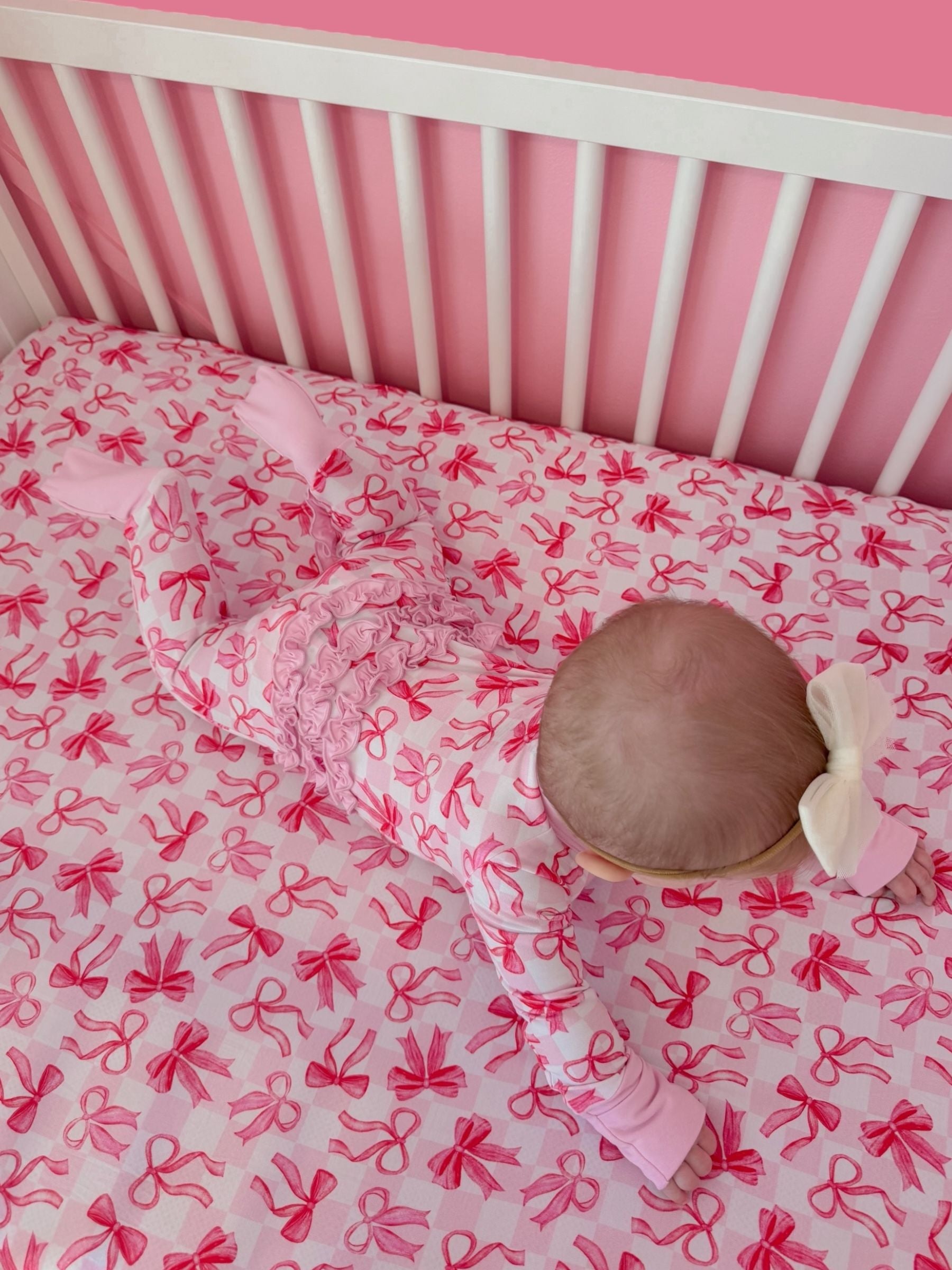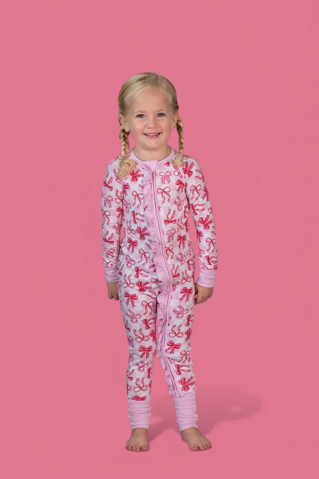 Sweet dreams start here! Our Bow Checkered Charm Dream Ruffle Romper is a total showstopper in soft pink hues and a playful bow-check print. Made from our signature buttery-soft bamboo fabric, it’s cozy, breathable, and gentle on your little one’s skin.