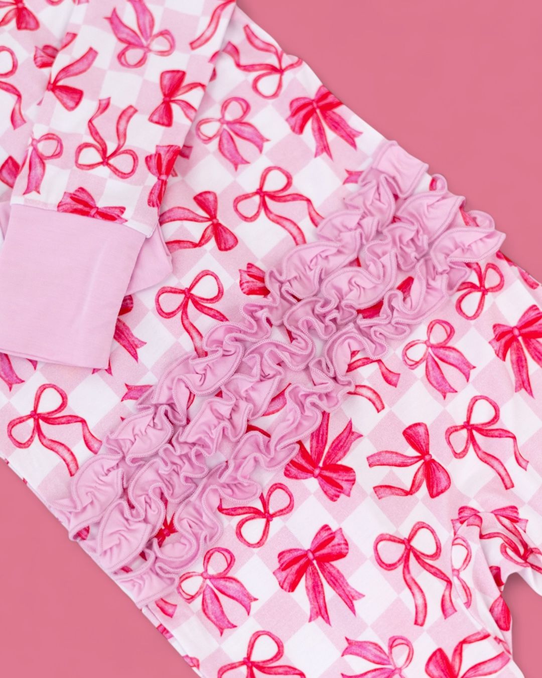 BOW CHECKERED CHARM DREAM RUFFLE ROMPER 🎀💖