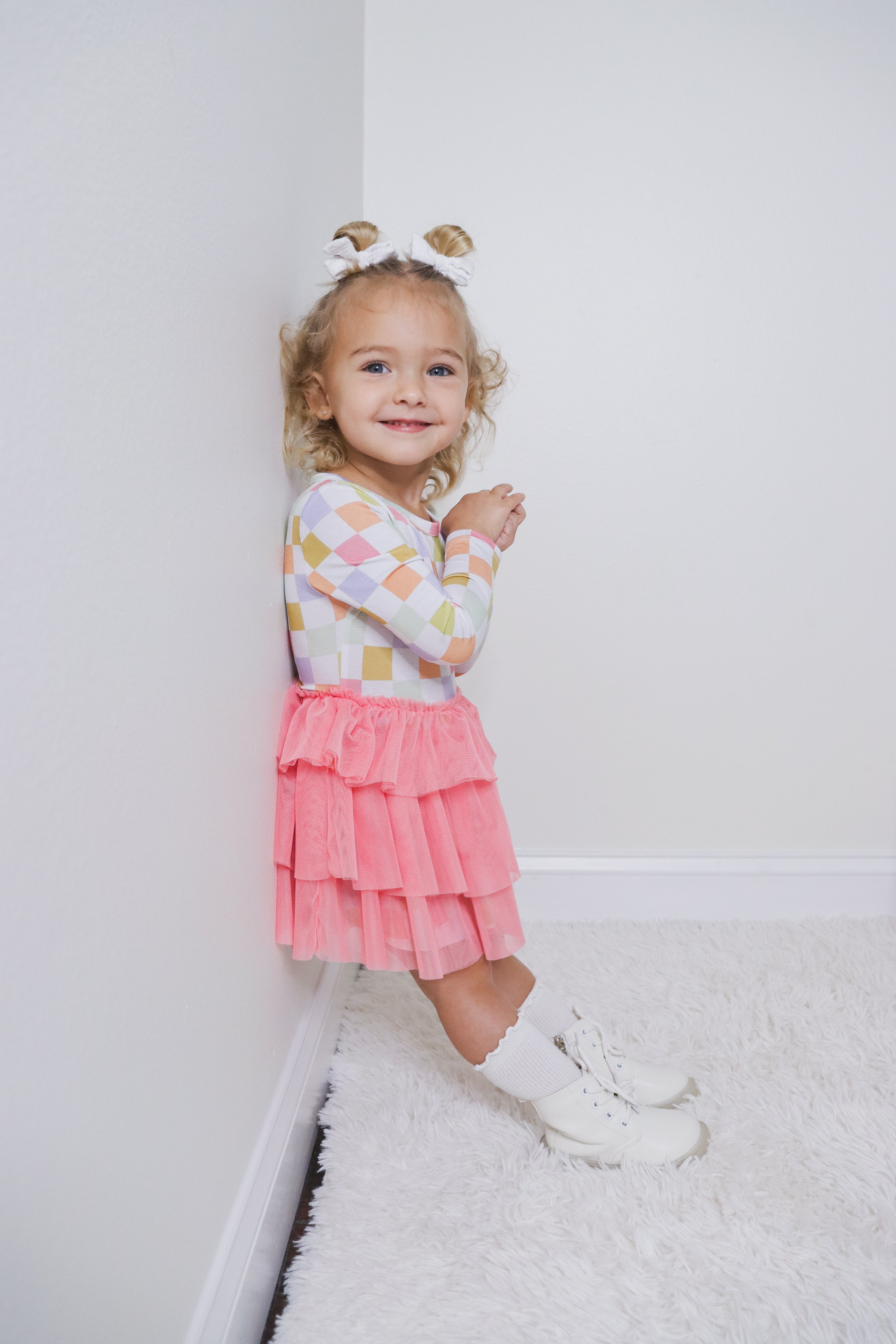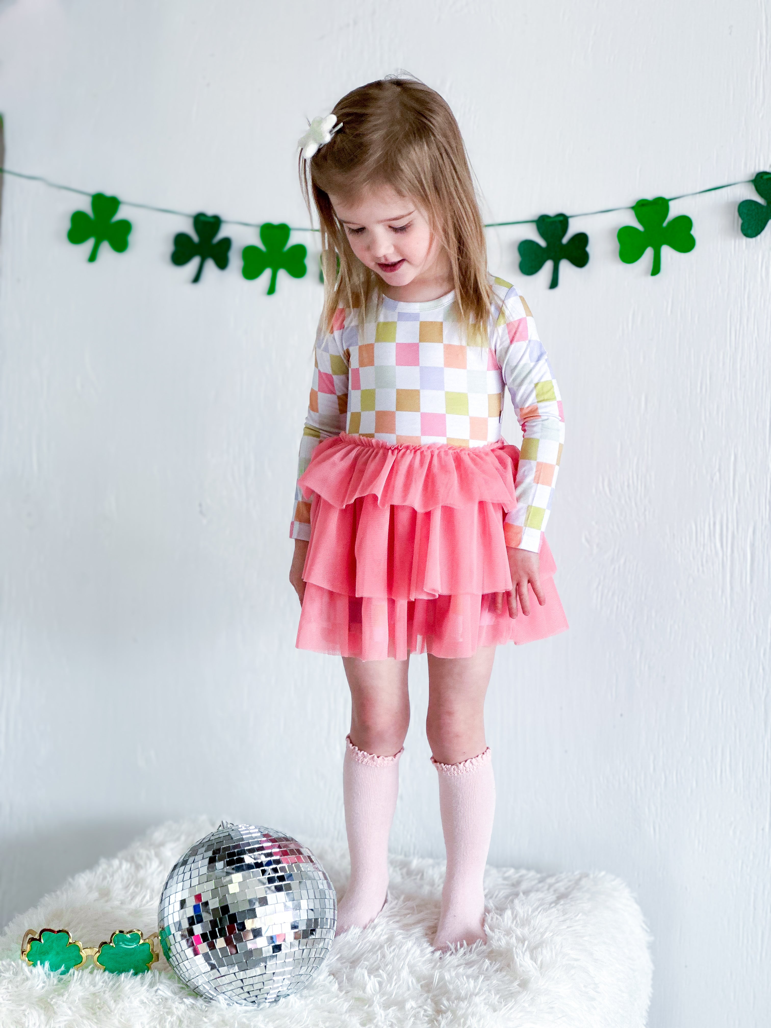 Get ready to rock this St. Patrick's Day with our Lucky Charm Checks Dream Tutu Dress! Featuring a fun pink tutu dress with a playful checkered print, this long sleeve dress will have you looking stylish and feeling lucky. Don't miss out on this unique and quirky addition to your wardrobe!