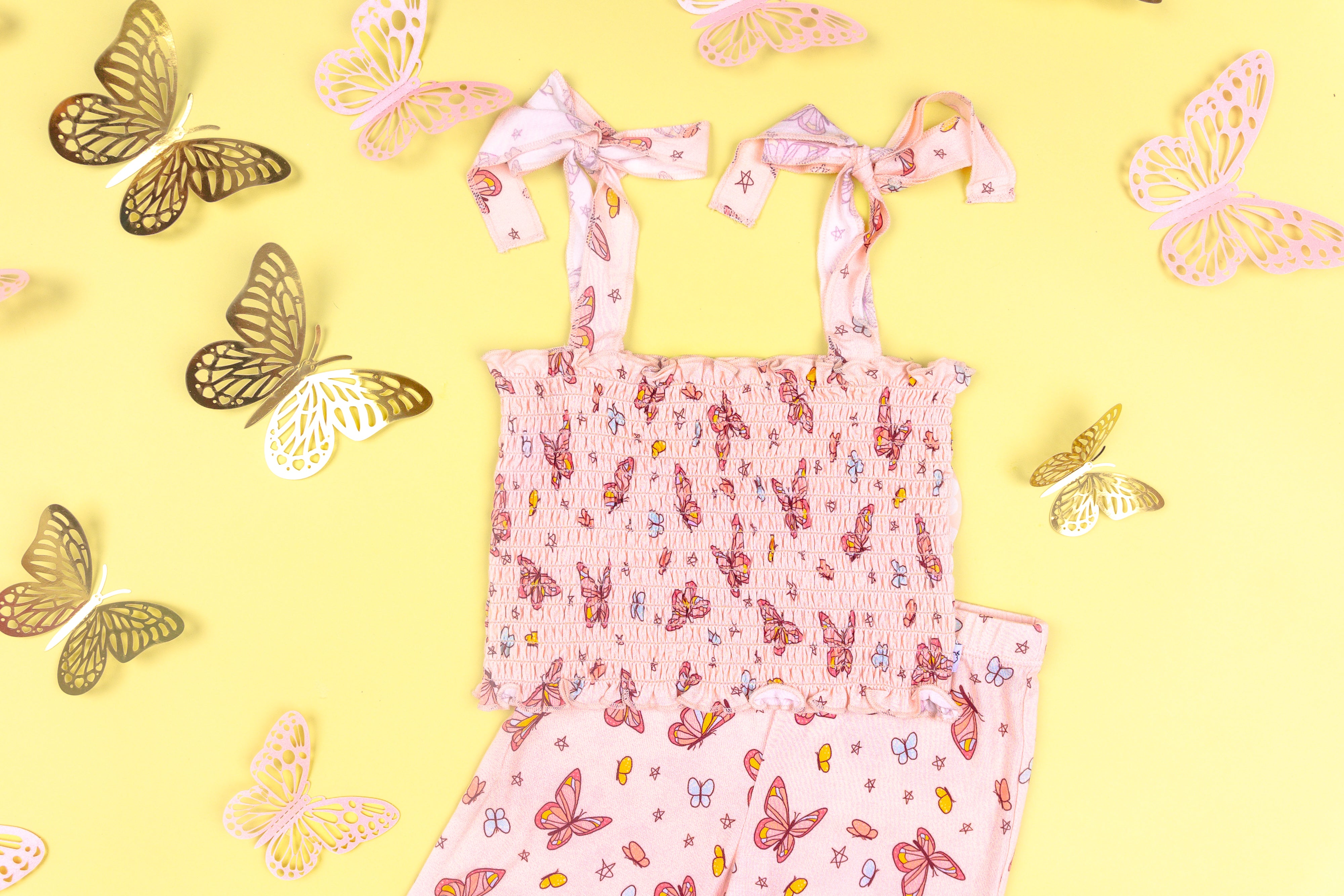 Chase your dreams in style with our Chasing Butterflies Dream Smocked Flare Set! Made from comfortable bamboo material, this two piece set features a fun butterfly design. Perfect for a playful day out. Grab yours before they flutter away!