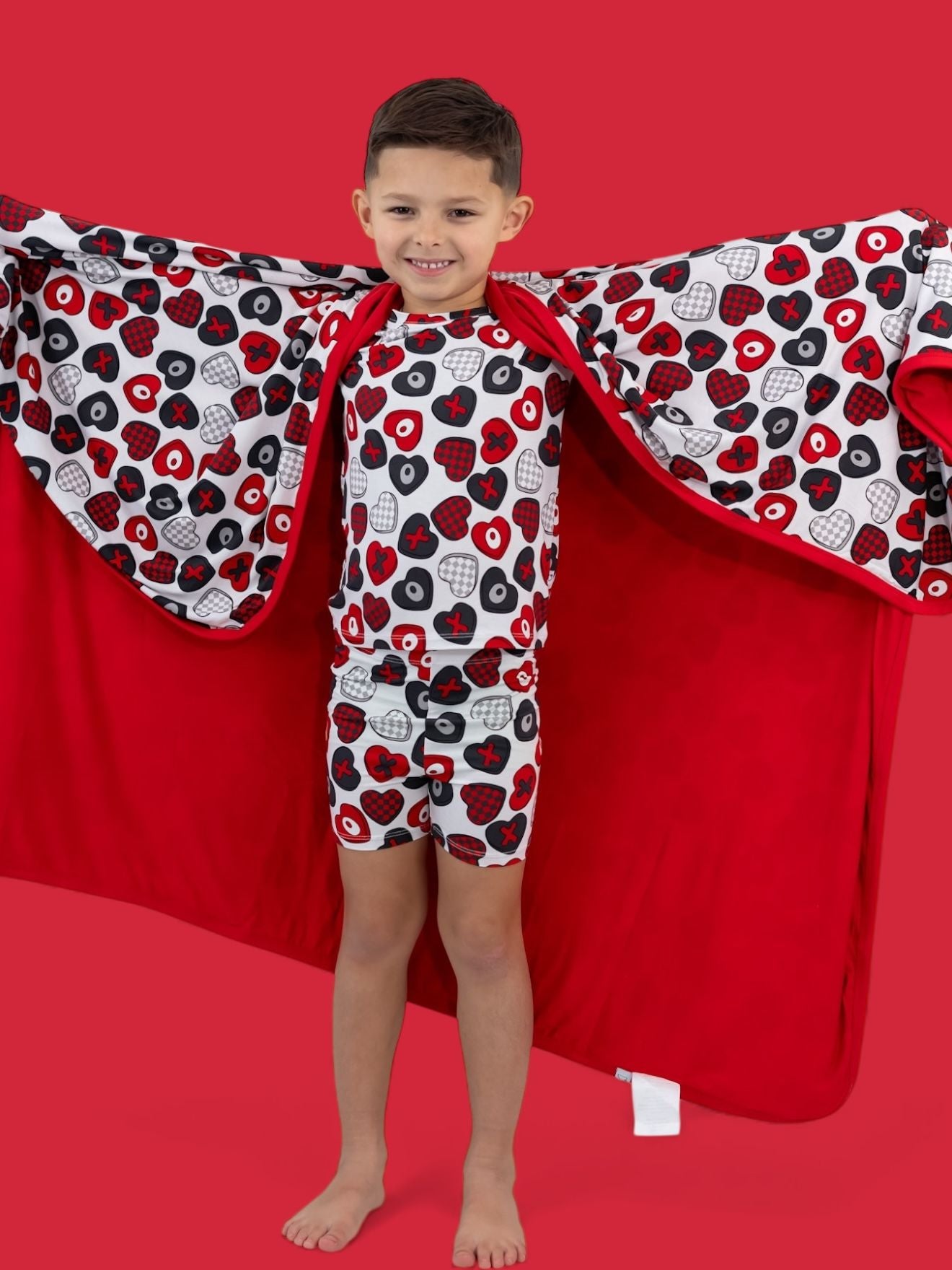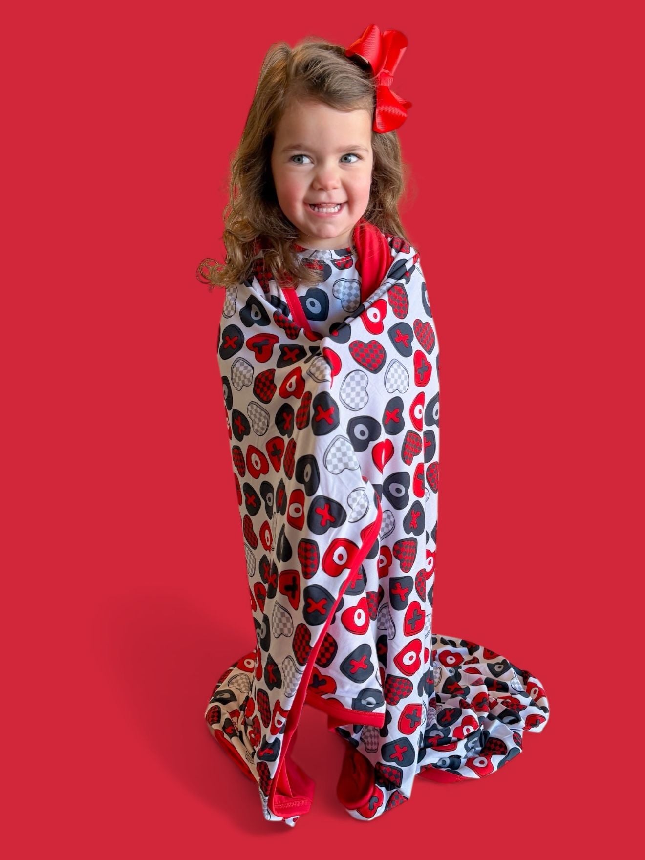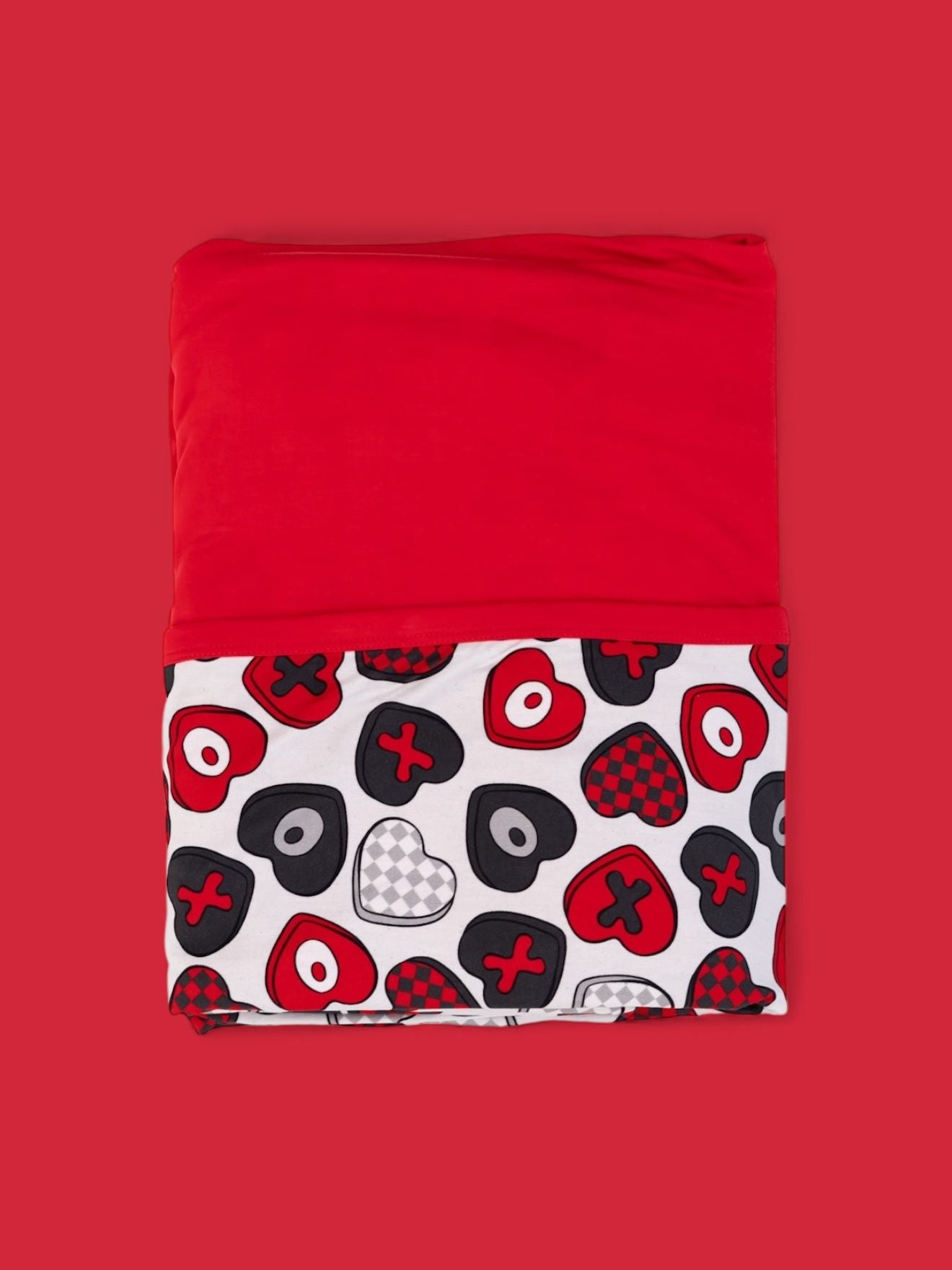 Wrap your little love bug in cozy hugs! The Cross My Heart Dream Blanket is crafted from our signature buttery-soft bamboo fabric and features a bold all-over print of hearts and X’s in shades of red, black, and white. Oversized, breathable, and ultra-soft, it’s perfect for stroller rides, nap time, or cuddles anytime.