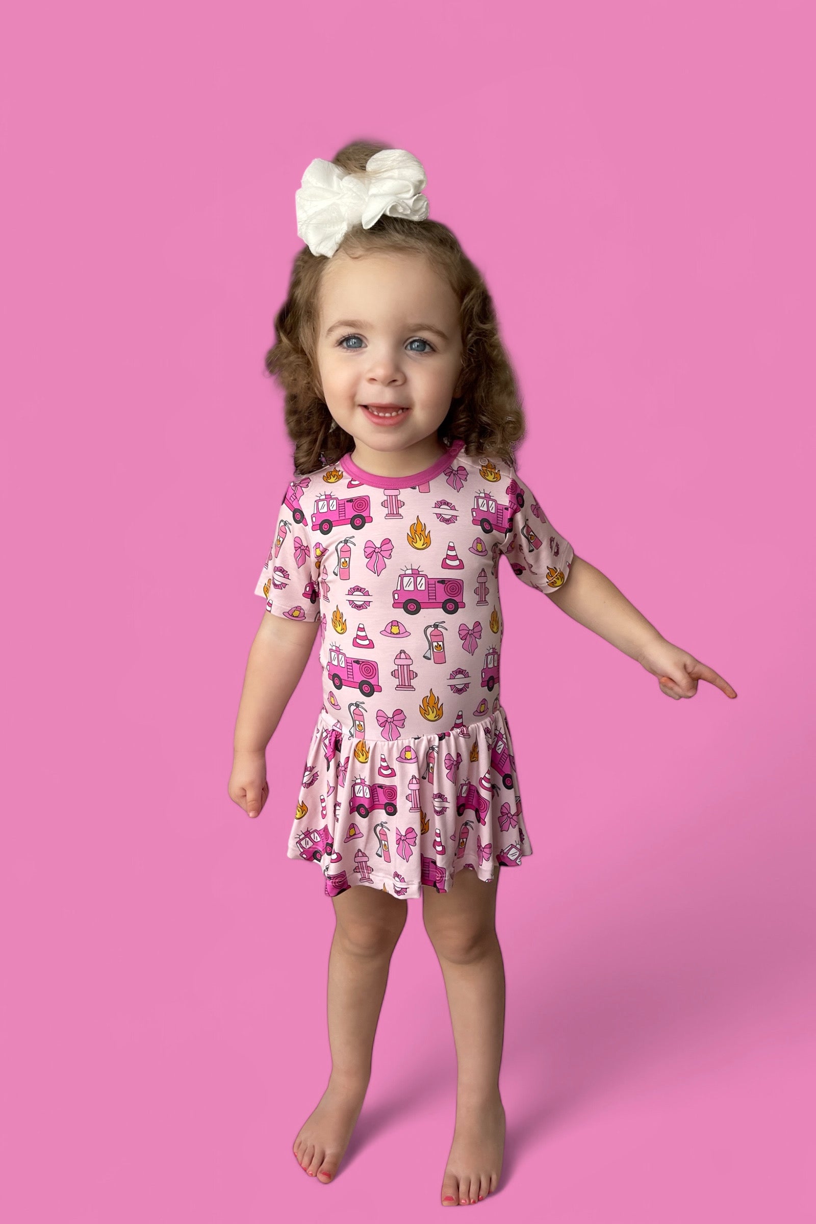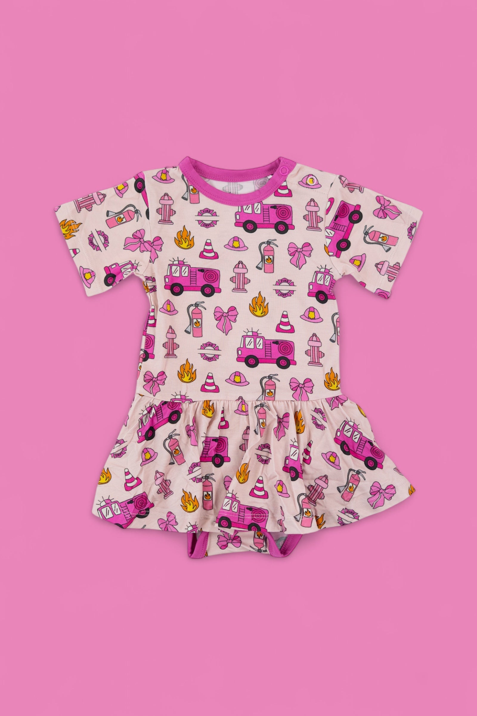 Blazing Bows and Hydrants Dream Bodysuit Dress – For Your Little Hero in Training!