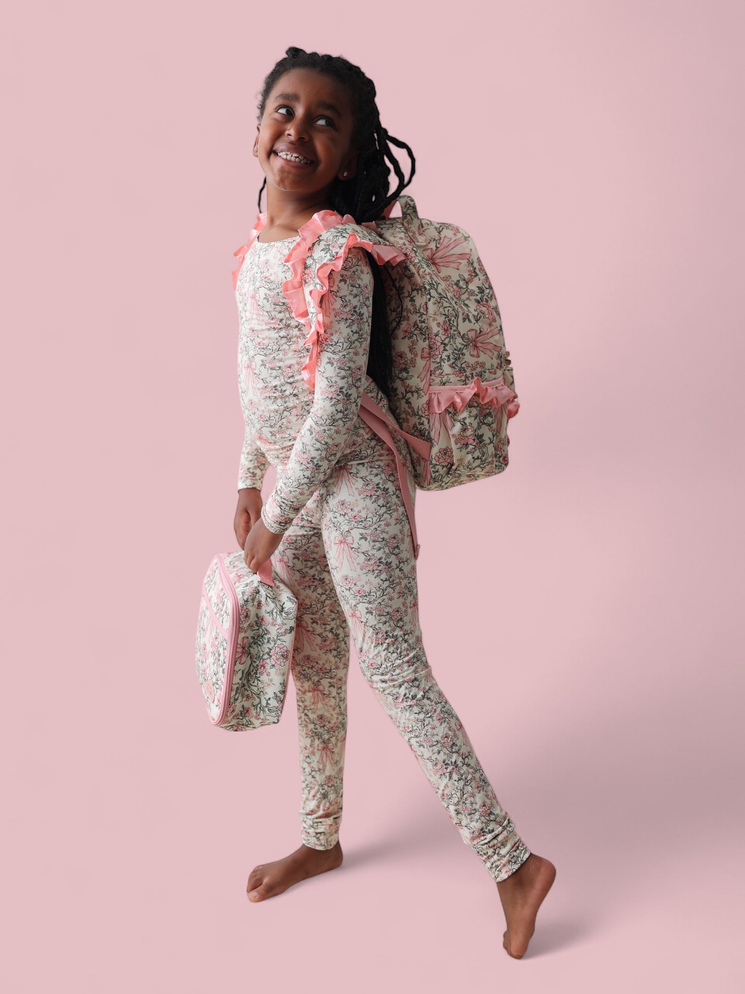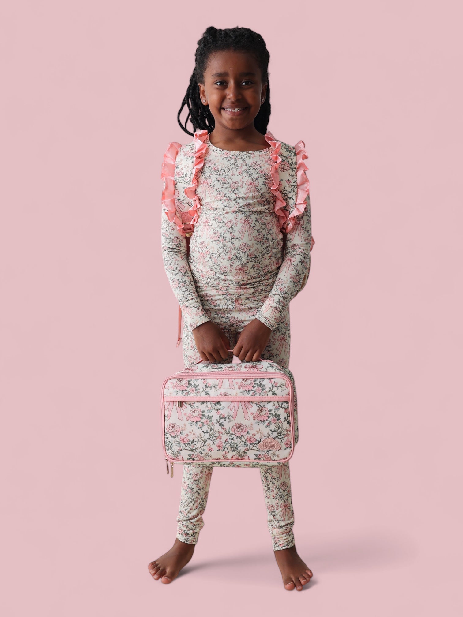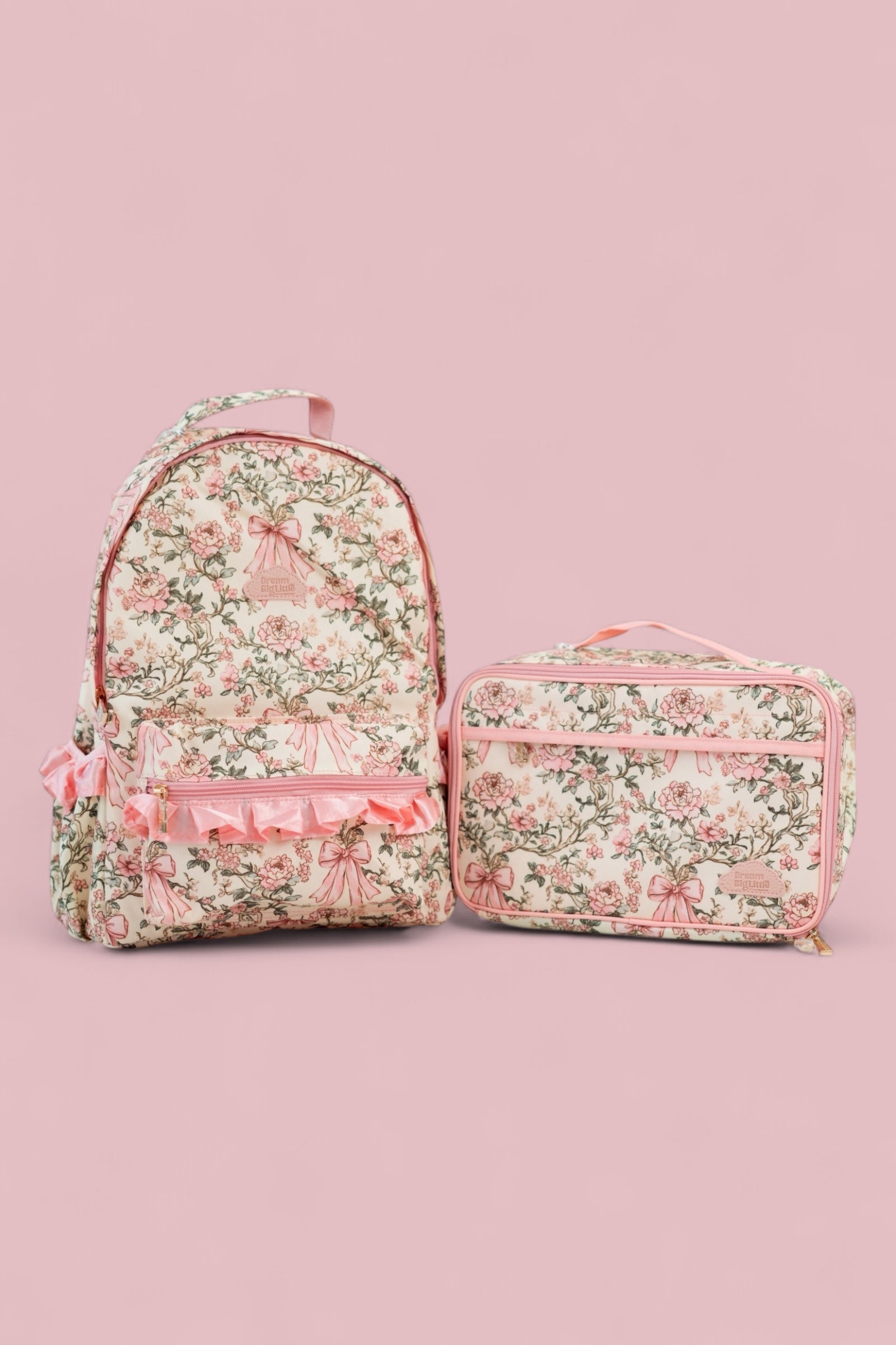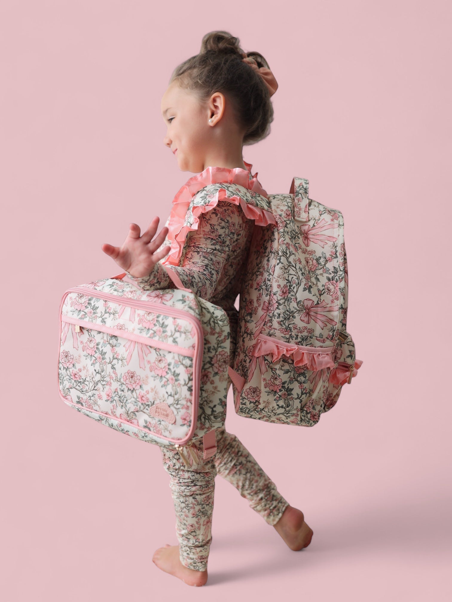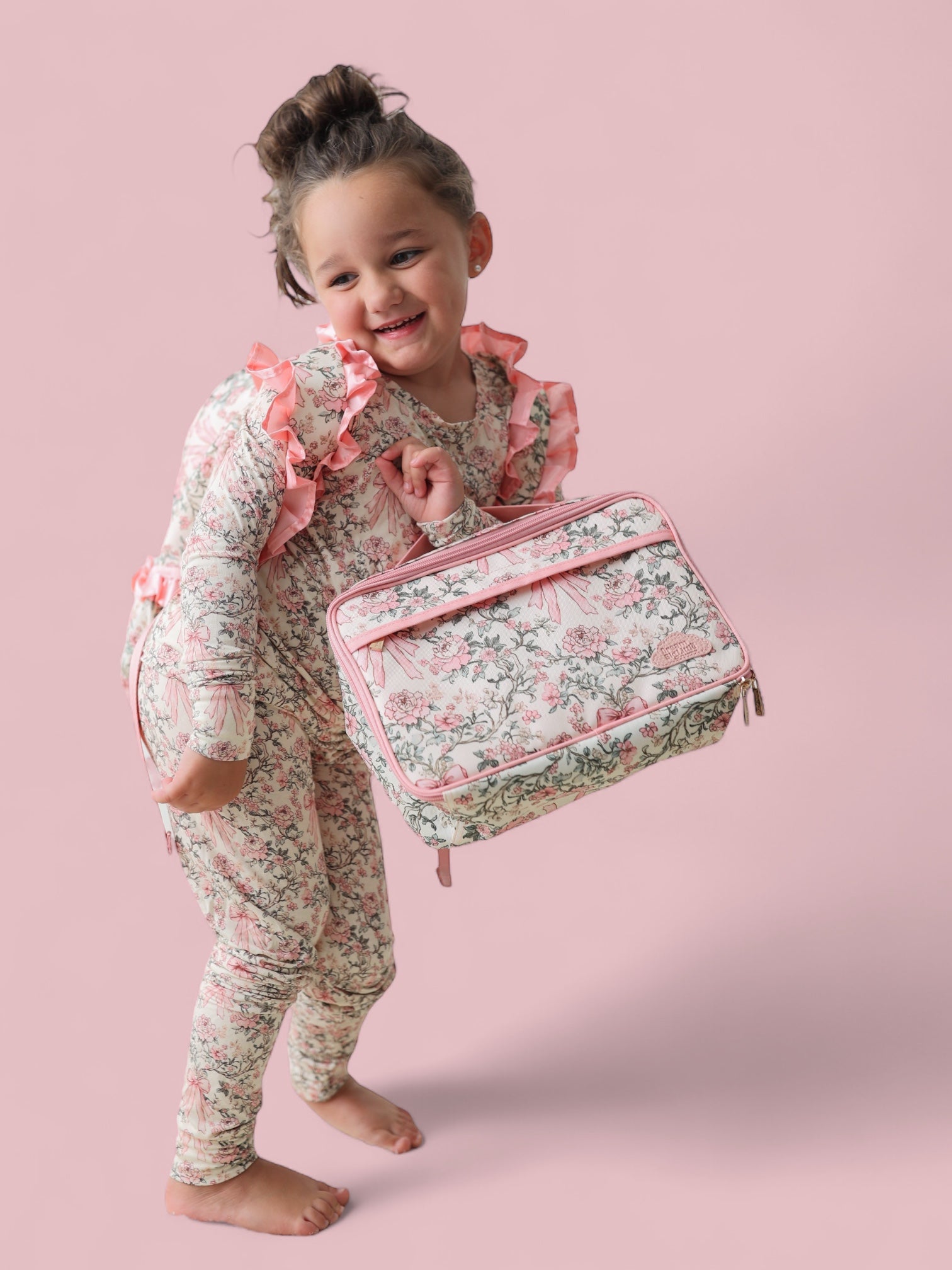 Lunchtime gets a floral upgrade with the Victorian Bloom Dream Lunchbox. Featuring an elegant blush and cream floral pattern with vintage ribbon details, this insulated lunchbox keeps meals fresh while adding a delicate, timeless touch to the table. Durable and easy to carry, it's the perfect pair to the matching backpack!