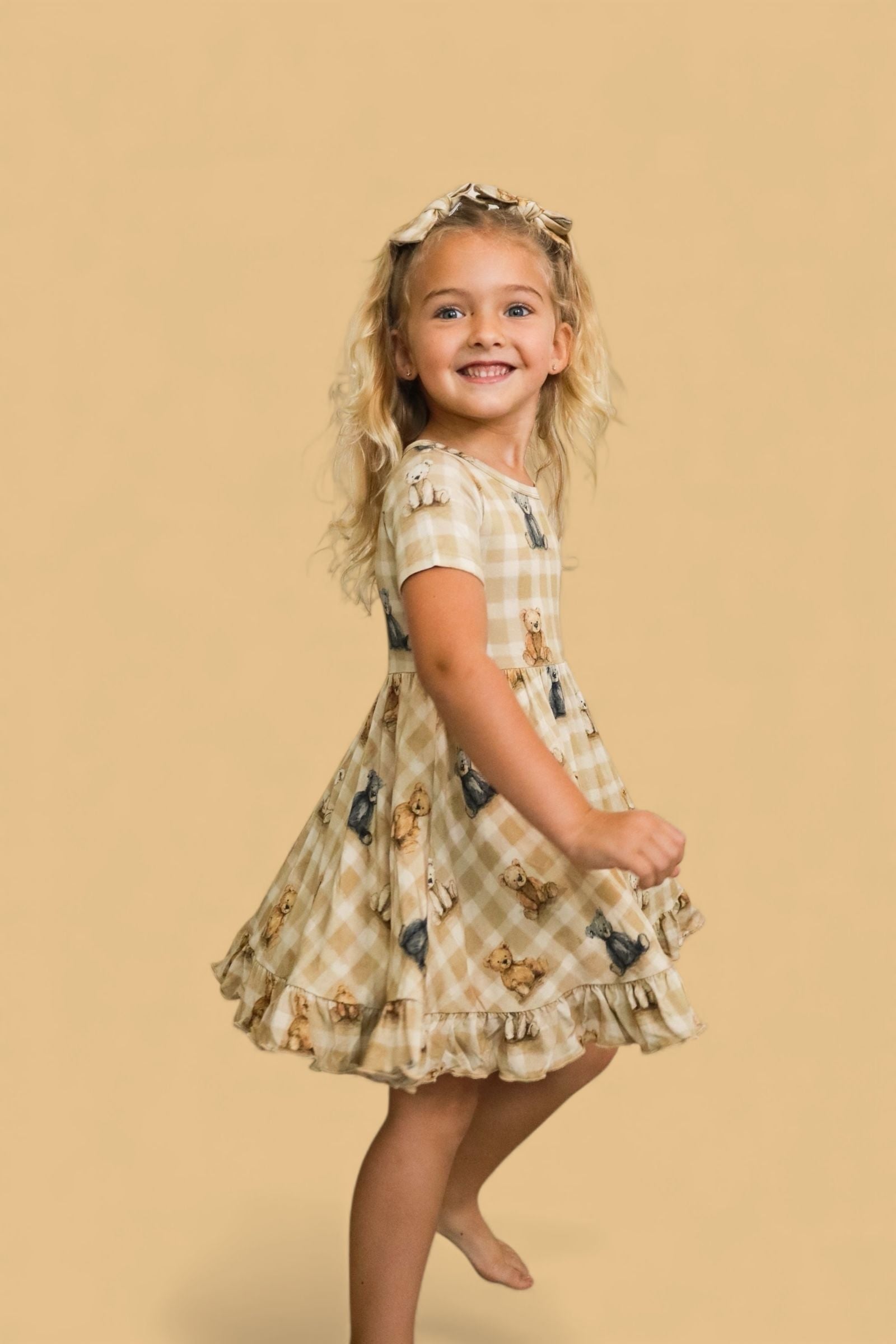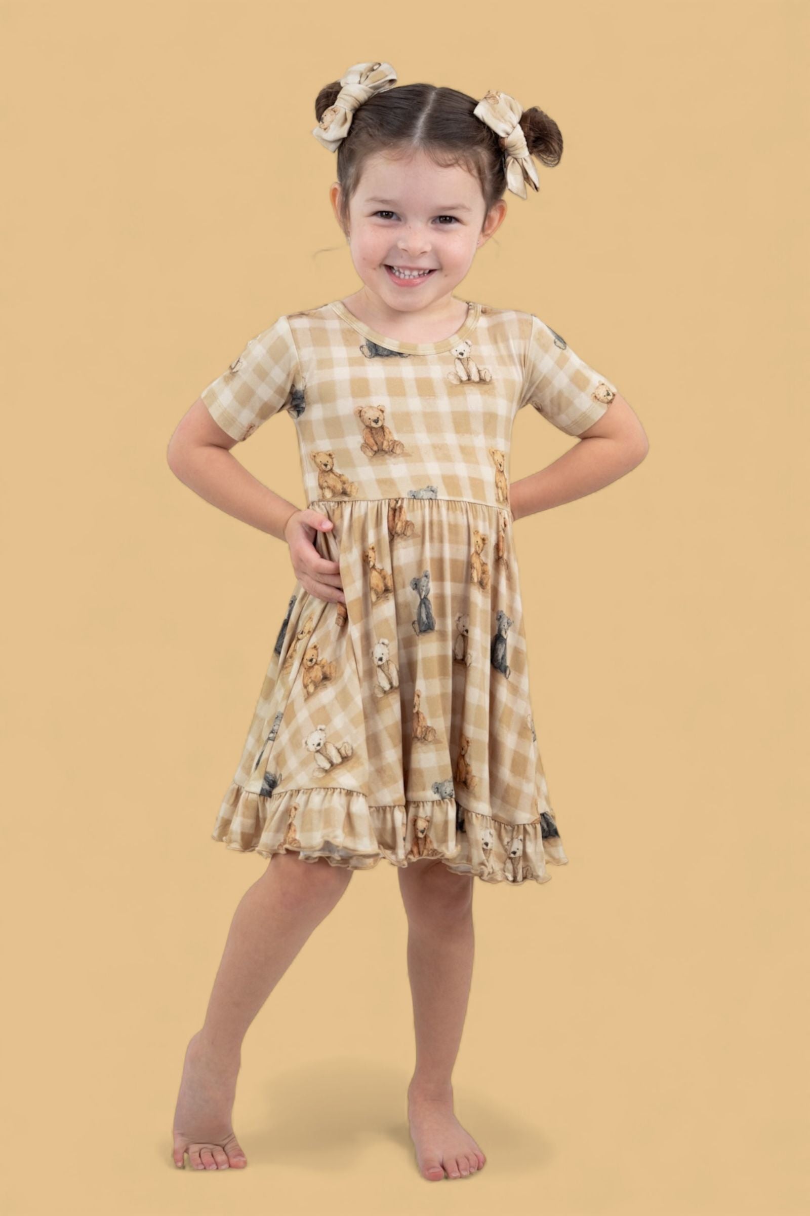 Checks, ruffles, and teddy bear charm! The Teddy Check Dream Ruffle Dress is made from our signature buttery-soft bamboo fabric and features an adorable teddy bear + gingham print. Finished with delicate ruffle details and a flowy fit, it’s perfect for playdates, picture days, or twirling into sweet dreams.