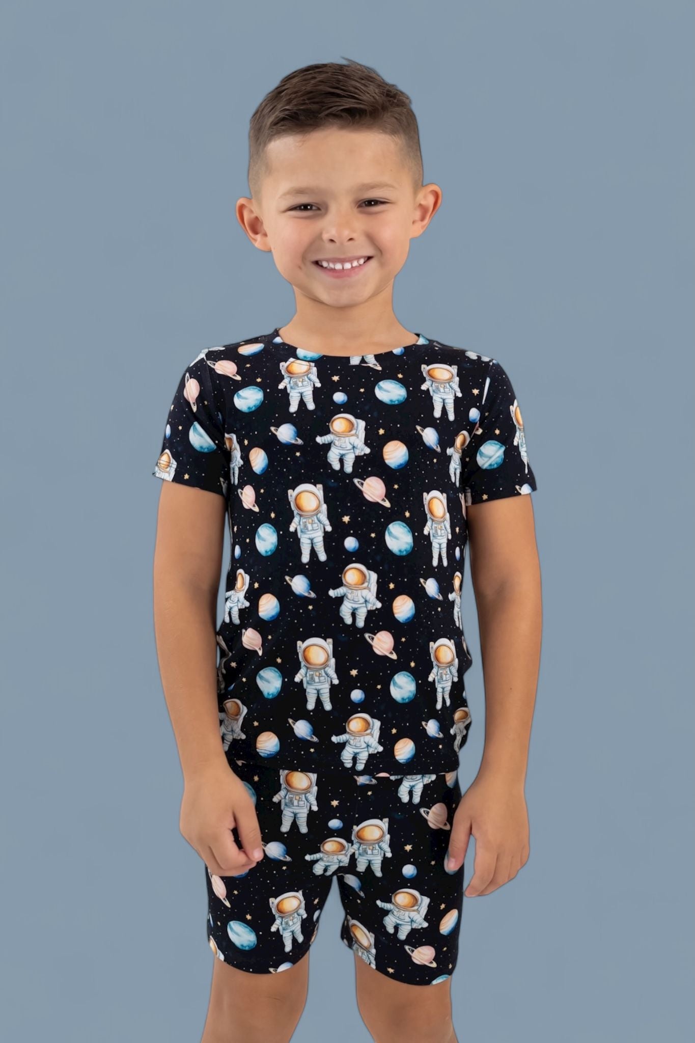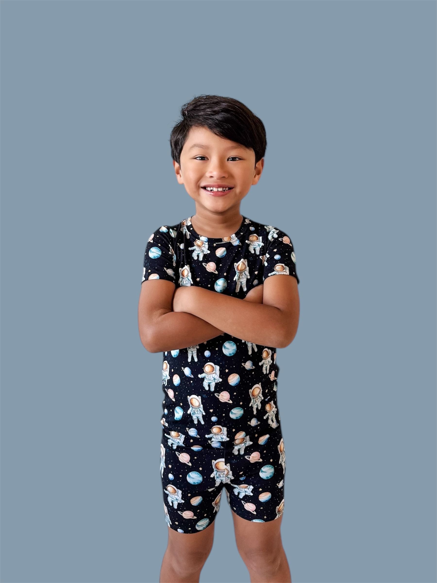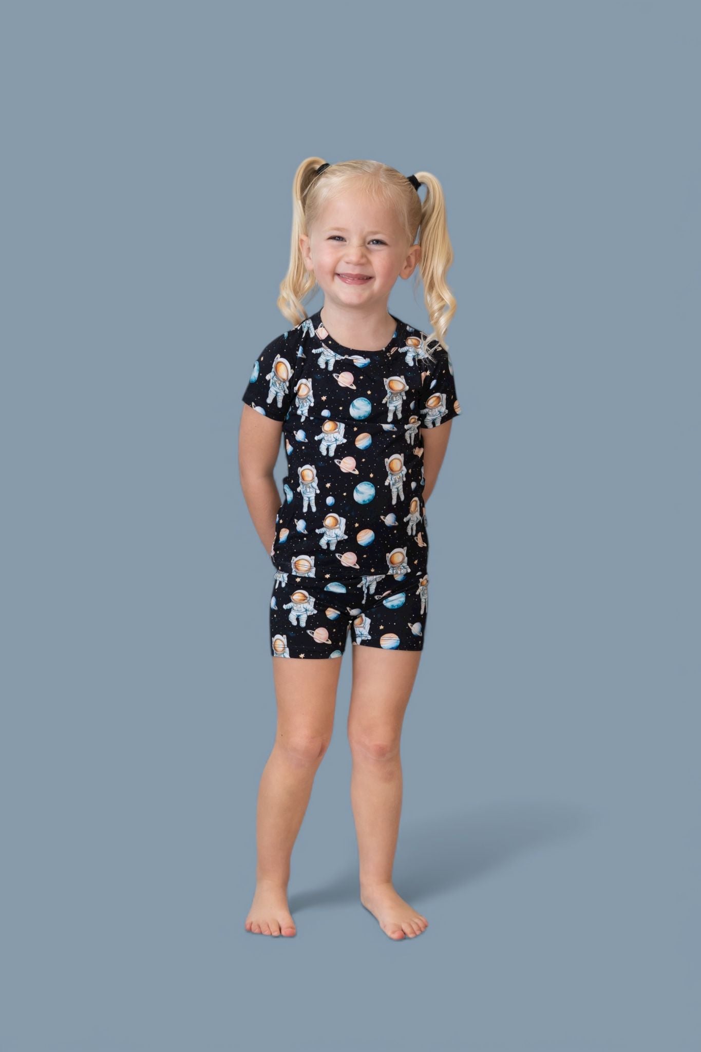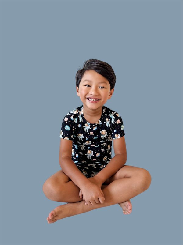 Our Moonwalk Magic Dream Short Set is made for little ones with big imaginations and a love for all things outer space! 🚀🛸 Featuring a comfy short-sleeve top and matching shorts covered in colorful planets, stars, and adventurous astronauts, this set is perfect for playdates, lounging, or launching into backyard missions. Lightweight, breathable, and full of cosmic charm—it’s a stellar pick for sunny days and starry dreams! 🌞🌌