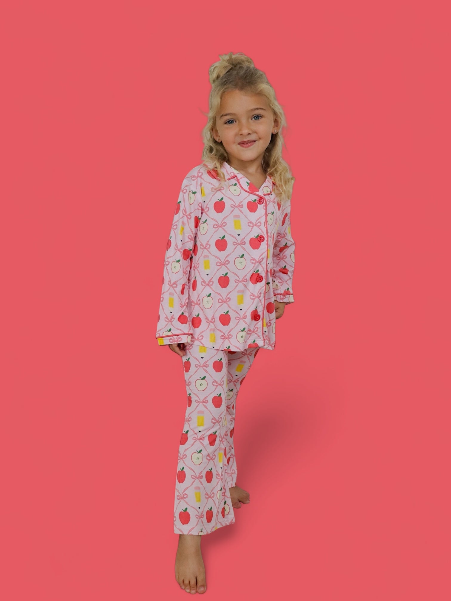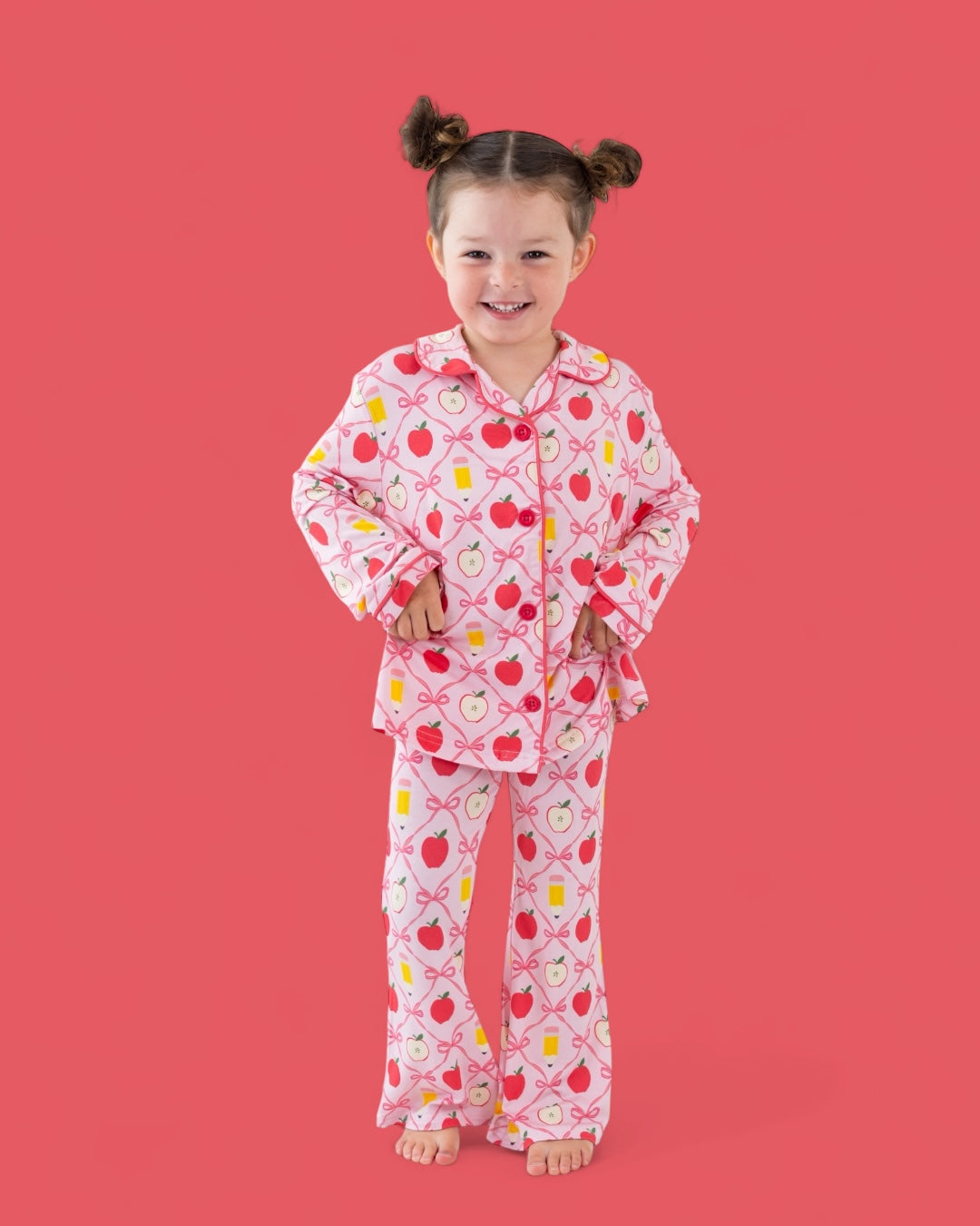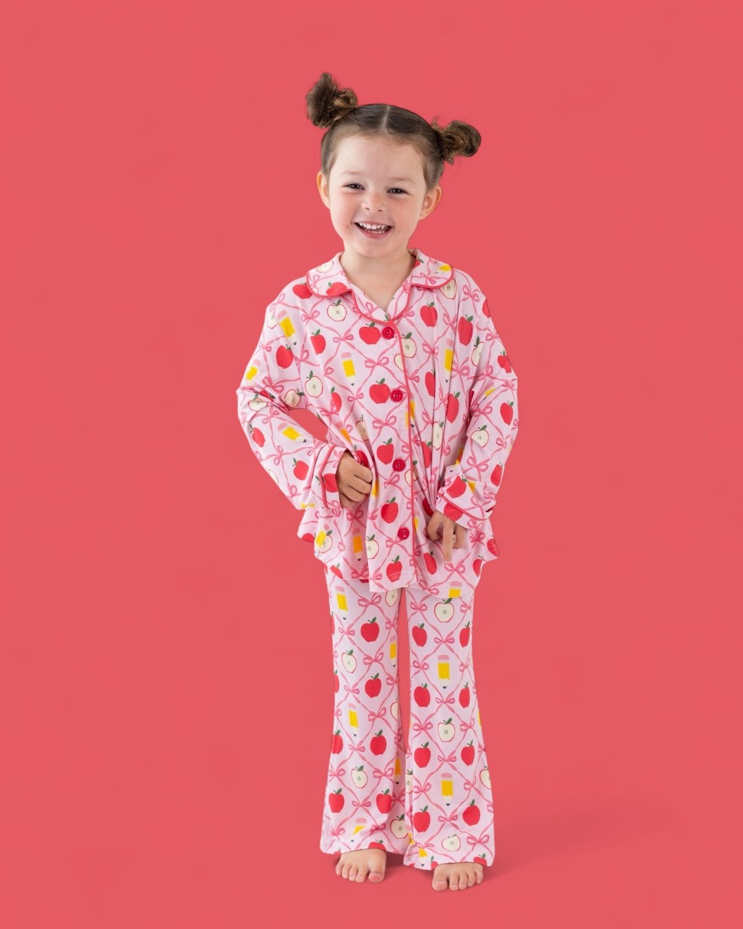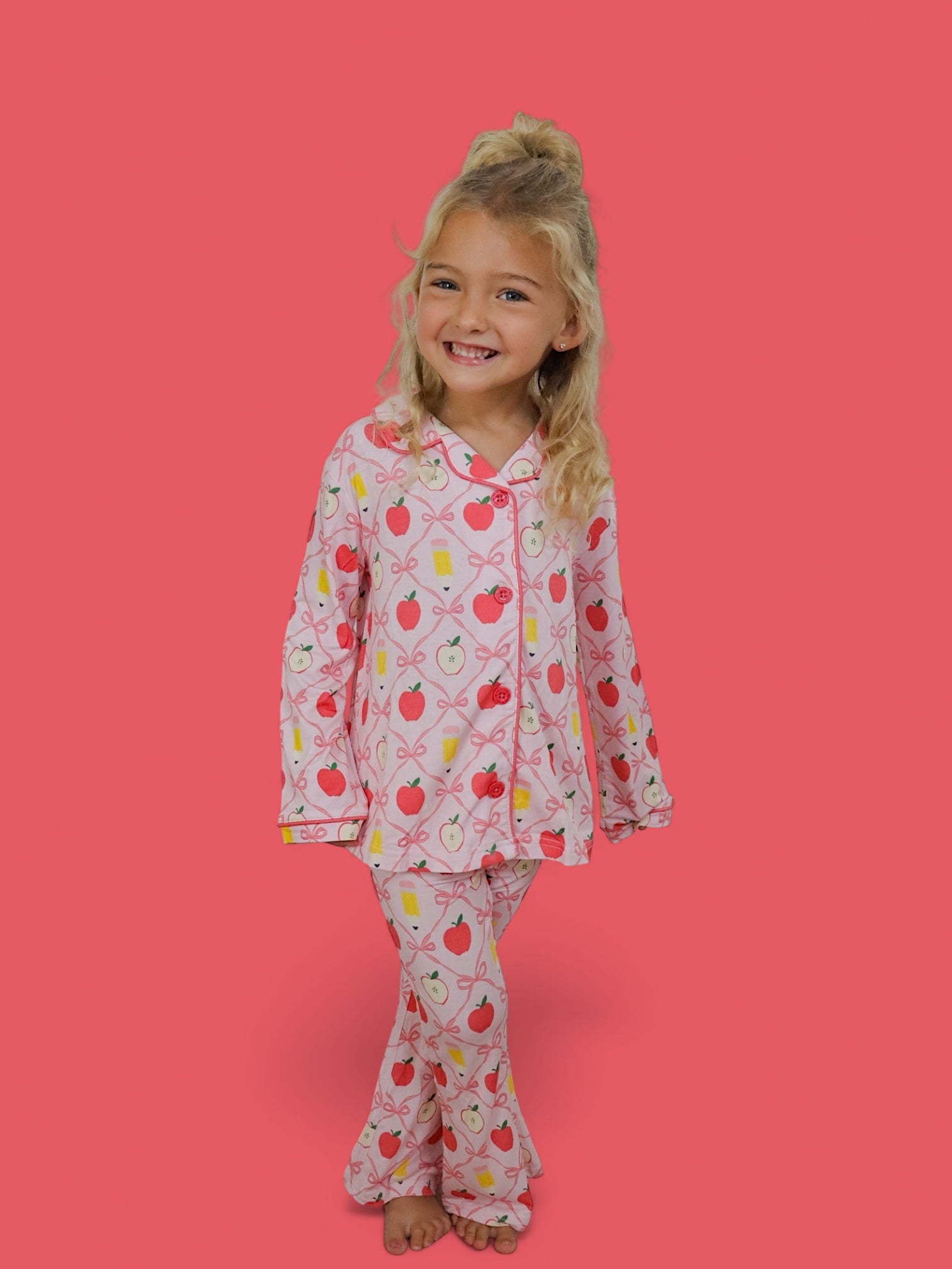 All dressed up and ready to learn (or lounge!) in the Pencils & Bows Dream Girl’s Flare Set! Featuring a charming print of apples, pencils, and sweet pink bows, this buttery-soft set is made for back-to-school magic, homework hangouts, and classroom cuteness. With flowy flare pants and a comfy long sleeve top, it's the perfect outfit for every little star student.