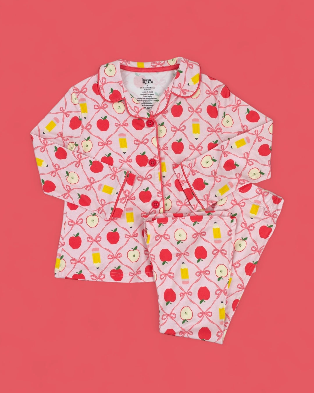 🍎 Adorable back-to-school print with pencils, apples & bows