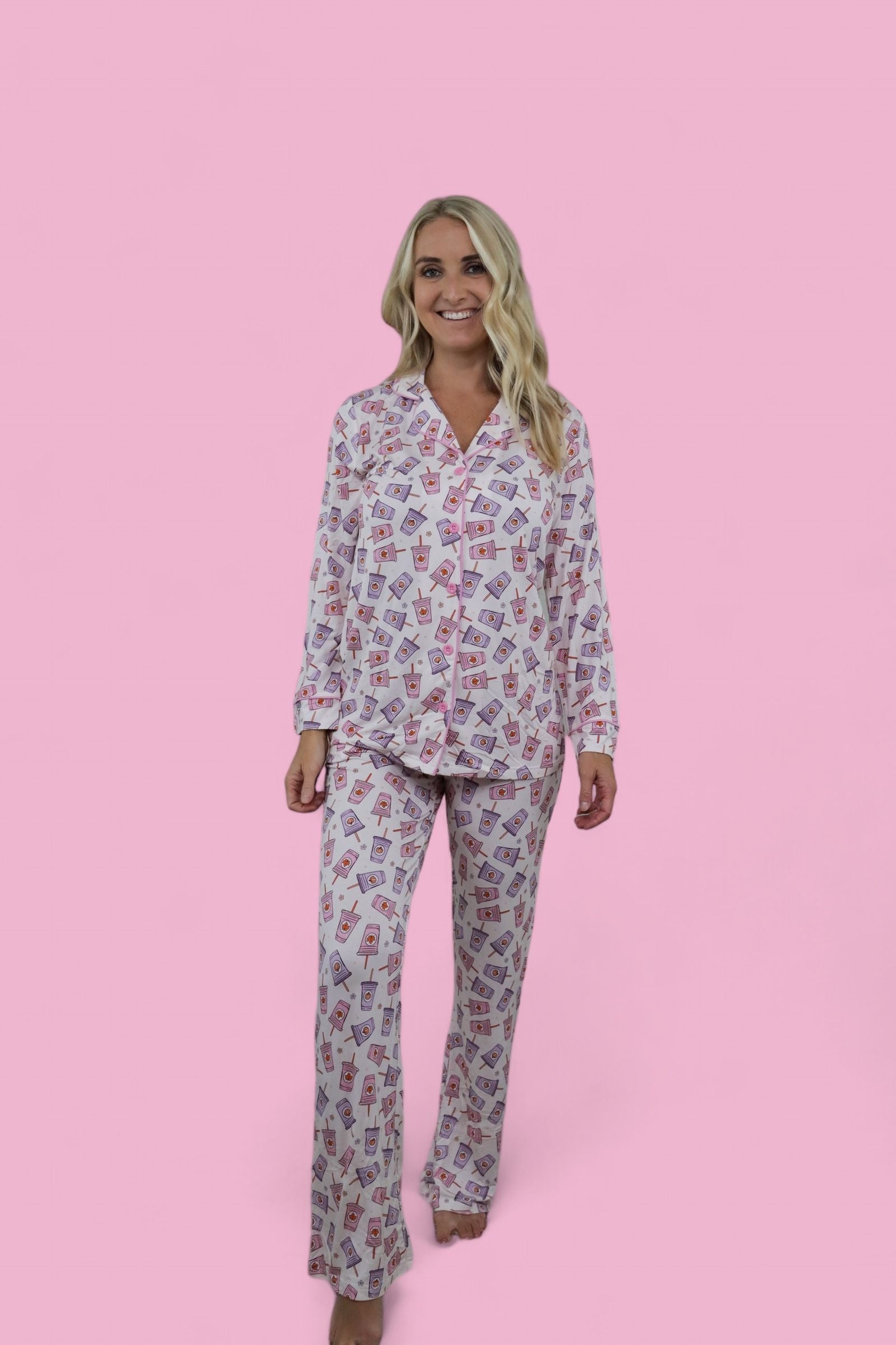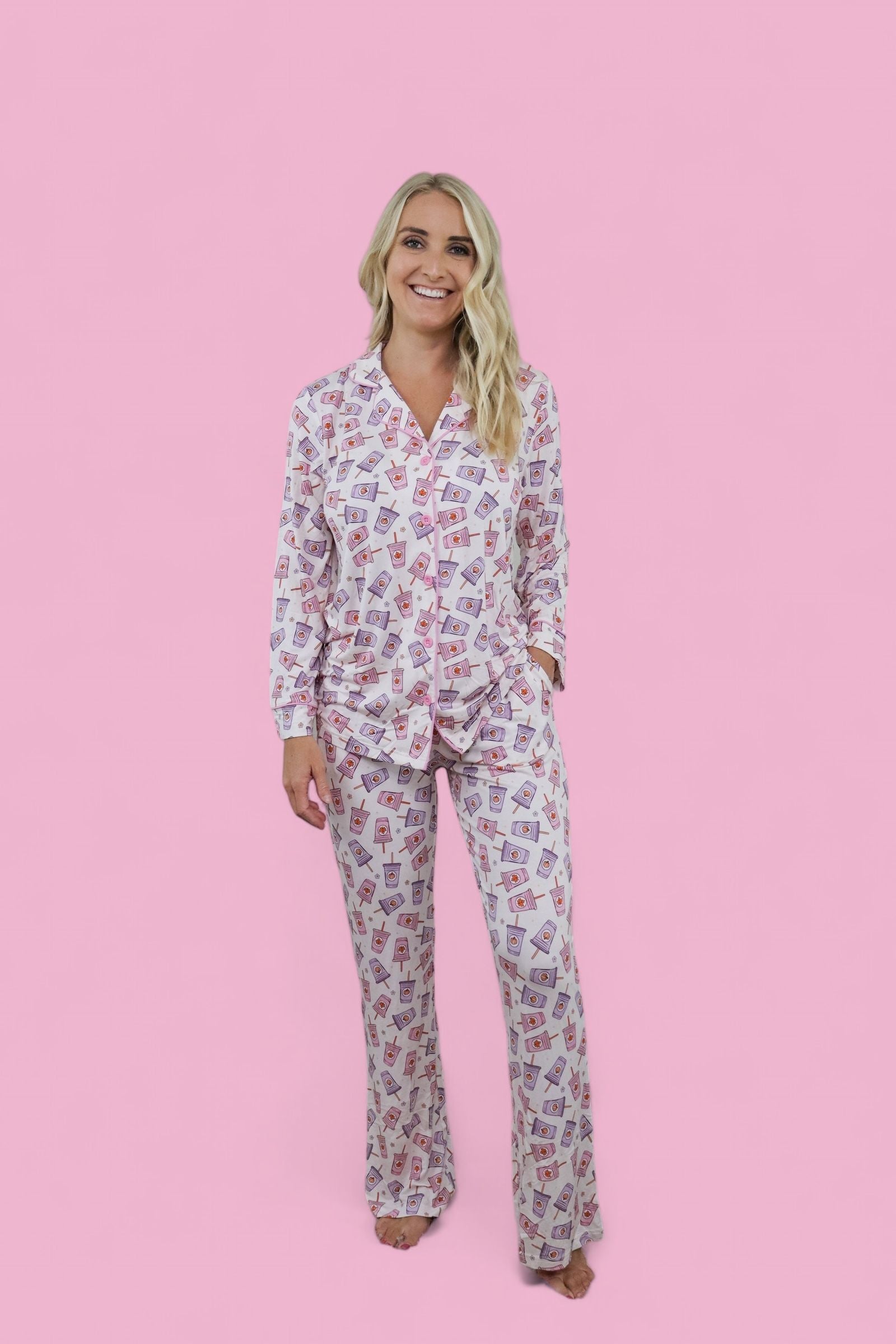 Crafted from our signature buttery-soft bamboo fabric, this set features a button-up top and flattering flare pants that move and stretch with you. Whether you’re sipping your PSL or winding down after bedtime, you’ll feel comfy, cute, and totally cozy. 🍁✨