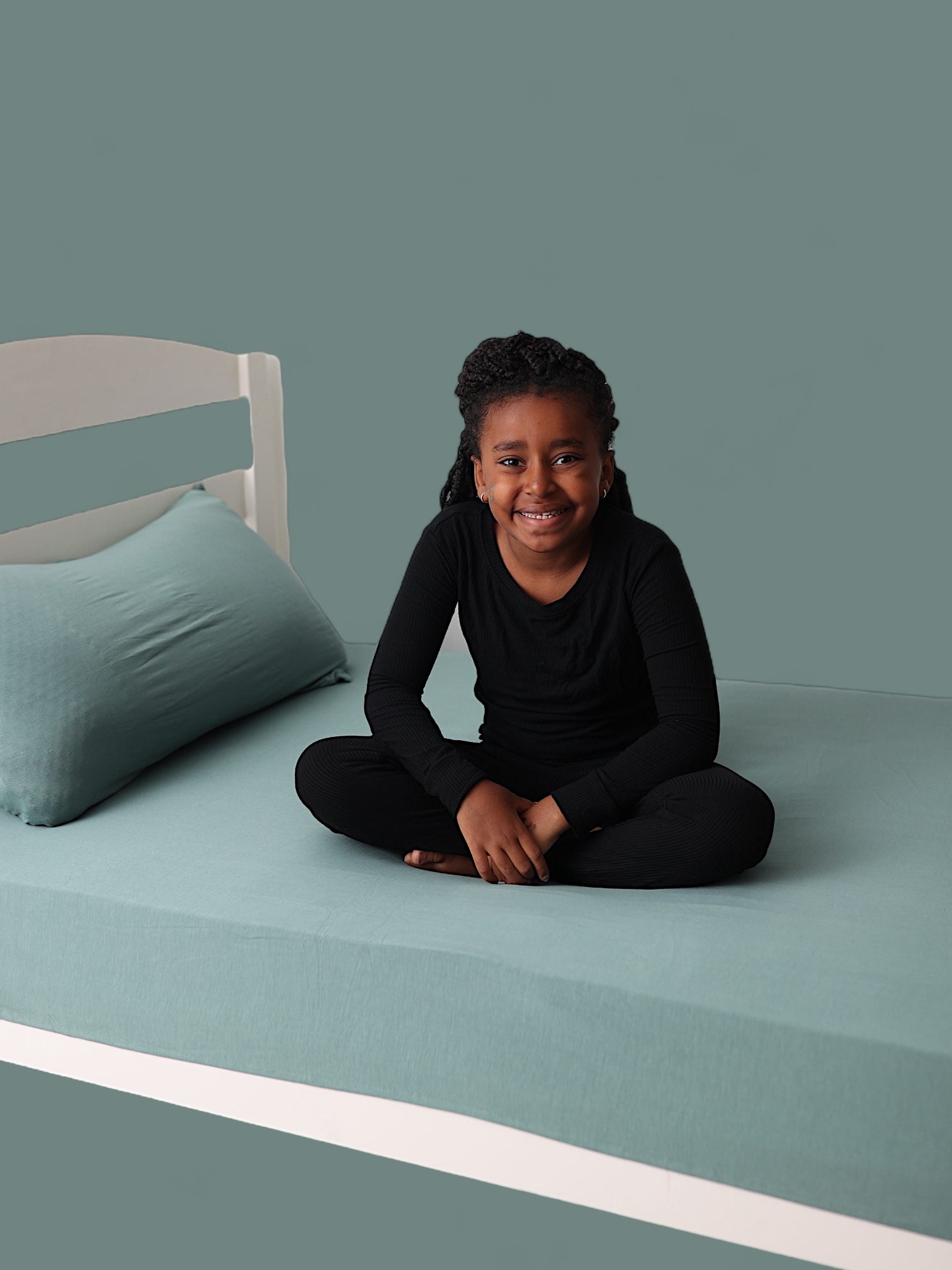 Drift into peaceful slumber with the Sage Dream Twin Sheet Set. Made from our signature buttery-soft fabric and featuring a soothing sage green hue, this set brings calming comfort to any big kid bed. Complete with a fitted sheet, flat sheet, and matching pillowcase, it’s the perfect blend of softness, style, and serenity.