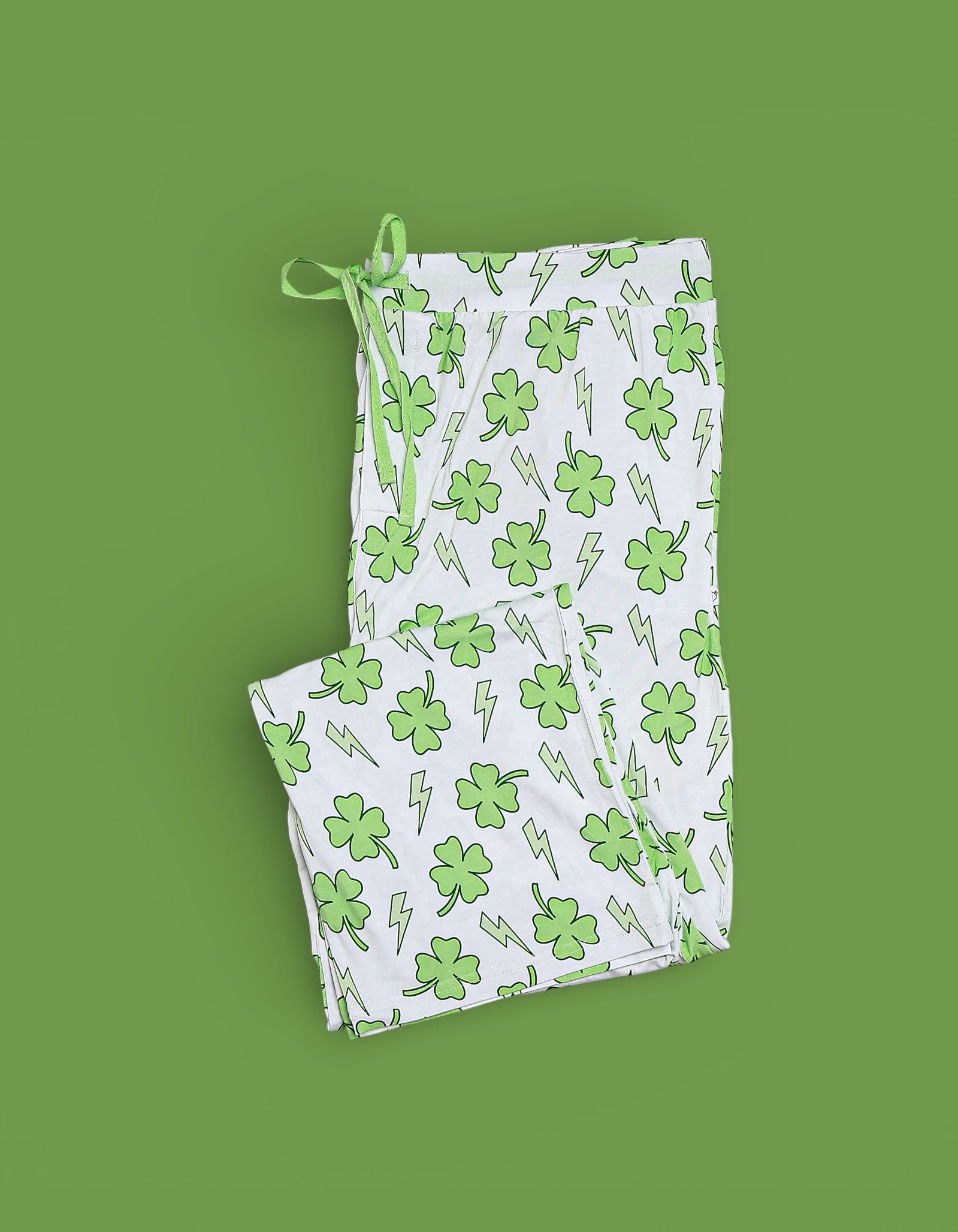 Get comfy with a spark of luck! These men’s pants feature an all-over pattern of bold shamrocks and lightning bolts, creating the perfect mix of festive fun and everyday lounge comfort. With a relaxed, stretchy fit and a soft feel, they’re ideal for St. Patrick’s Day matching, cozy nights in, or adding a lucky twist to your loungewear lineup. 💚