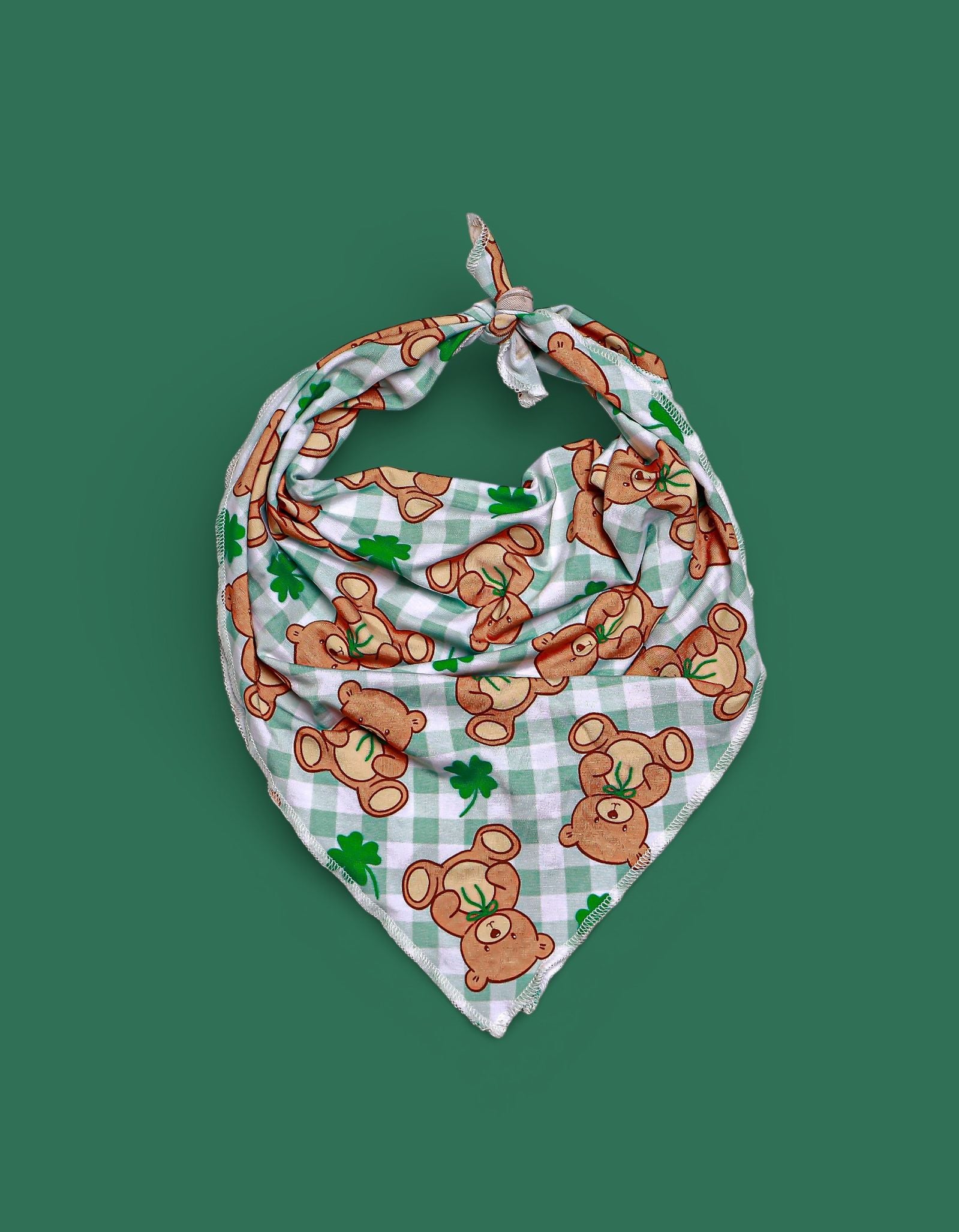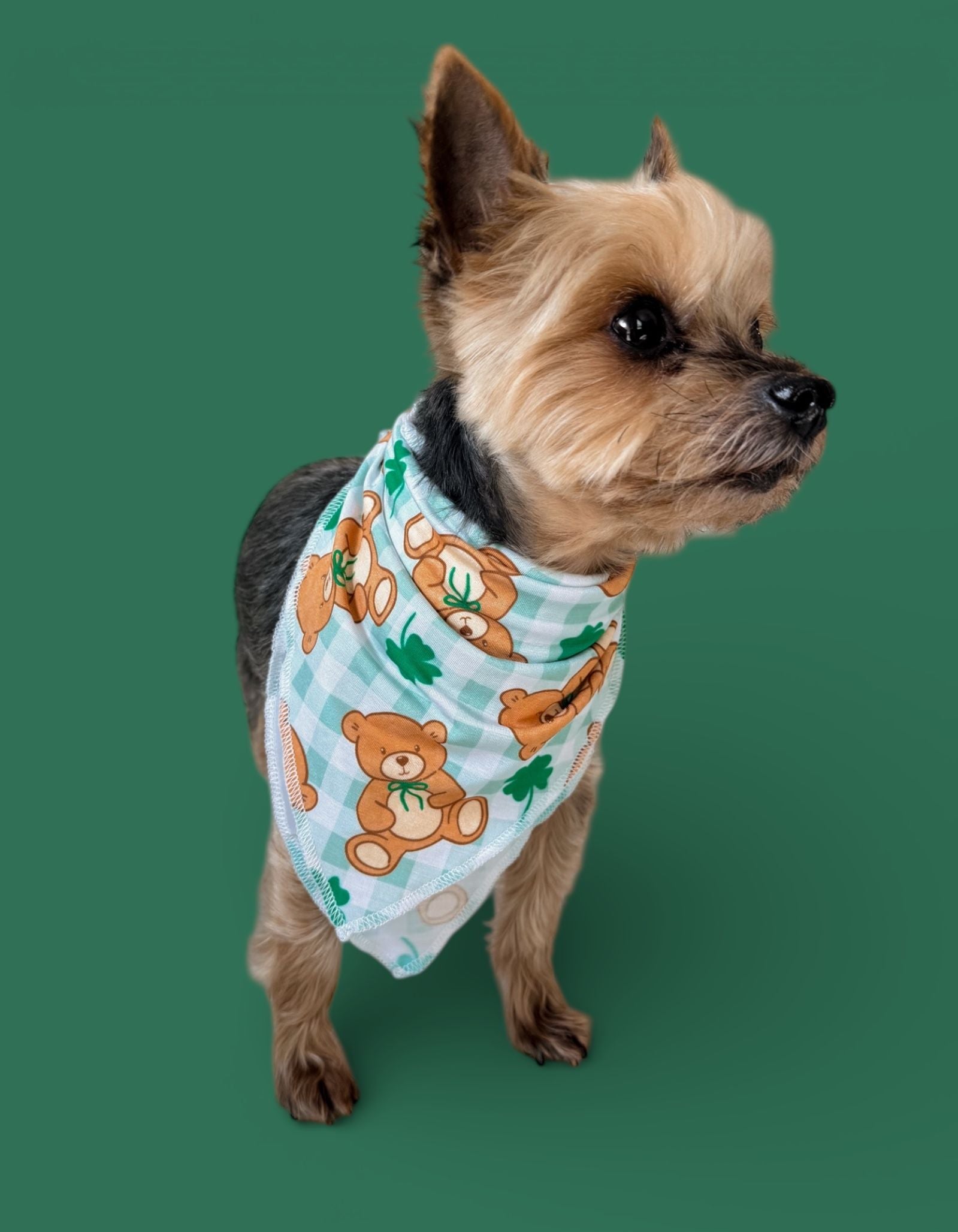Let your pup join in on the lucky charm! This adorable dog bandana features a green gingham print with playful teddy bears and four-leaf clovers, making it the perfect festive accessory for St. Patrick’s Day photos, family matching, and everyday cuteness. Easy to tie on and comfy for your furry friend to wear all day. 💚☘️🐶