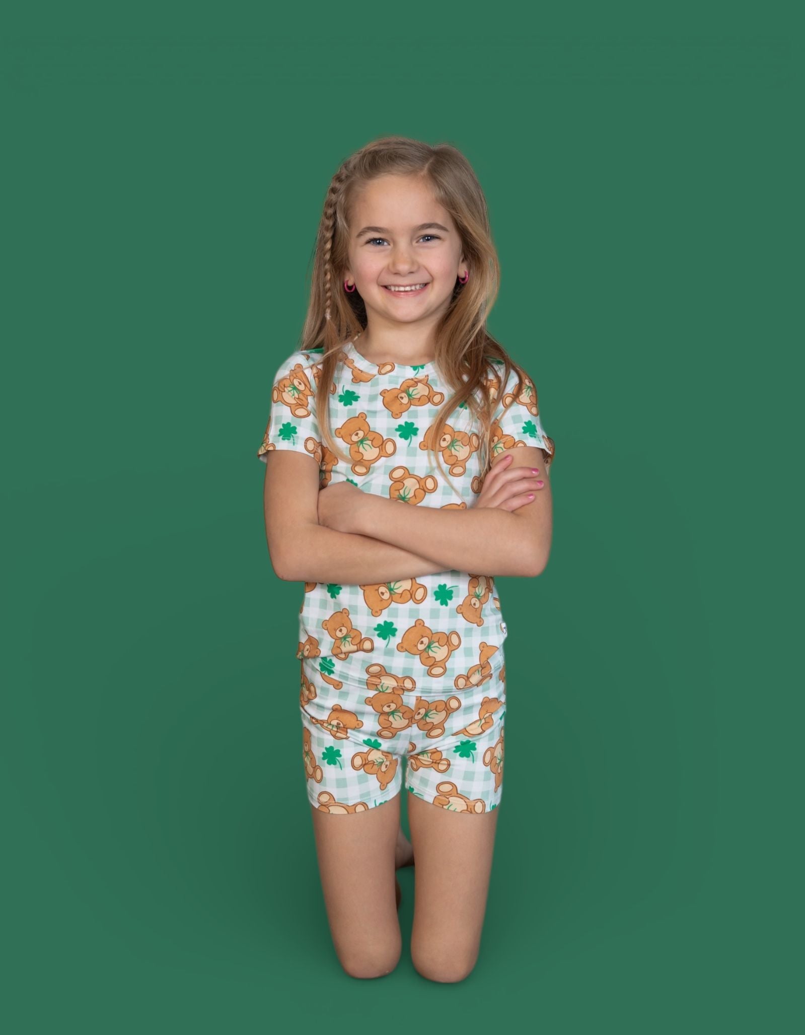 Celebrate a little luck and a lot of cuteness with our Teddy O’Luck Dream Short Set! Featuring a soft green gingham backdrop covered in playful teddy bears and lucky clovers, this cozy two-piece is perfect for St. Patrick’s Day, warm-weather play, and everyday snuggles. 💚☘️