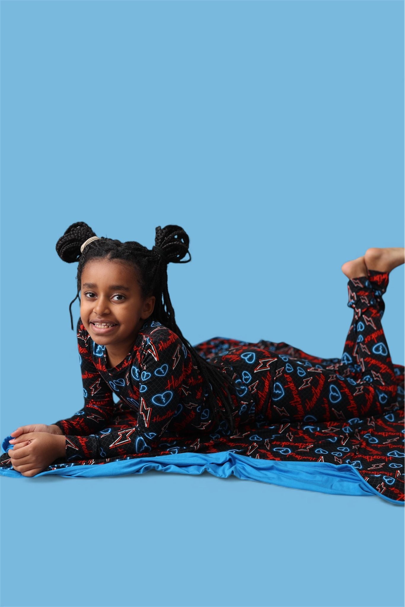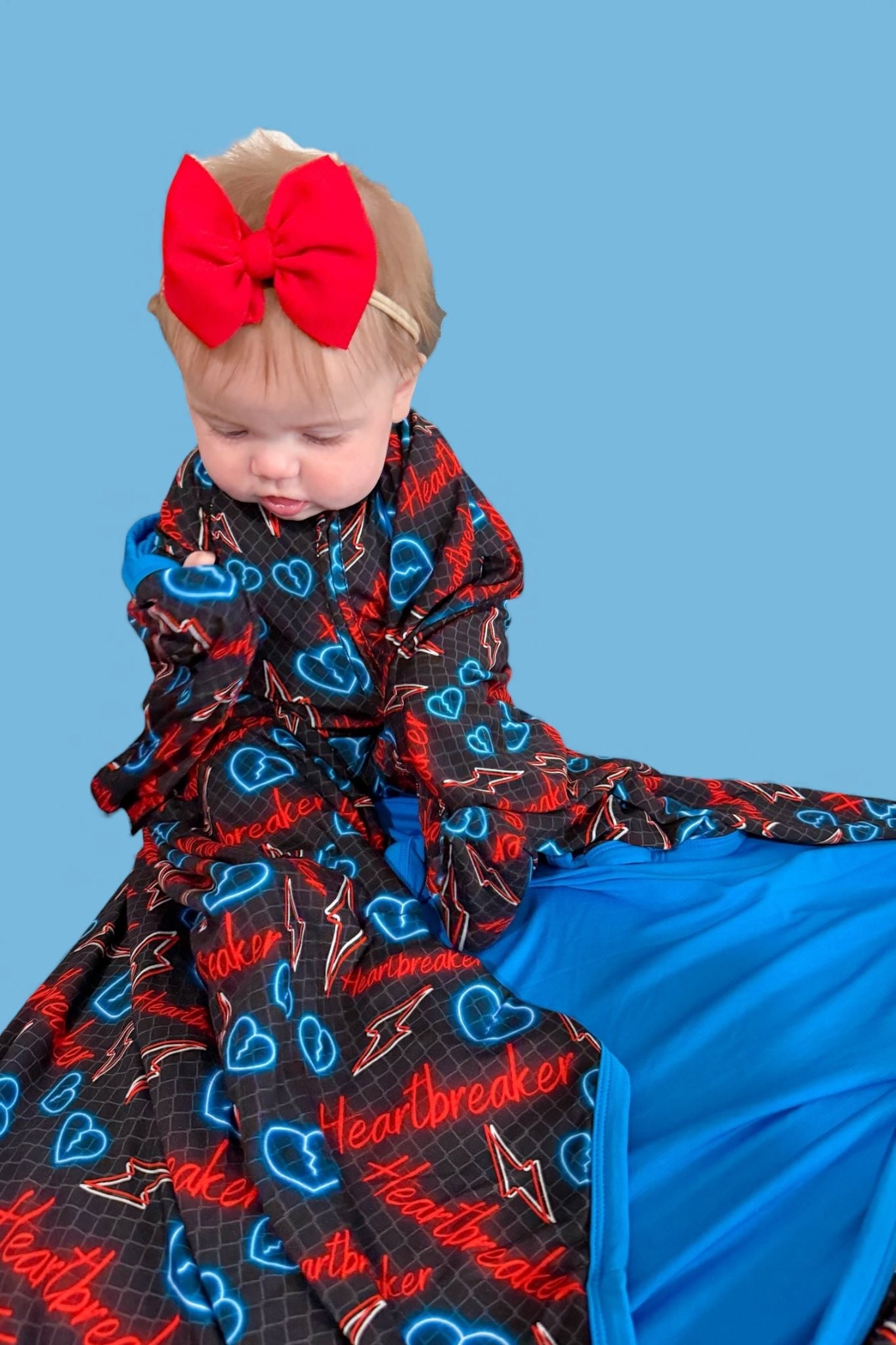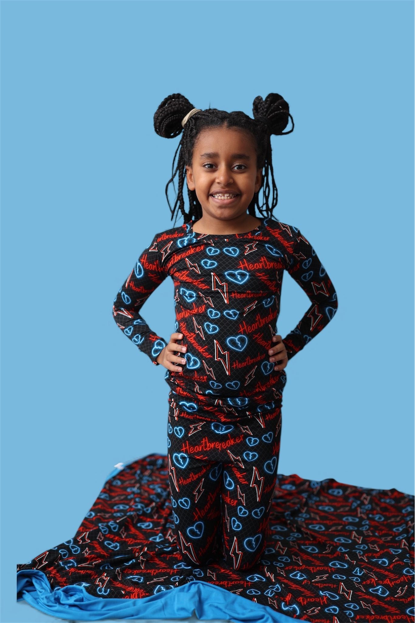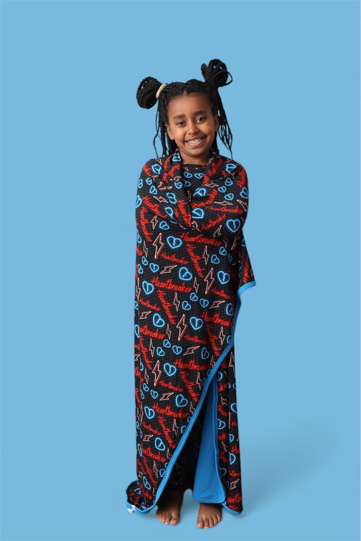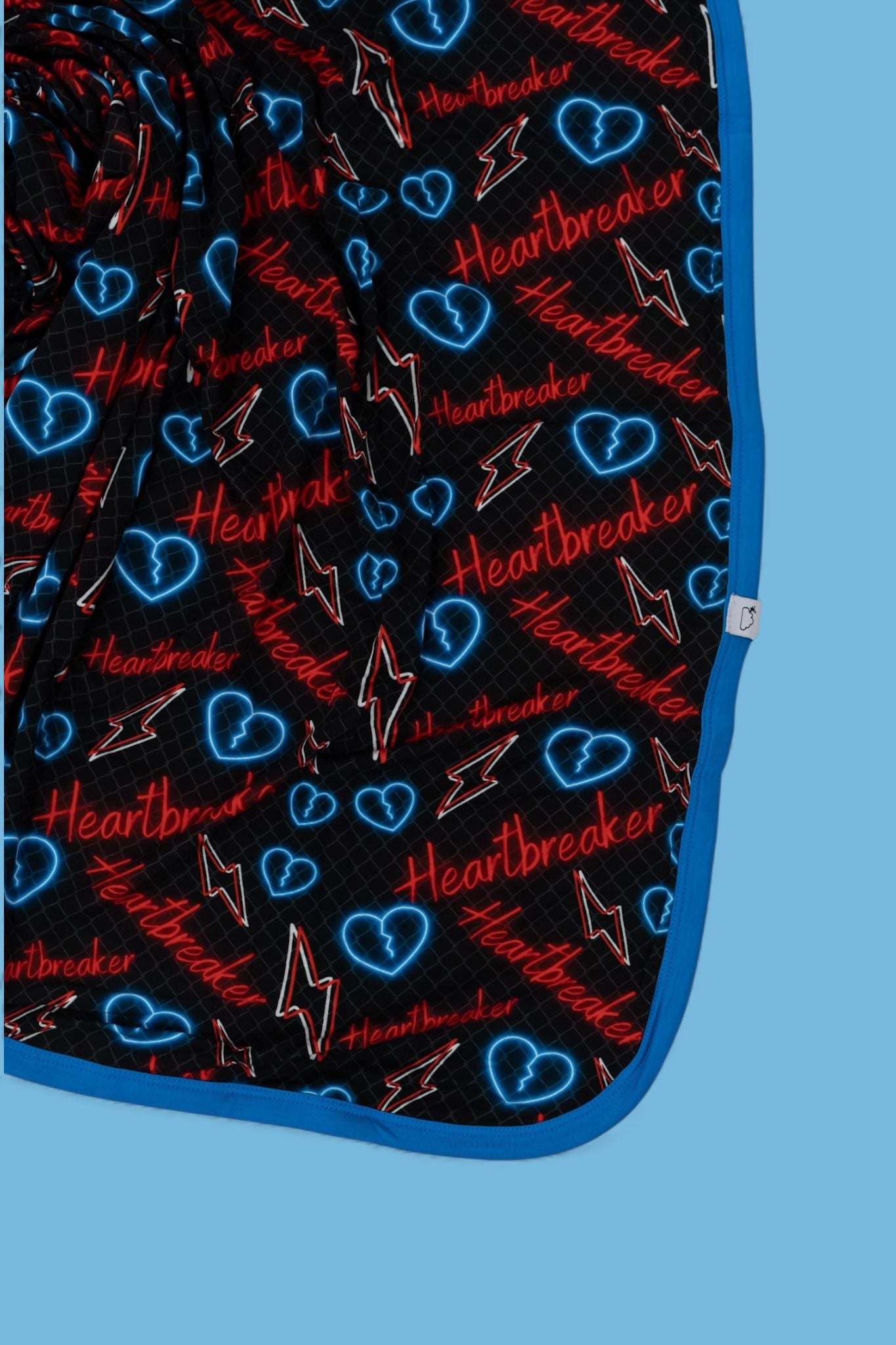 Wrap your little rockstar in cozy style! The Heartbreaker Dream Blanket is crafted from our signature buttery-soft bamboo fabric and features a neon-style print of glowing hearts, lightning bolts, and “Heartbreaker” script. Oversized, breathable, and ultra-soft, it’s perfect for stroller rides, nap time, or cuddles anytime.