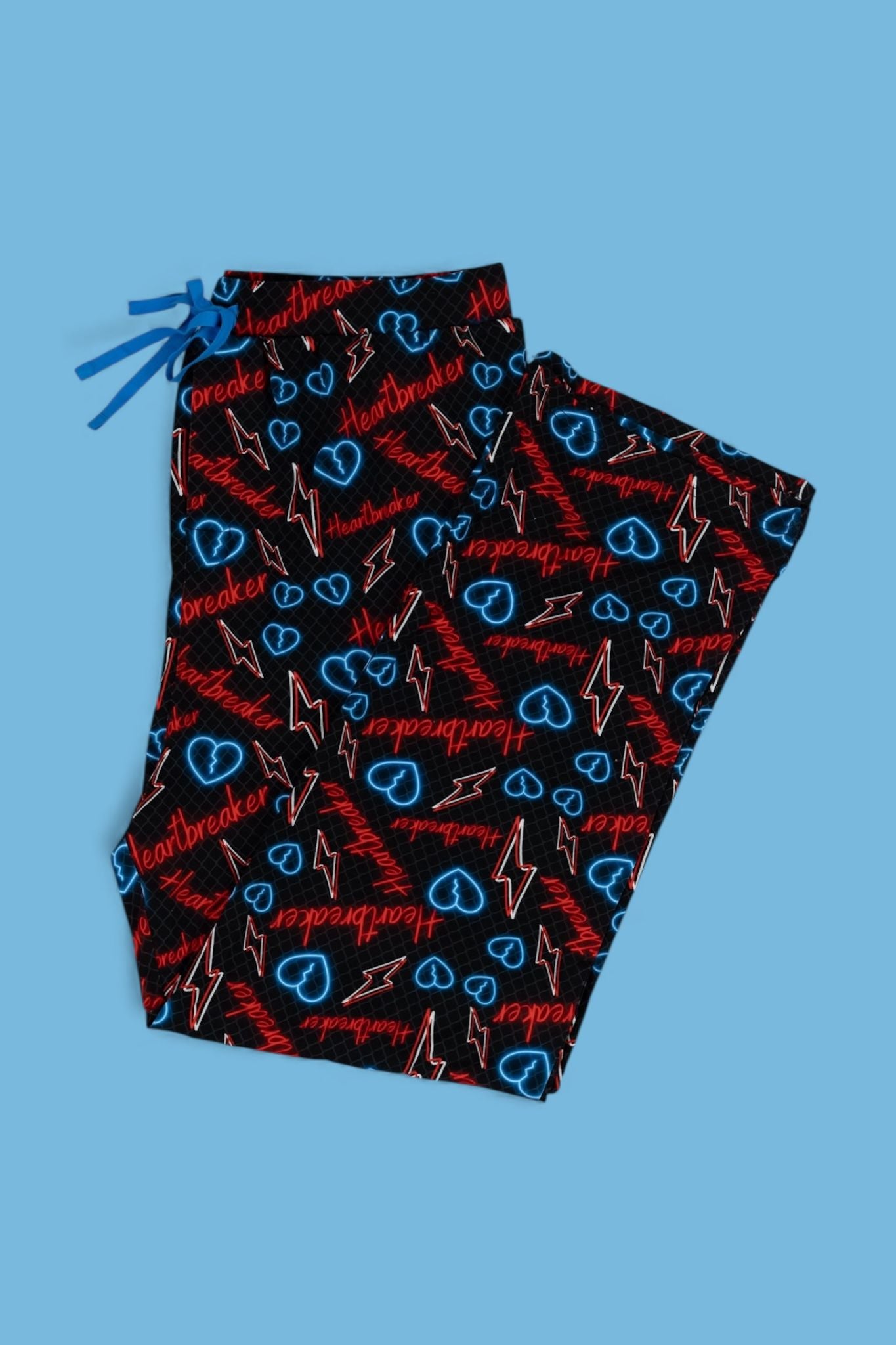 Bring a little rockstar edge to your downtime! The Heartbreaker Dream Men’s Pants are crafted from our signature buttery-soft bamboo fabric and feature a neon-style print of glowing hearts, lightning bolts, and “Heartbreaker” script. Designed with a stretchy waistband, adjustable drawstring, and relaxed fit, they’re perfect for lounging, sleeping, or cheering on your little heartbreaker.