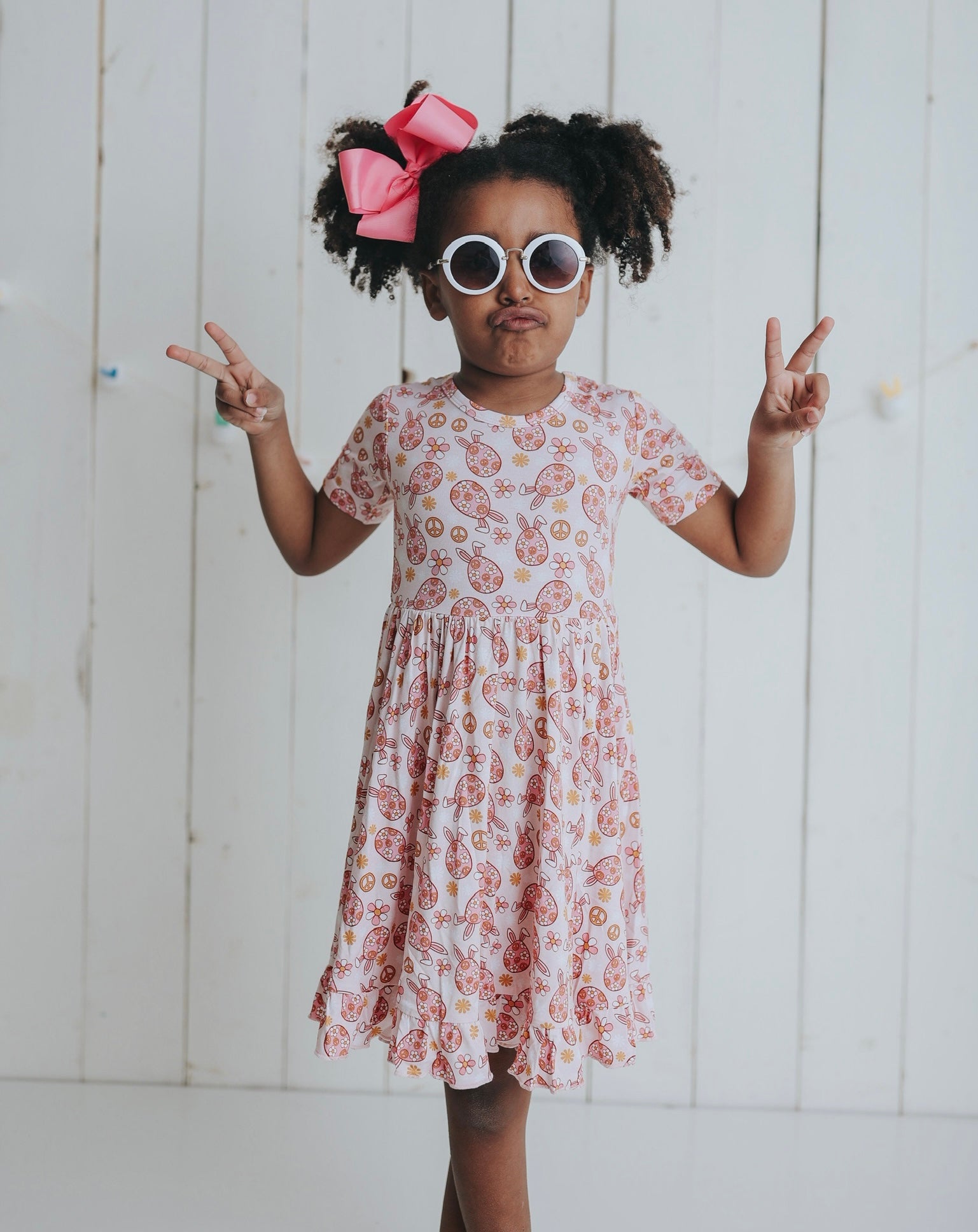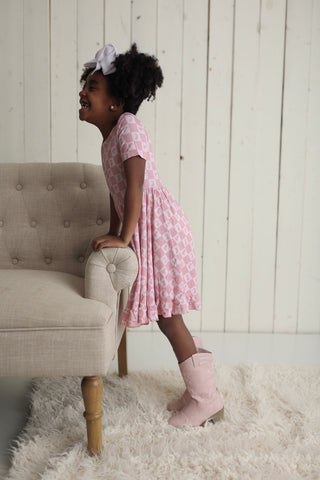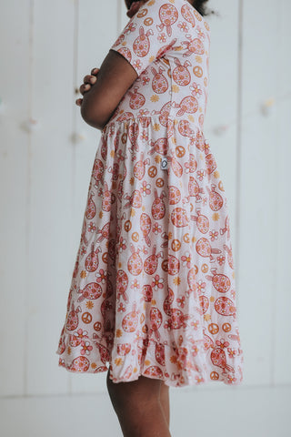 "DON'T WORRY BE HOPPY" on trend print! Twirl into Easter with our Dream ruffle dress. Made from the softest and most breathable seasonal bamboo viscose material, your babe won't want to take this off! Designed for all the love and extra play!
