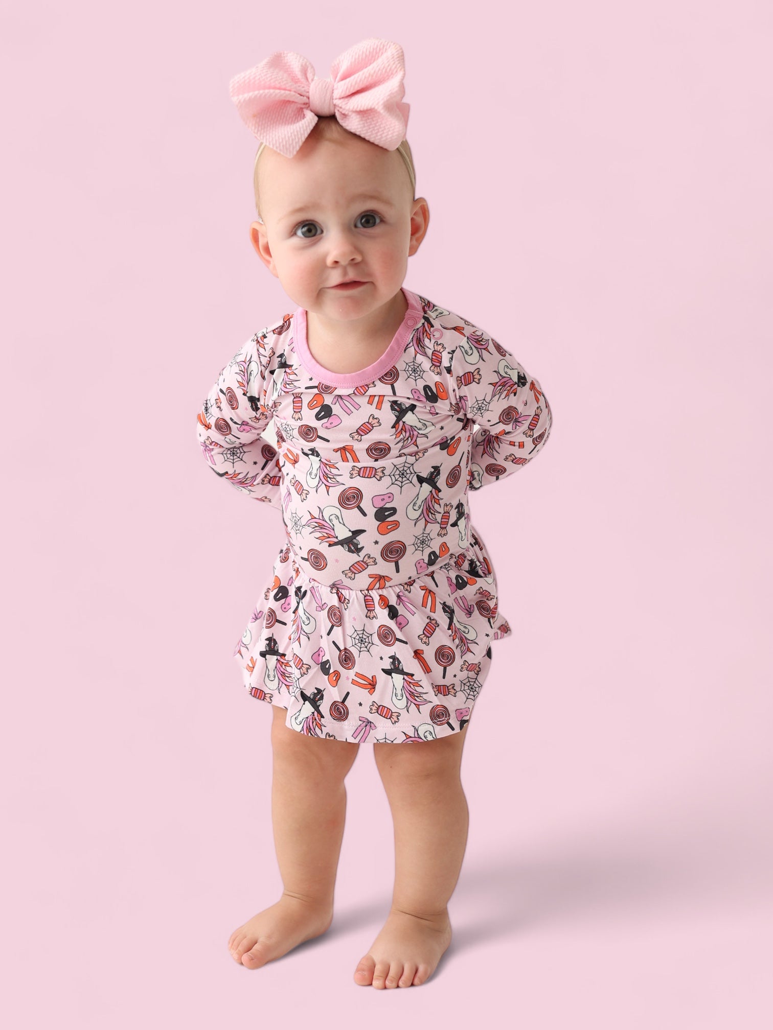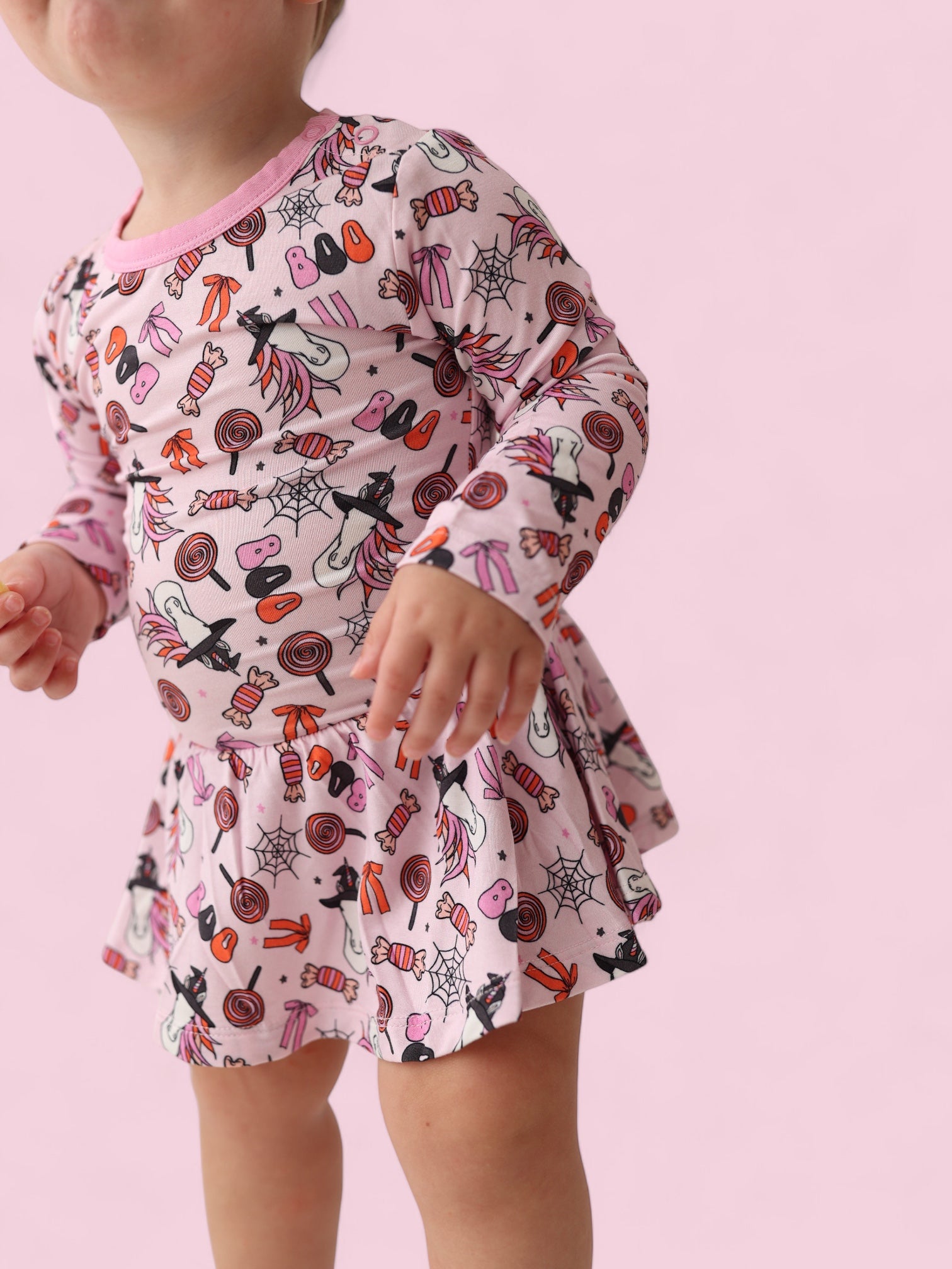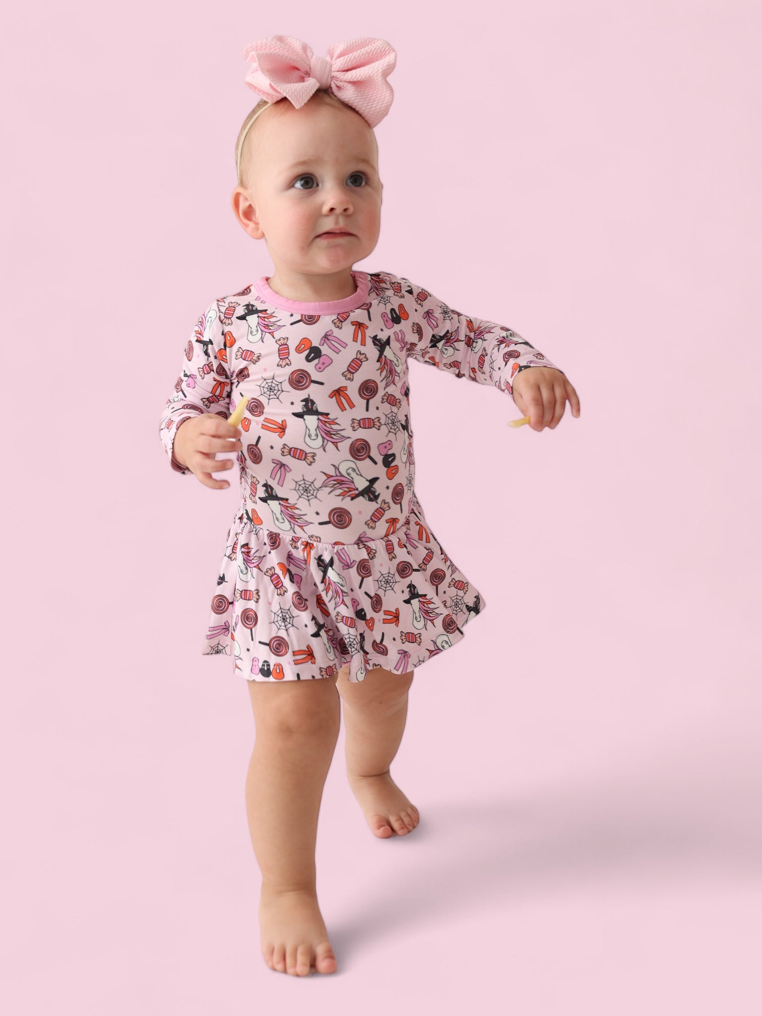 Bring out the magic and spooky fun in your little one with our exclusive Blakelys Magical Halloween Dream Bodysuit Dress! Perfect for Halloween lovers, this dress combines the comfort of a bodysuit with the style of a dress. Get ready for some adorable Halloween adventures!