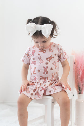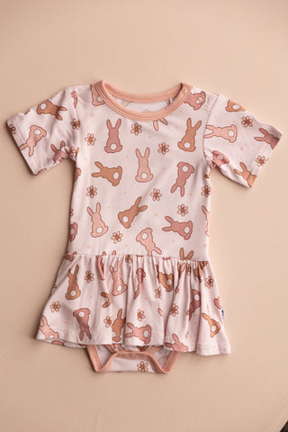 Get your little one ready for Easter with our Hoppy Easter Dream Bodysuit Dress! With soft neural pinks and a cute bunny design, this dress will be the talk of the egg hunt. Perfect for baby girls, it's the ultimate Easter outfit!