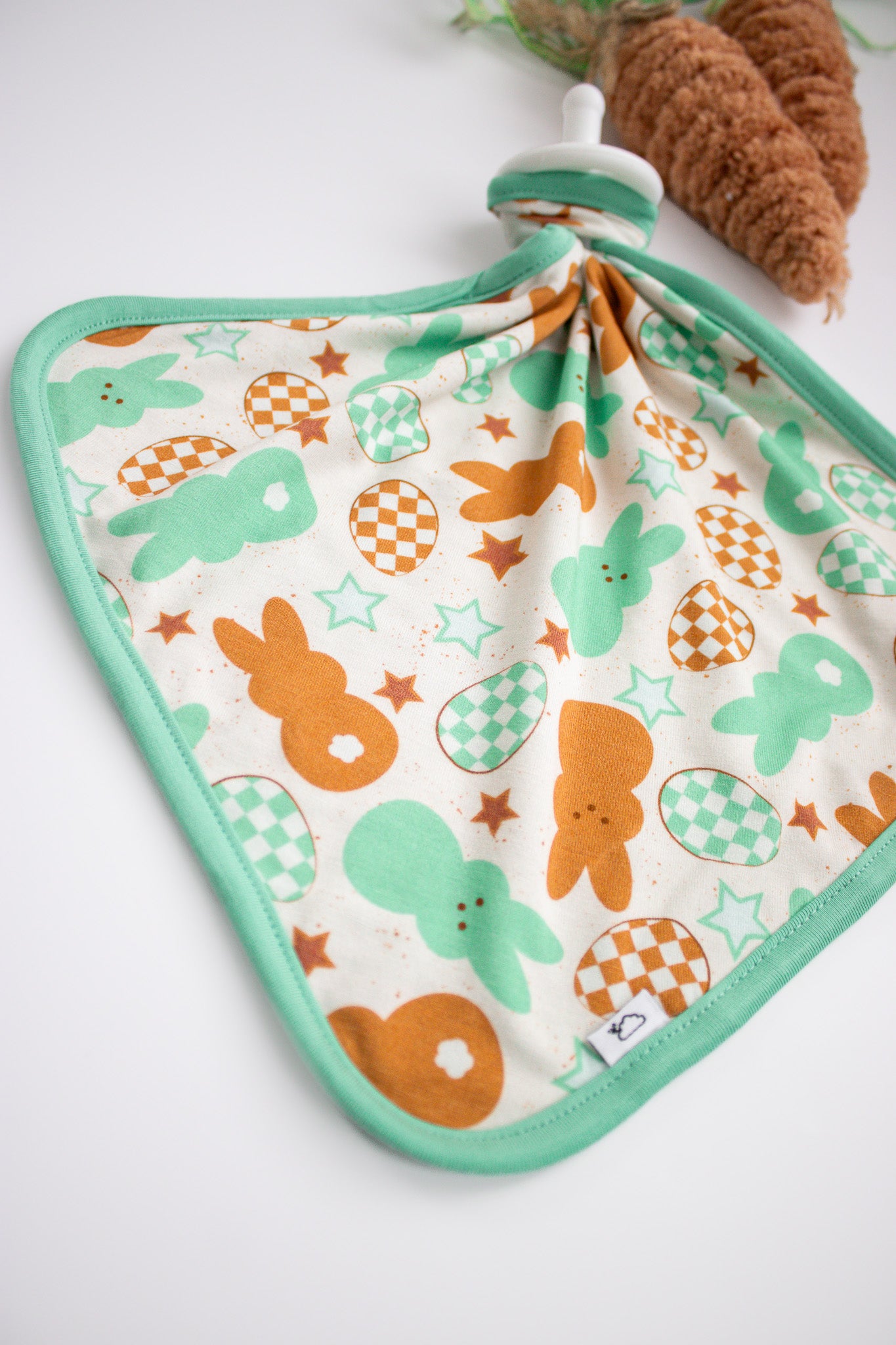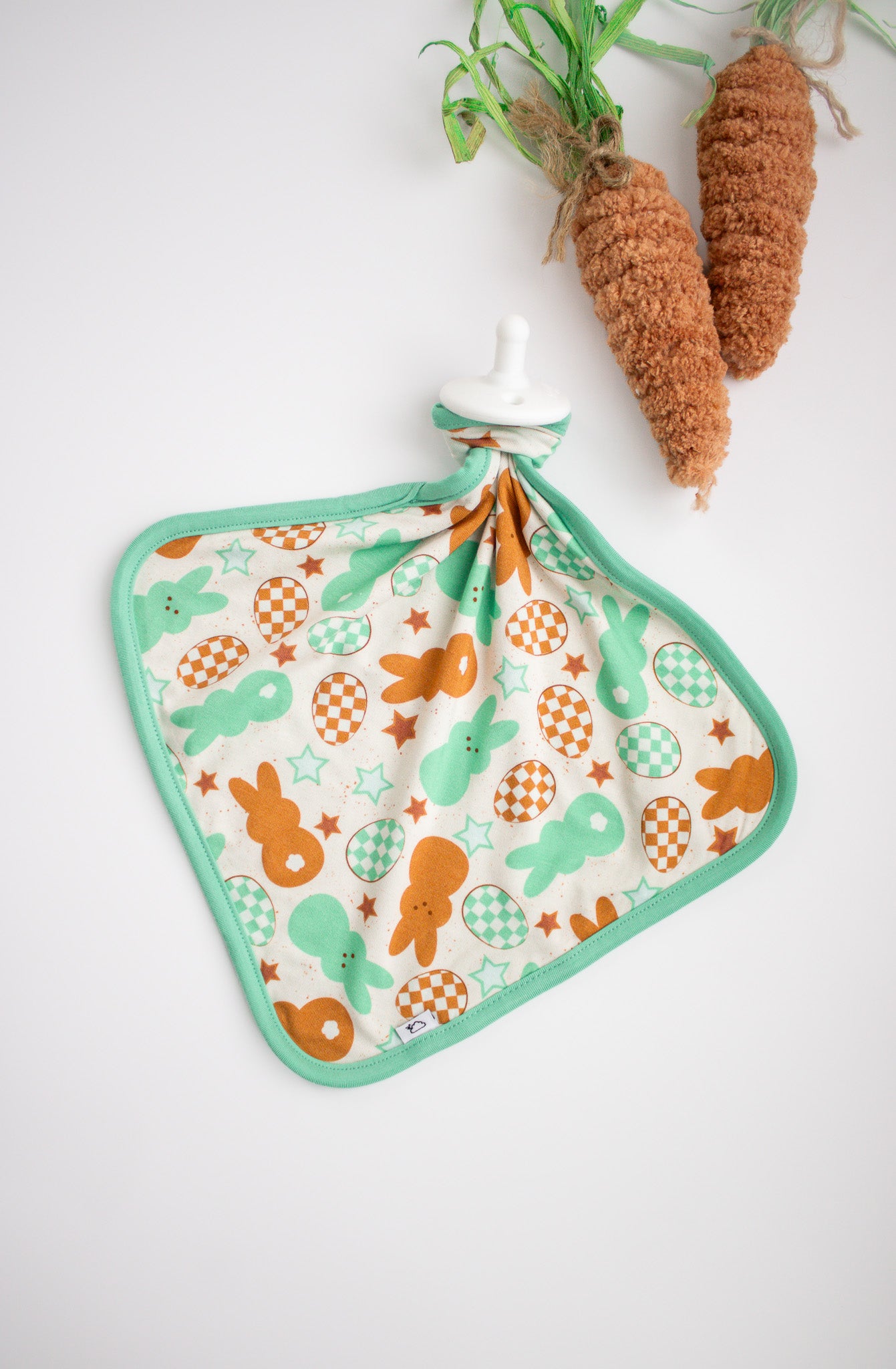 Our What's Up Peeps Dream Lovey is the softest, cutest lovey you've ever seen! This lovey doubles as a pacifier holder and features adorable Easter Peeps and eggs. It's the perfect addition to any Easter basket!