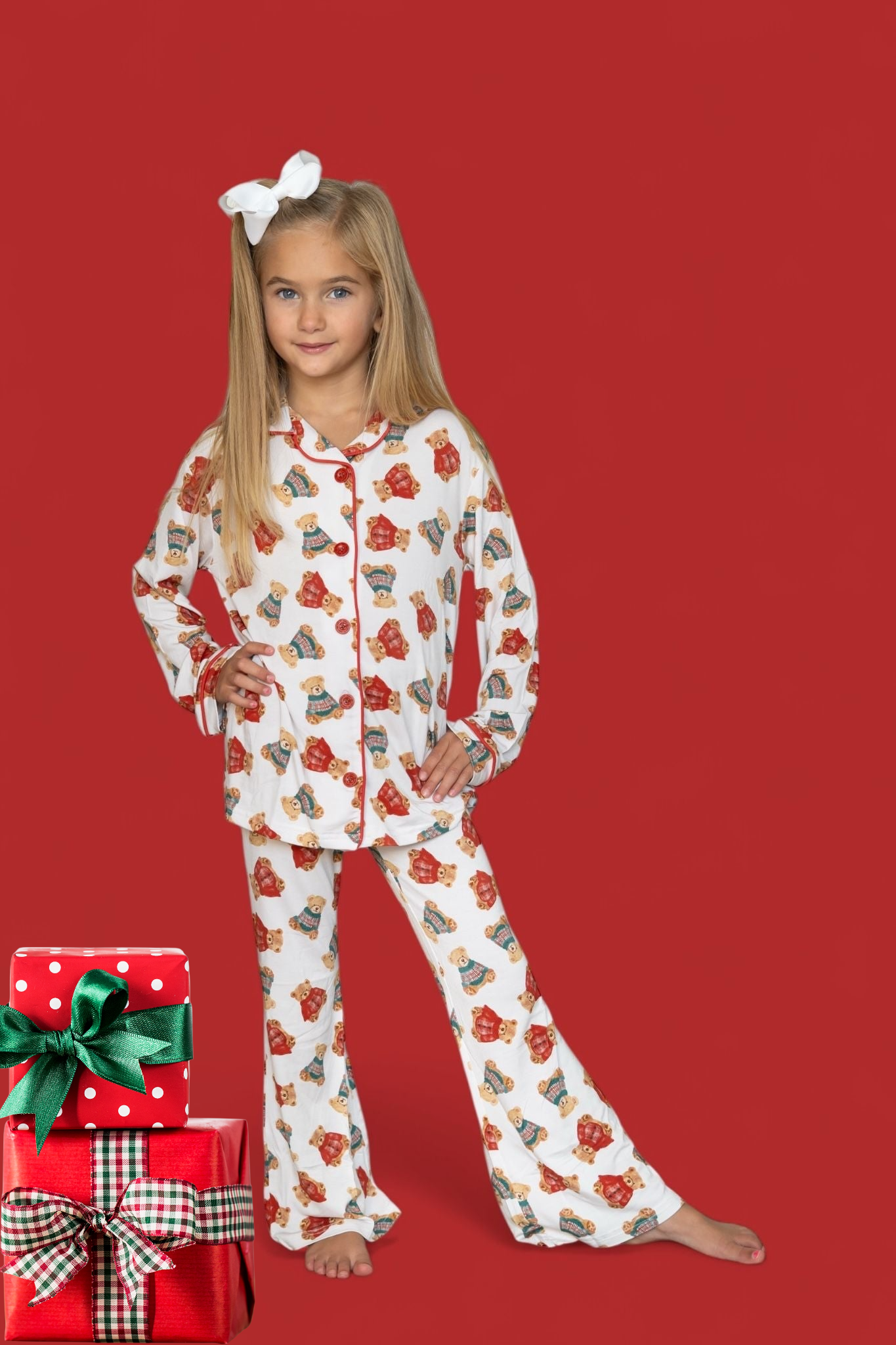 Bear-y Cozy Christmas Dream Girl’s Flare Set 🧸✨🎅