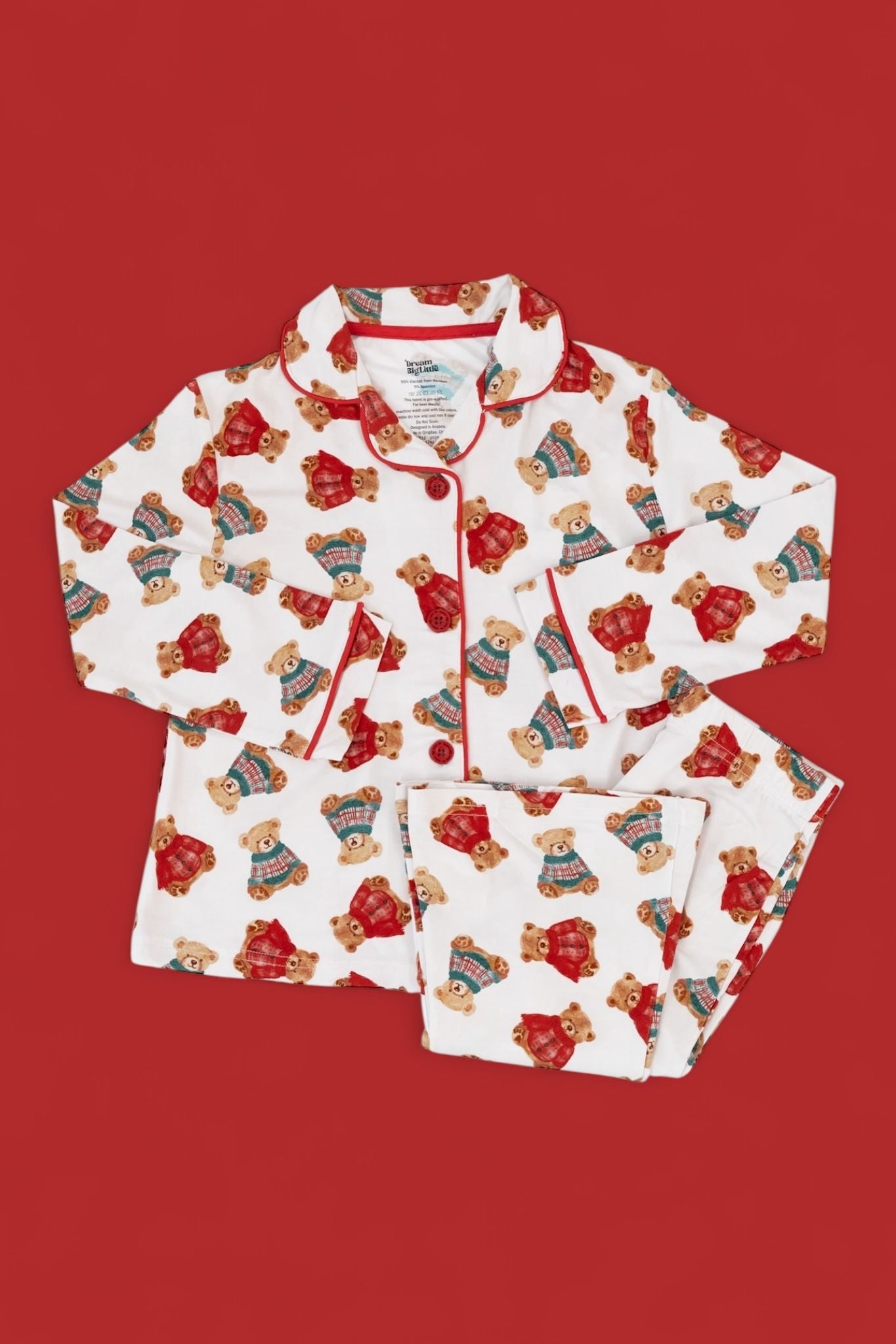 Festive flair meets cozy comfort in our Bear-y Cozy Christmas Dream Girl’s Flare Set! Featuring playful teddy bears in their holiday best, this set is made from our ultra-soft bamboo fabric with a twirly flare pant that adds a dash of fun to every step. Perfect for holiday gatherings, cookie decorating, or lounging by the tree—this set is a bear-y merry must-have!