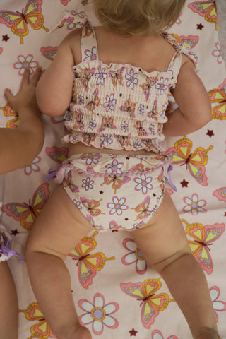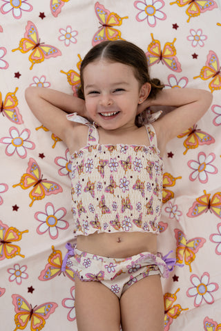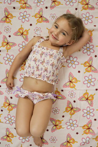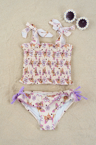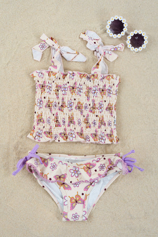 BLOSSOMIN’ BUTTERFLY DREAM SMOCKED TANKINI TWO PIECE SWIM SUIT