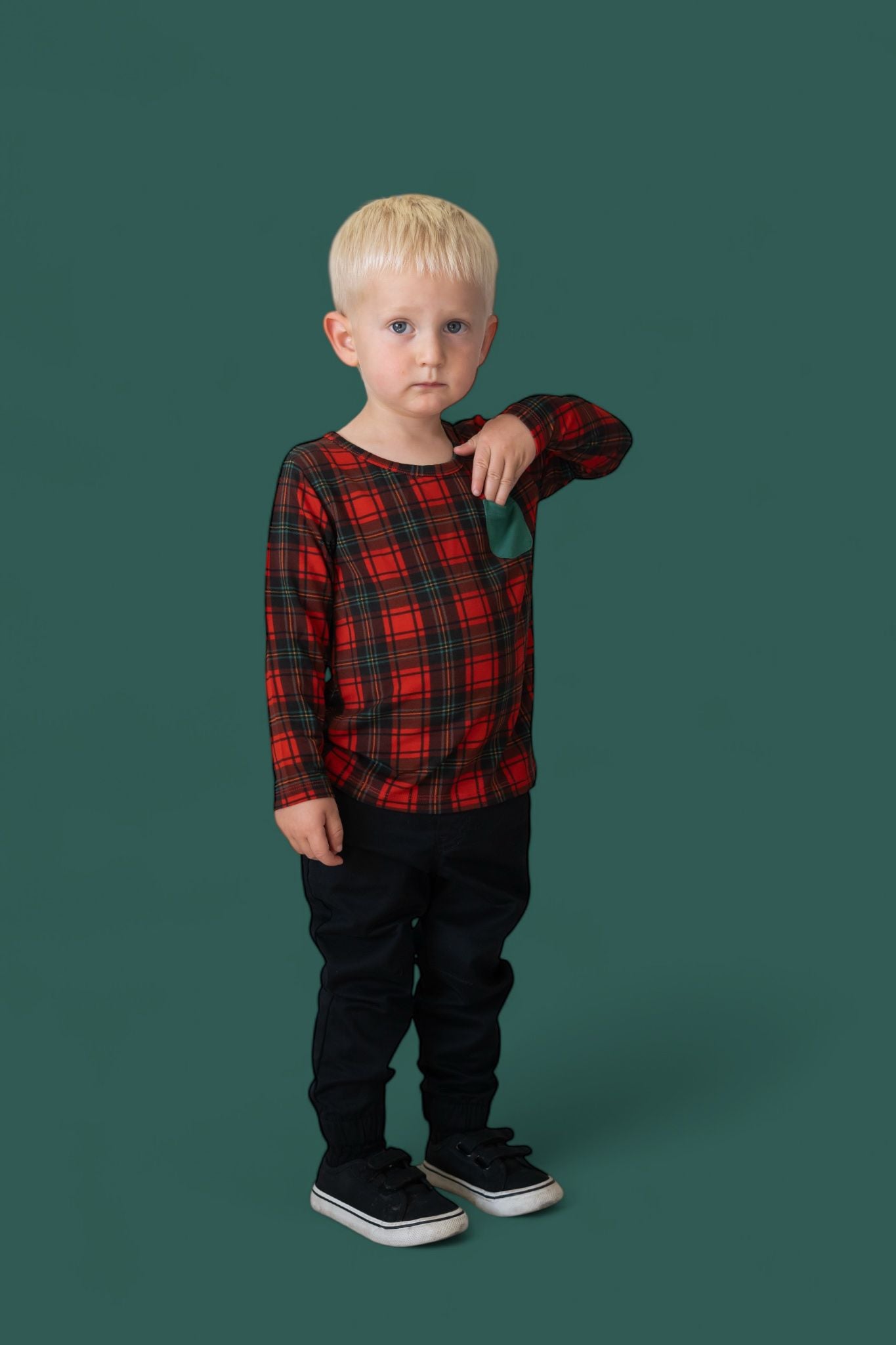 Classic meets cozy in our Tartan Cheer Dream Long Sleeve Pocket Tee! Featuring a festive red and black plaid design with a playful chest pocket, this tee is made from our signature buttery-soft bamboo fabric for all-day comfort. Perfect for layering, lounging, or holiday adventures—this timeless style brings just the right amount of cheer to your little one’s winter wardrobe!