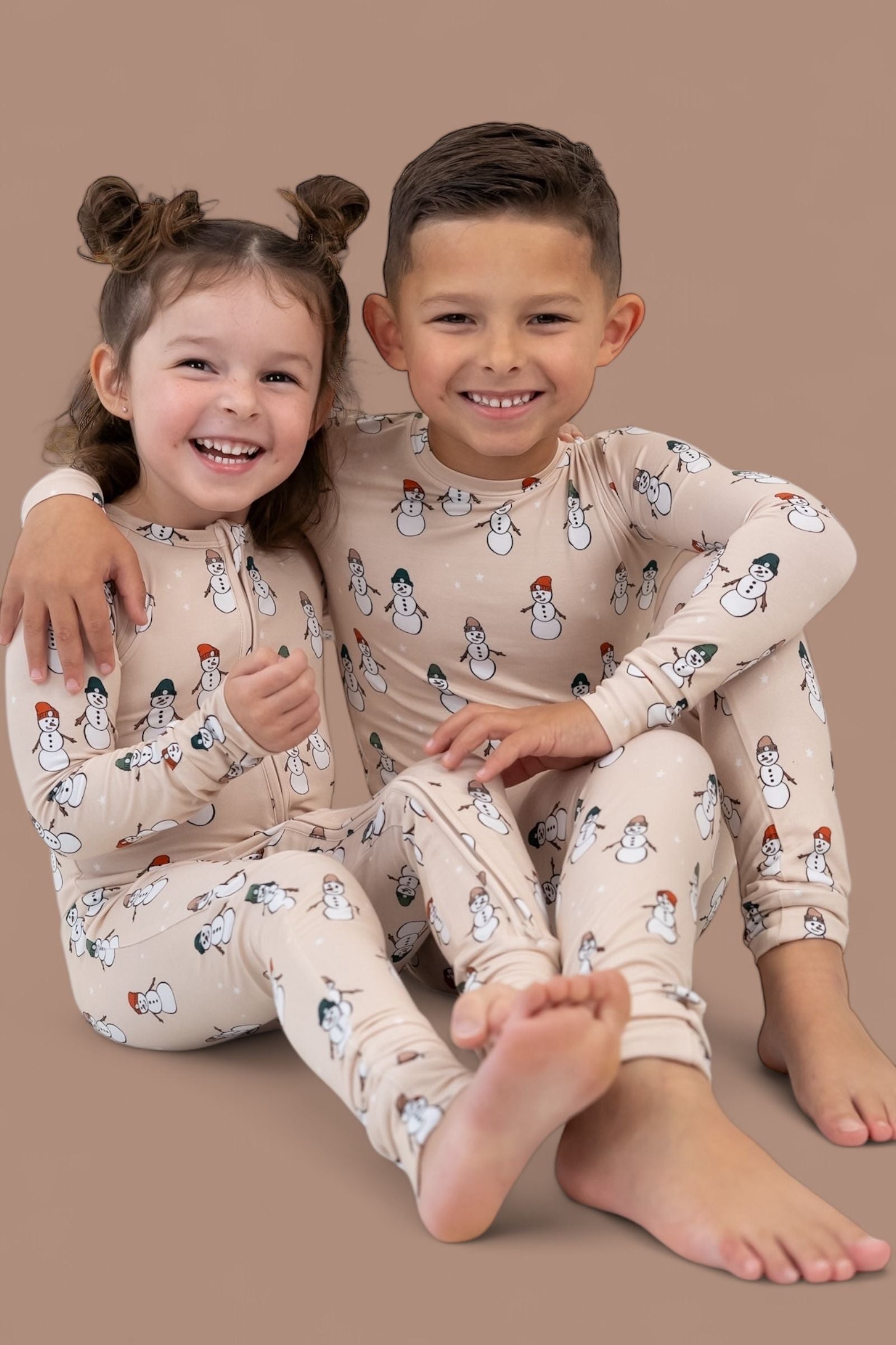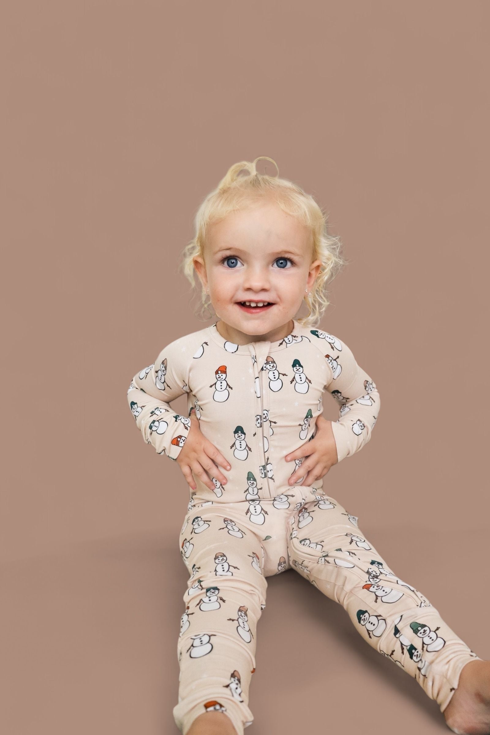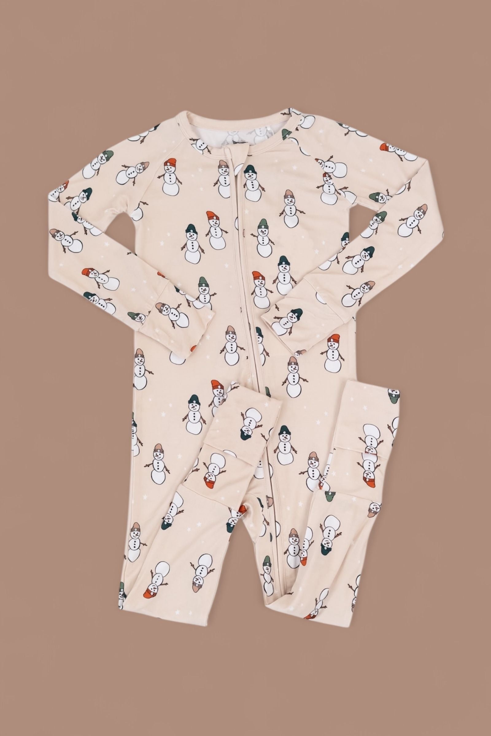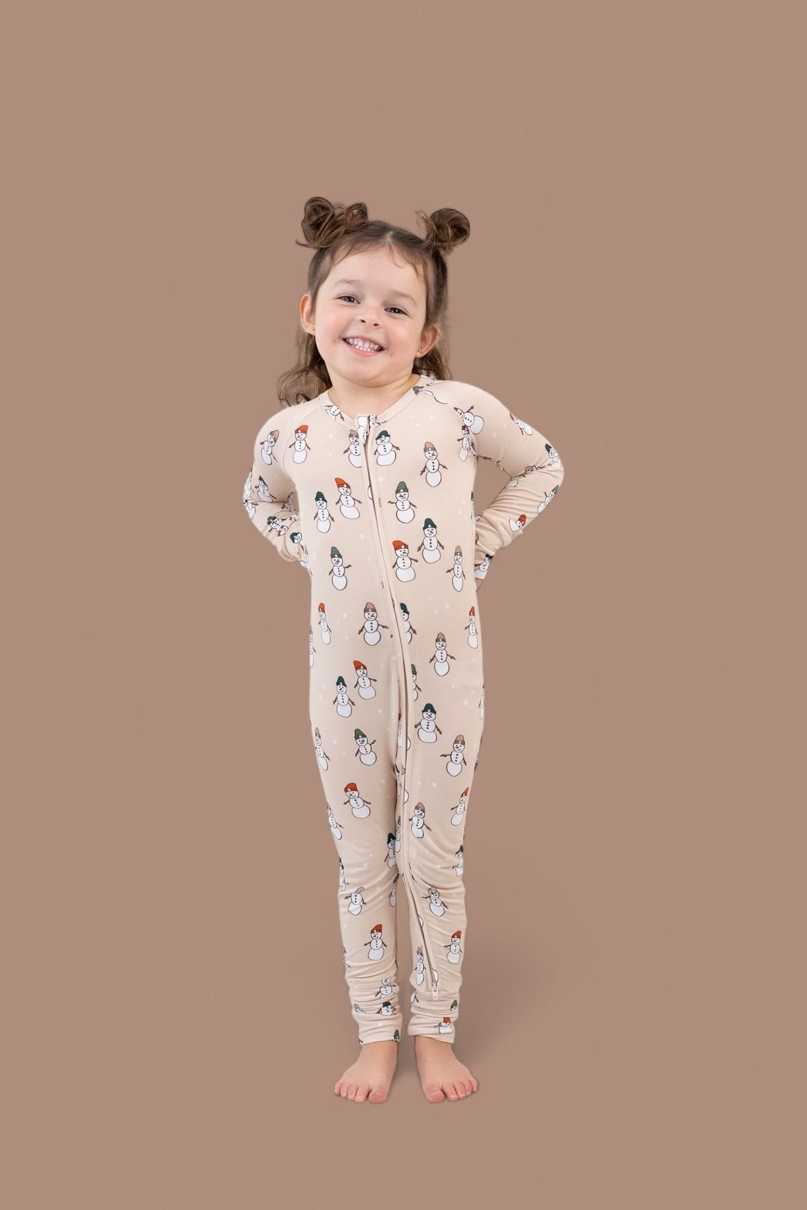 Cozy up with the cutest crew of the season—our Frosted Friends Dream Romper is bringing winter magic to your little one’s wardrobe! Featuring a charming all-over snowman print on a warm beige background, this romper is made from our signature buttery-soft bamboo that’s perfect for chilly days and snug nights.