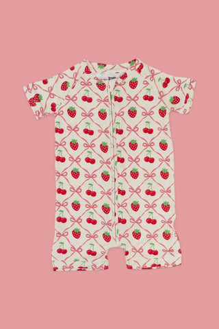 Introducing the Cherry Bow Berry Dream Short Set – the perfect springtime addition to your child's wardrobe. This enchanting set blends cheerful fruit motifs with delicate ribbons, creating a pattern that's as sweet and carefree as childhood itself. Bursting with vibrant colors, it captures the essence of the season with a playful, charming design that is sure to brighten up any day.